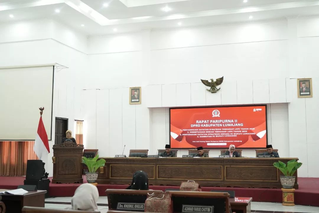 "Pemerintah Kabupaten Lumajang bersama seluruh jajaran kami berkomitmen untuk terus memperbaiki kinerja penyelenggaraan pemerintahan dengan merespons saran dan masukan yang disampaikan melalui catatan strategis," ungkap Pj. Bupati Lumajang Indah Wahyuni (Yuyun) dalam Rapat Paripurna II DPRD Lumajang, di Gedung DPRD Senin (25/3/2024), yang dipimpin oleh Ketua DPRD Kabupaten Lumajang Eko Adis Prayoga.