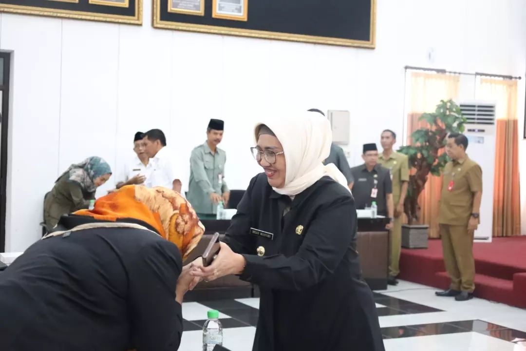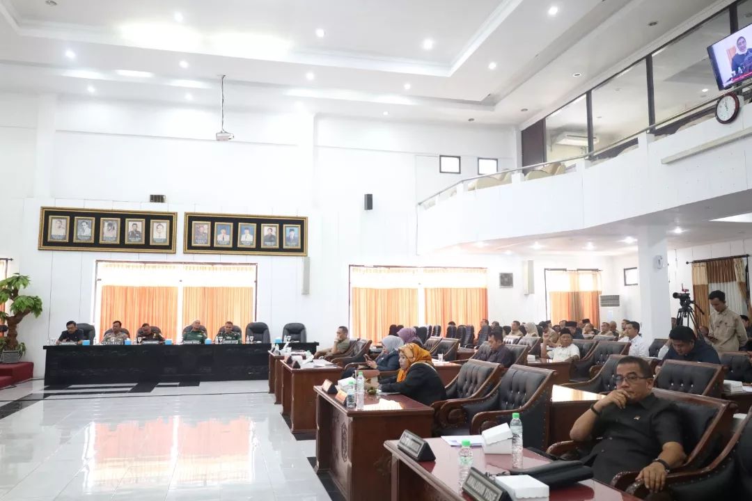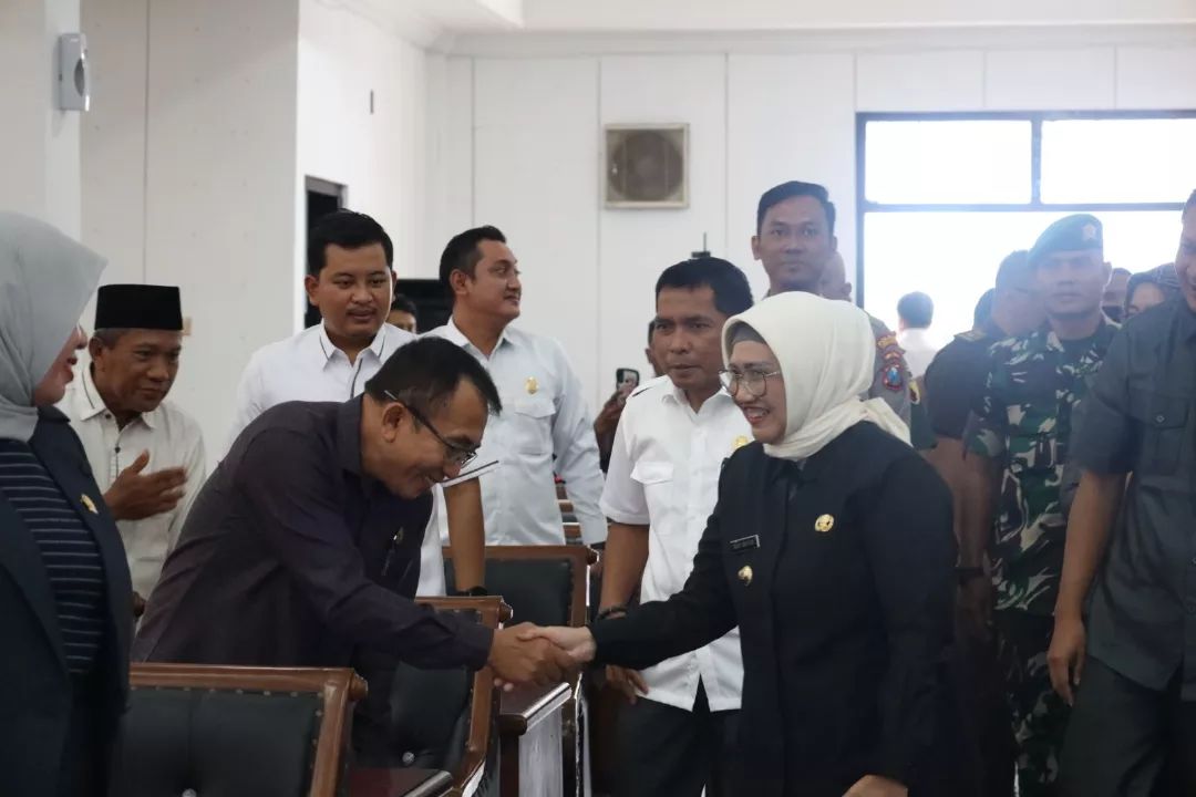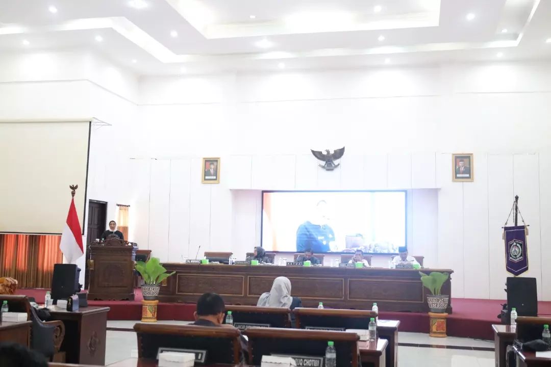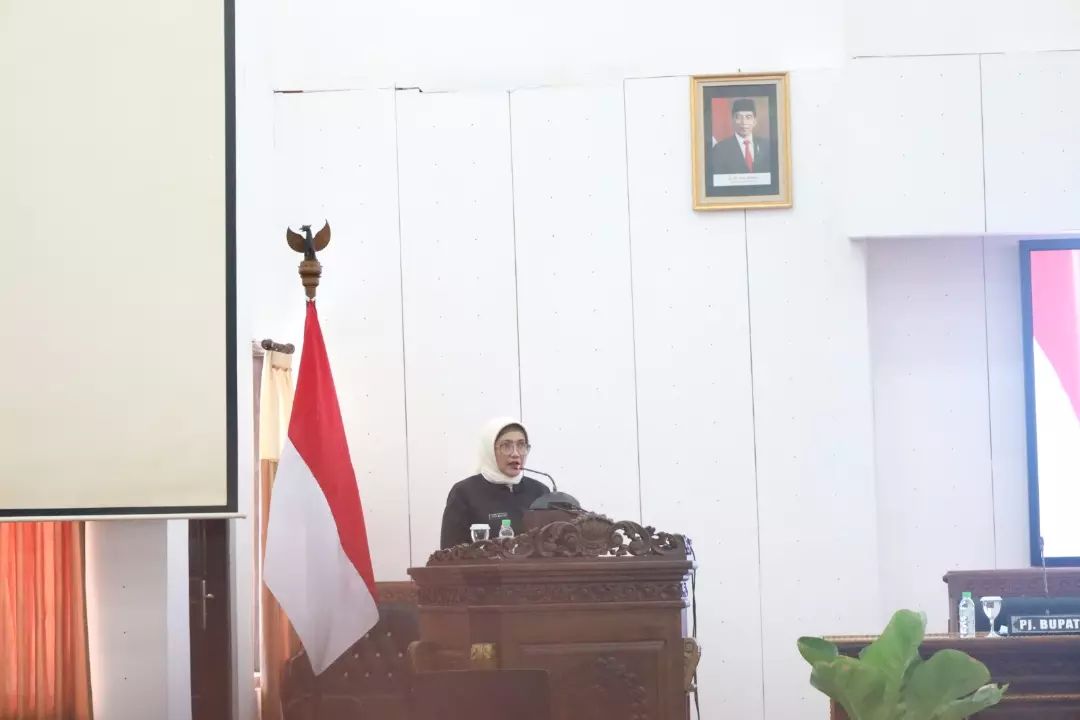 Pj. Bupati Lumajang Indah Wahyuni (Yuyun) menghadiri Rapat Paripurna DPRD Kabupaten Lumajang yang digelar di Ruang Paripurna Kabupaten Lumajang. Rapat ini diadakan dengan agenda utama Penyampaian Nota Penjelasan Pj. Bupati terhadap 7 Rancangan Peraturan Daerah (Raperda) Kabupaten Lumajang Tahun 2024 dan 1 Raperda Inisiatif DPRD Kabupaten Lumajang.