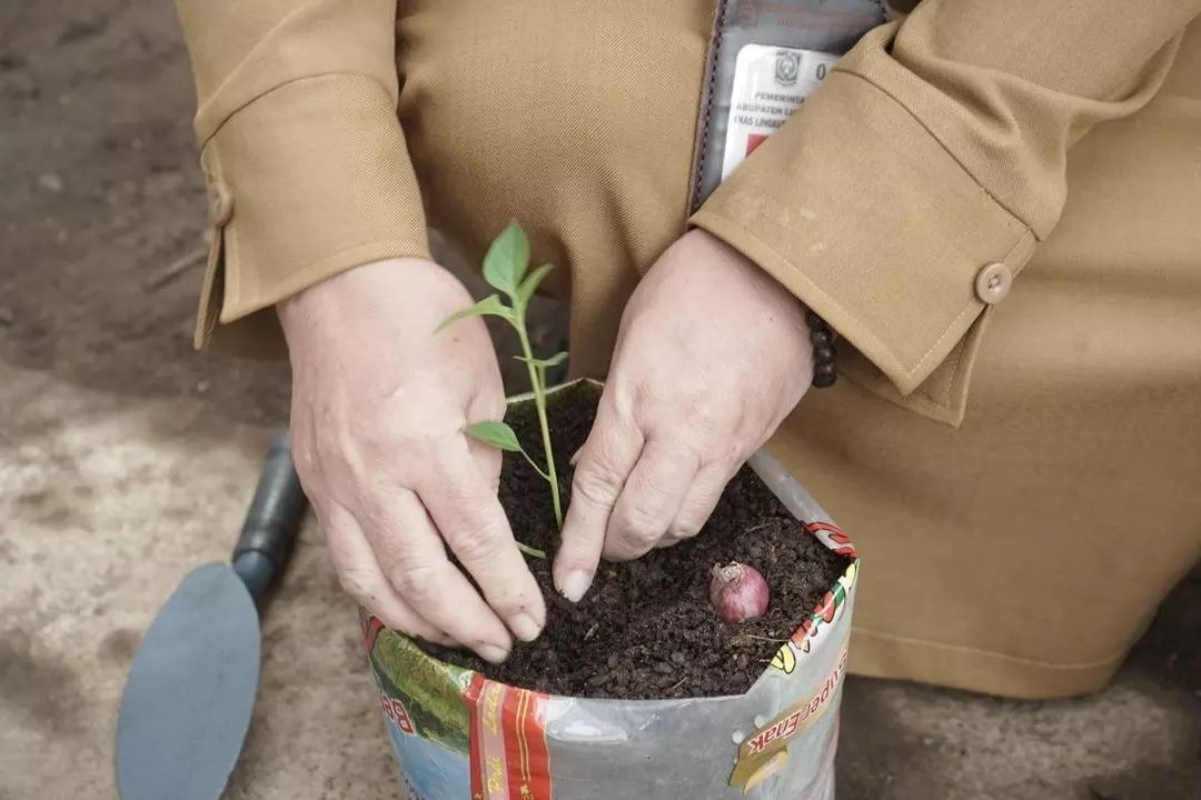 Dalam upaya menjaga stabilitas harga dan mengendalikan inflasi, Tim Penggerak PKK Kabupaten Lumajang, Jawa Timur bersama ASN dan warga menggelar kegiatan Gerakan Menanam Cabai dan Bawang Merah di Desa Karangsari, Senin (29/4/2024).