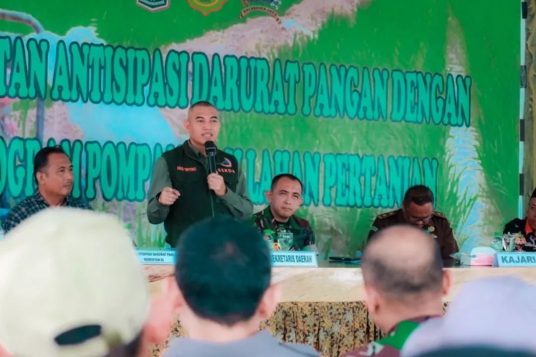 Pompanisasi tersebut diserahkan secara simbolis oleh Sekretaris Daerah (Sekda) Kabupaten Lumajang, Agus Triyono dalam acara Kegiatan Antisipasi Darurat Pangan Dengan Program Pompanisasi Lahan Pertanian di Balai Desa Yosowilangun Lor, Selasa (30/4/2024).