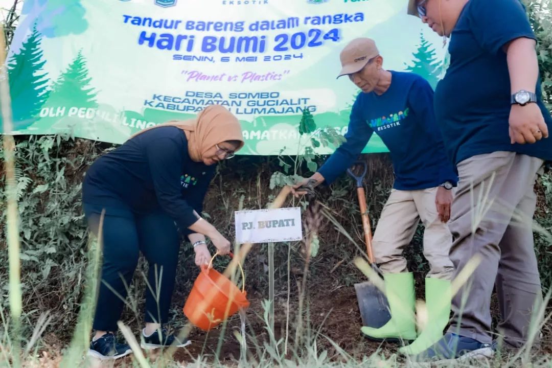 Pj. Bupati Lumajang Indah Wahyuni (Yuyun) mengambil inisiatif penting dalam menjaga kelestarian alam dengan memimpin aksi tandur bareng di Desa Sombo Kecamatan Gucialit Kabupaten Lumajang, Jawa Timur, Senin (6/5/2024). Kegiatan tersebut menjadi bagian dari rangkaian peringatan Hari Bumi Tahun 2024, yang diselenggarakan setiap tanggal 22 April.