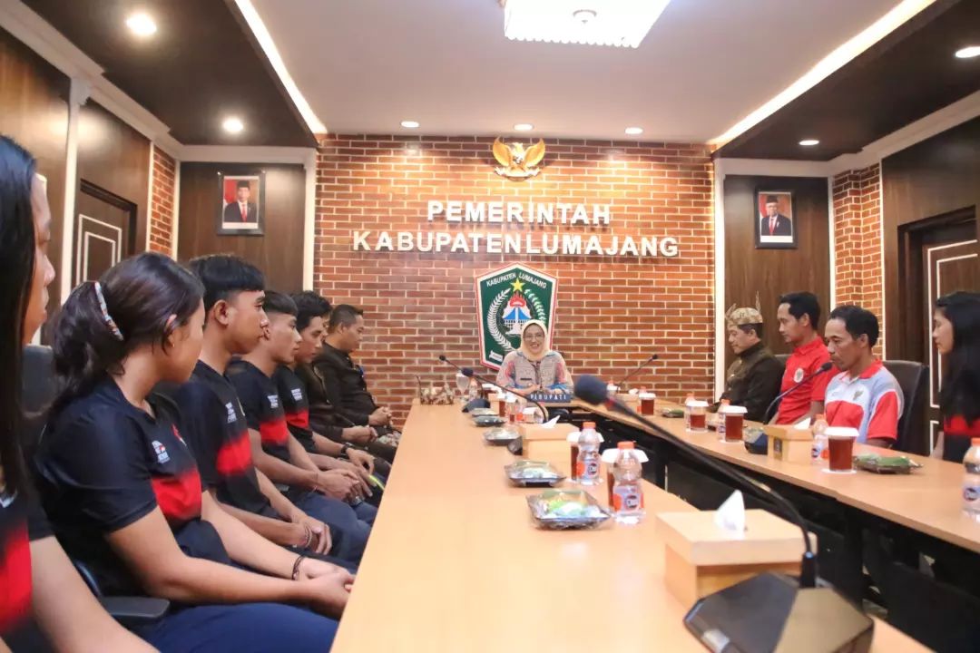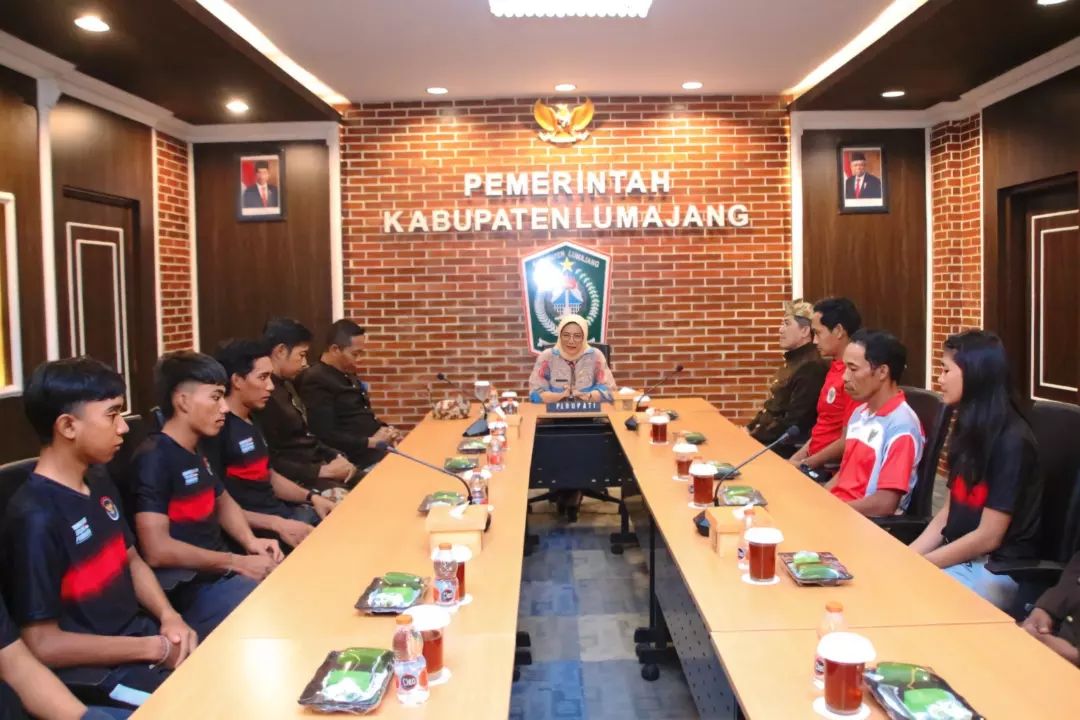 Pj. Bupati Lumajang Indah Wahyuni yang akrab disapa Yuyun dengan bangga menerima kedatangan para atlet sepeda balap berprestasi asal Lumajang yang berhasil mengharumkan nama Indonesia dalam ajang Asian Mountain Bike Championship 2024, di Ruang Mahameru Kantor Bupati Lumajang, Rabu (15/5/2024). Kompetisi bergengsi tersebut diselenggarakan di Putrajaya, Malaysia, pada Kamis (9/5/2024) lalu.