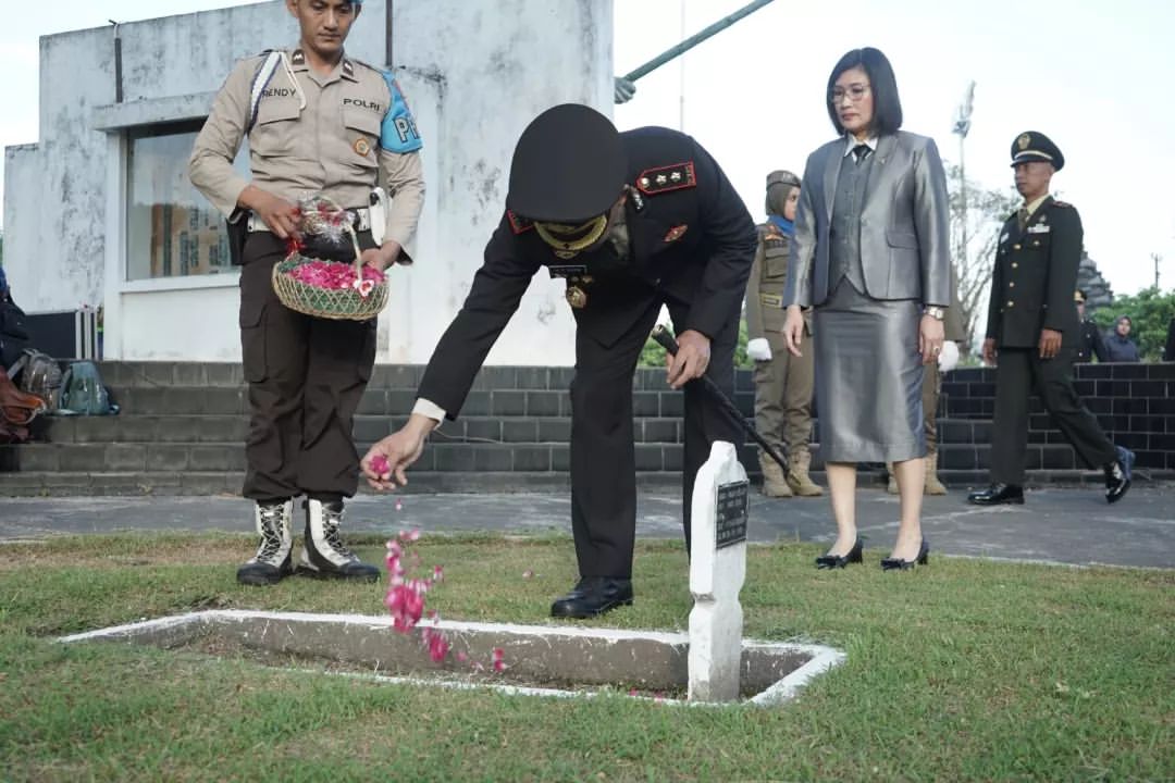 Kapolres Lumajang Mohammad Zainur Rofik, memimpin langsung upacara tersebut sebagai penghormatan kepada para pahlawan yang telah berjuang demi kemerdekaan bangsa.