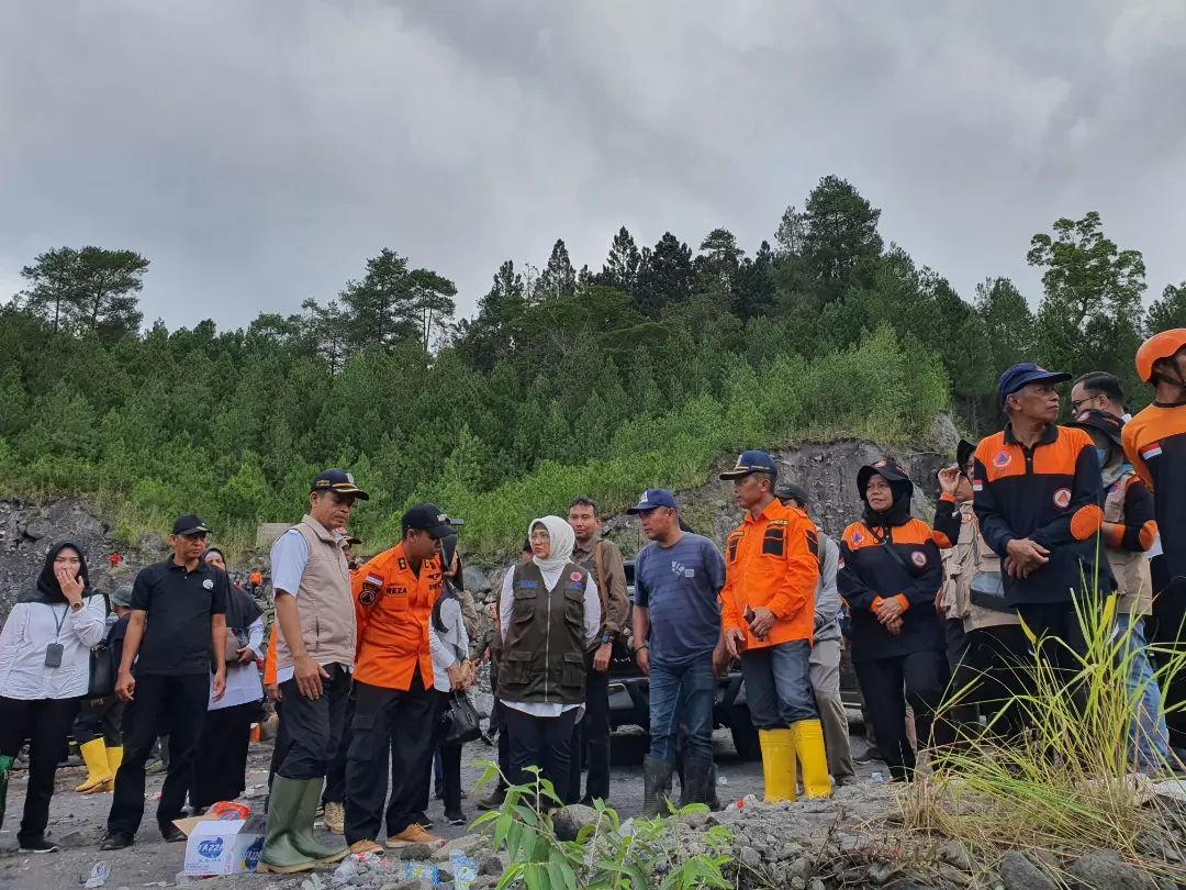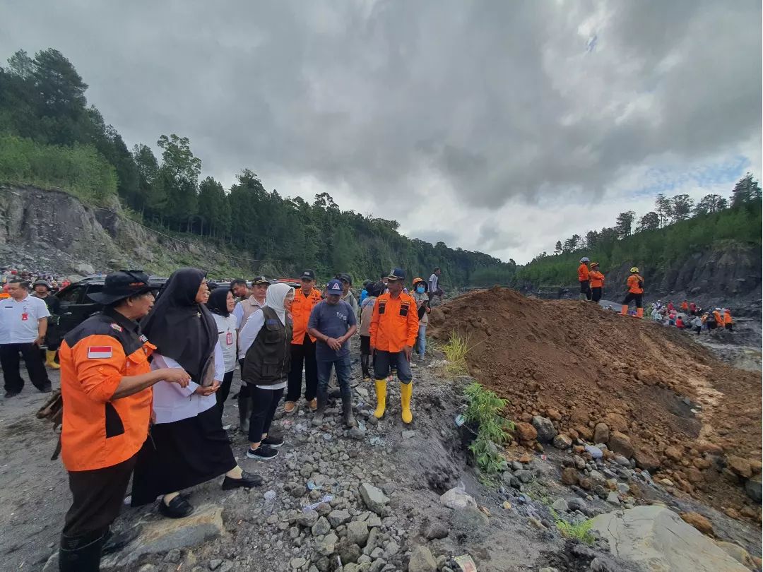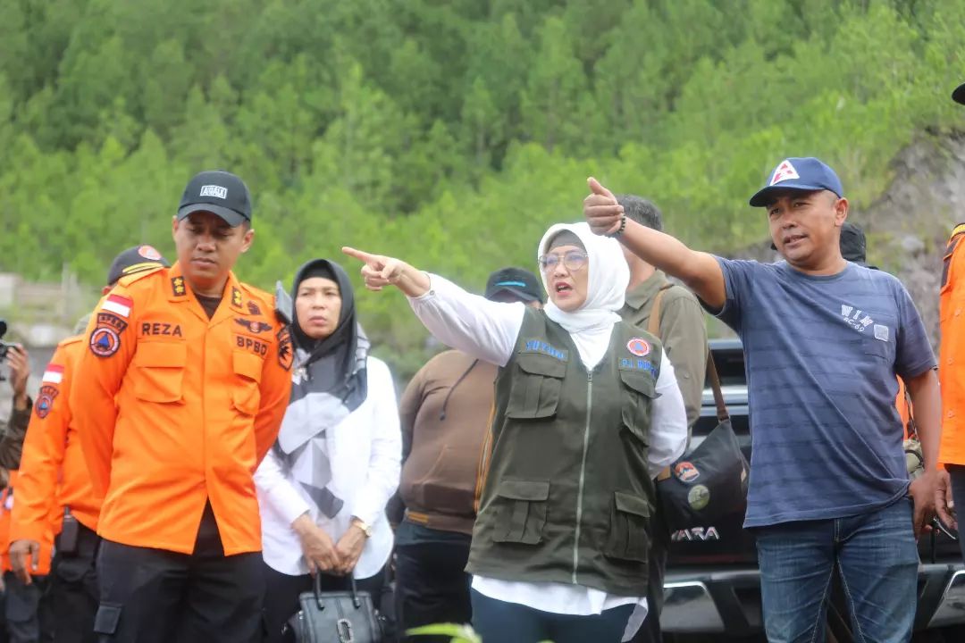 Penjabat (Pj) Bupati Lumajang, Indah Wahyuni (Yuyun) meninjau lokasi terjadinya longsor di area pertambangan pasir Dusun Supit Desa Pronojiwo, Kecamatan Pronojiwo Kabupaten Lumajang, Rabu (5/6/2024).