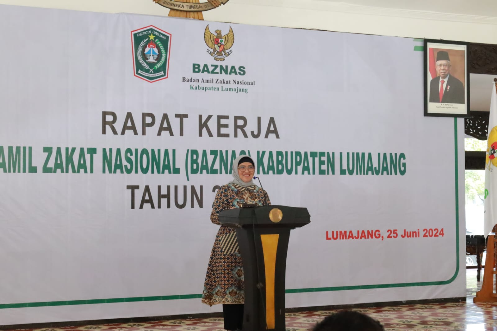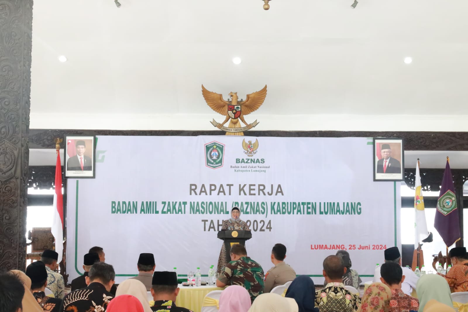 Badan Amil Zakat Nasional (BAZNAS) Kabupaten Lumajang menggelar Rapat Kerja (Raker) Tahun 2024 guna membahas pengoptimalan pengelolaan zakat di Kabupaten Lumajang. Rapat kerja ini dibuka langsung oleh Pj. Bupati Lumajang, Indah Wahyuni, yang dilaksanakan di Pendopo Arya Wiraraja Kabupaten Lumajang pada Selasa (25/06/2024).