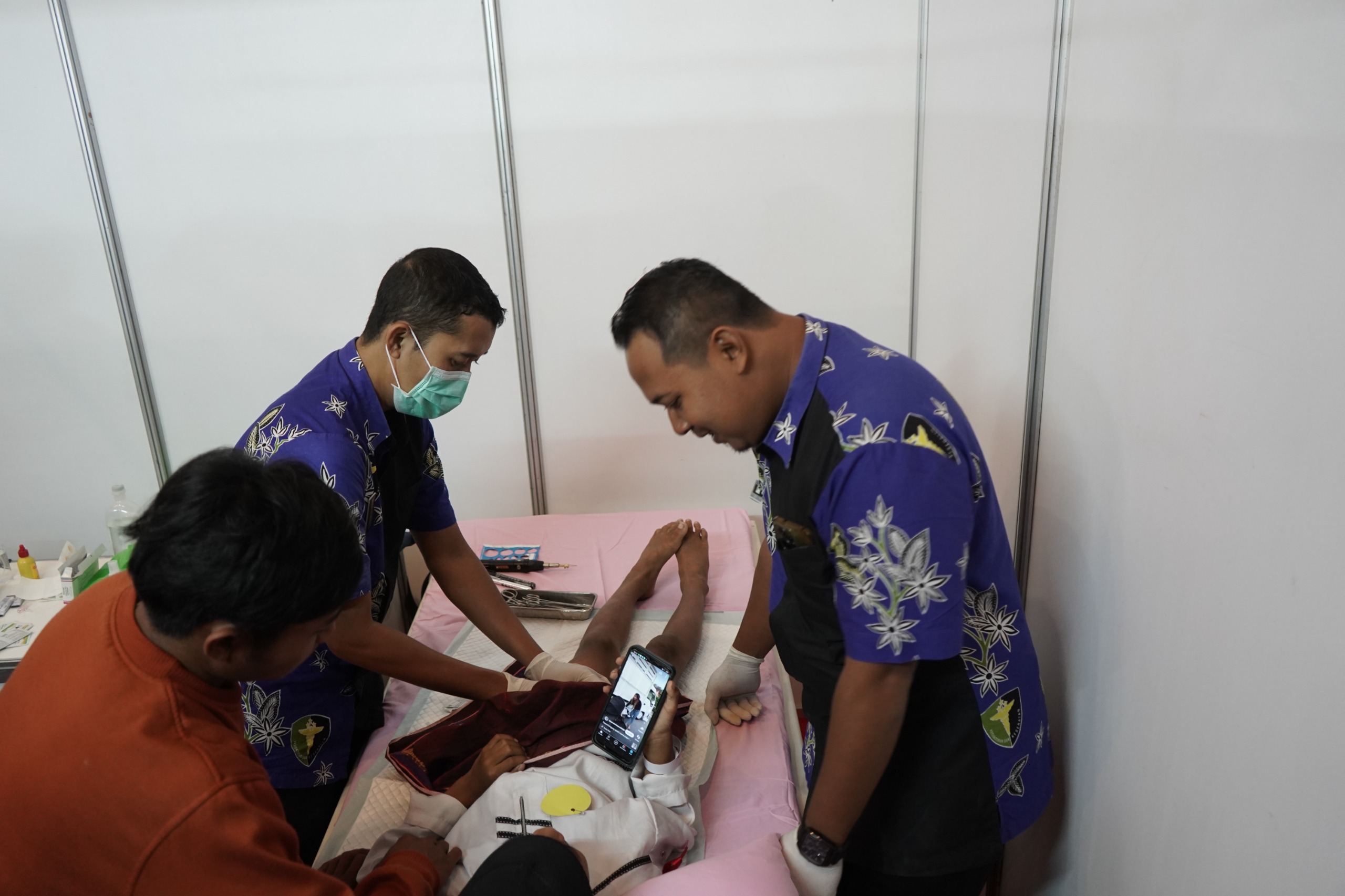 Pj. Bupati Lumajang, Indah Wahyuni menghadiri kegiatan bakti kesehatan dan bakti sosial dalam rangka memperingati Hari Bhayangkara ke - 78 Tahun 2024 yang diselenggarakan oleh Polres Lumajang, di Rock Convention Center (RCC) Jalan Lintas Timur (JLT) Lumajang, Rabu (26/6/2024).
