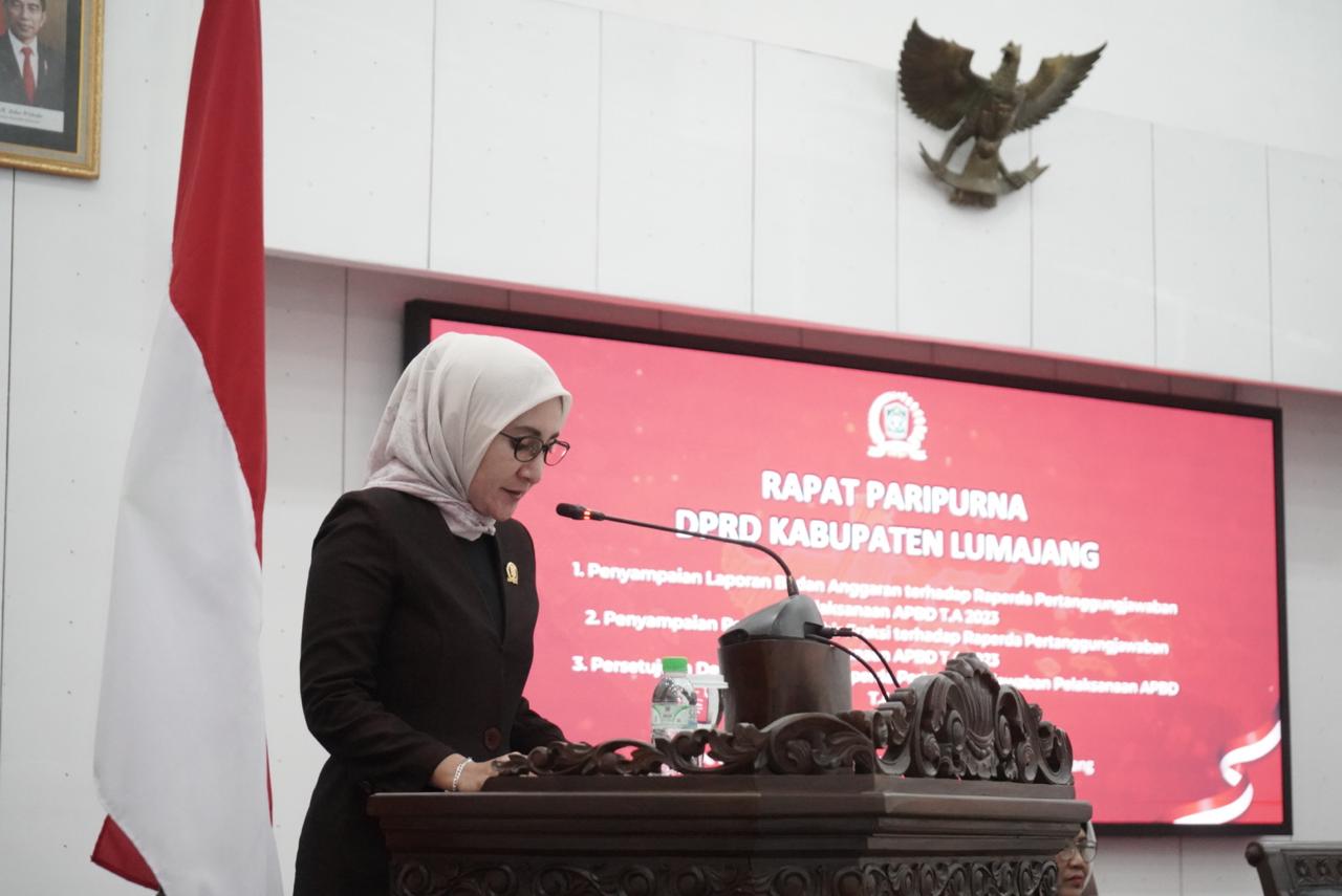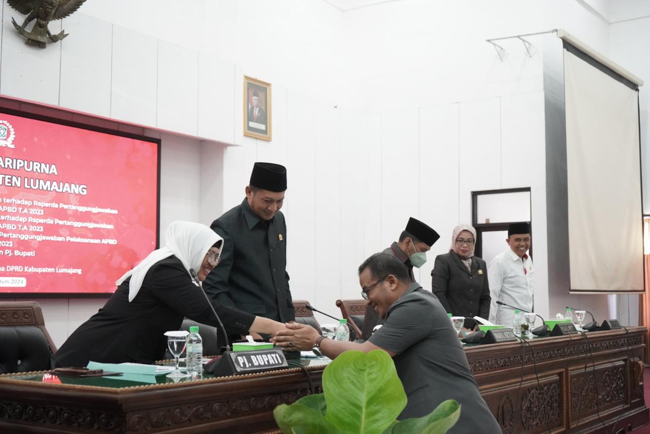 Pj. Bupati Lumajang, Indah Wahyuni menghadiri Rapat Paripurna DPRD Kabupaten Lumajang yang dipimpin langsung oleh Ketua DPRD Kabupaten Lumajang, Eko Adis Prayoga, bertempat di Ruang Rapat Paripurna DPRD Kabupaten Lumajang, Kamis (27/6/2024).