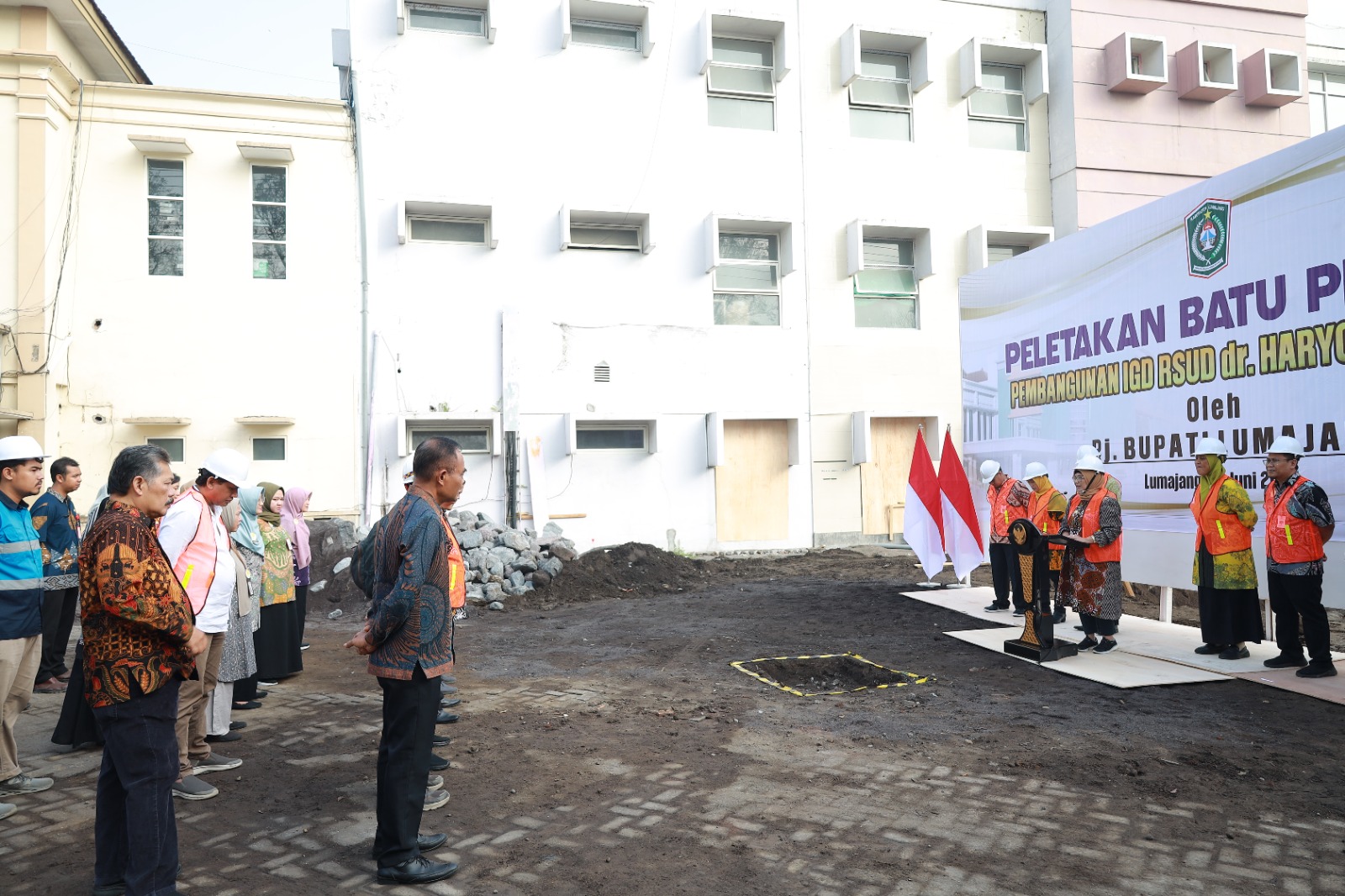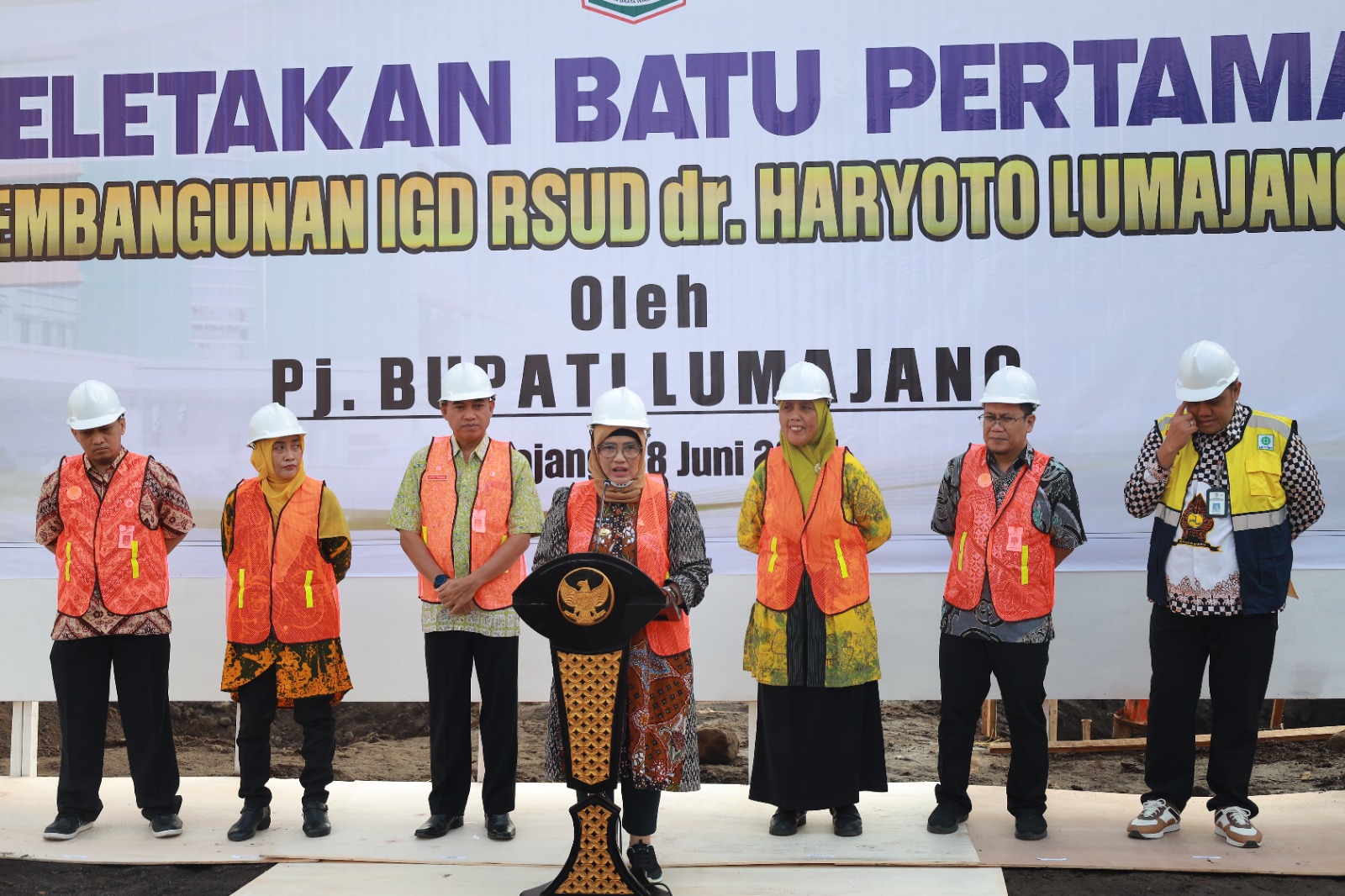 Kabupaten atau kota yg baik adalah kabupaten atau kota yang dapat memberikan pelayanan prima, termasuk dalam memberikan pelayanan yang terbaik di bidang kesehatan. Hal ini disampaikan oleh Pj. Bupati Lumajang, Indah Wahyuni (Yuyun) dalam sambutannya saat melaakukan peletakan batu pertama di halaman depan RSUD dr. Haryoto Lumajang, Jumat (28/06/2024).