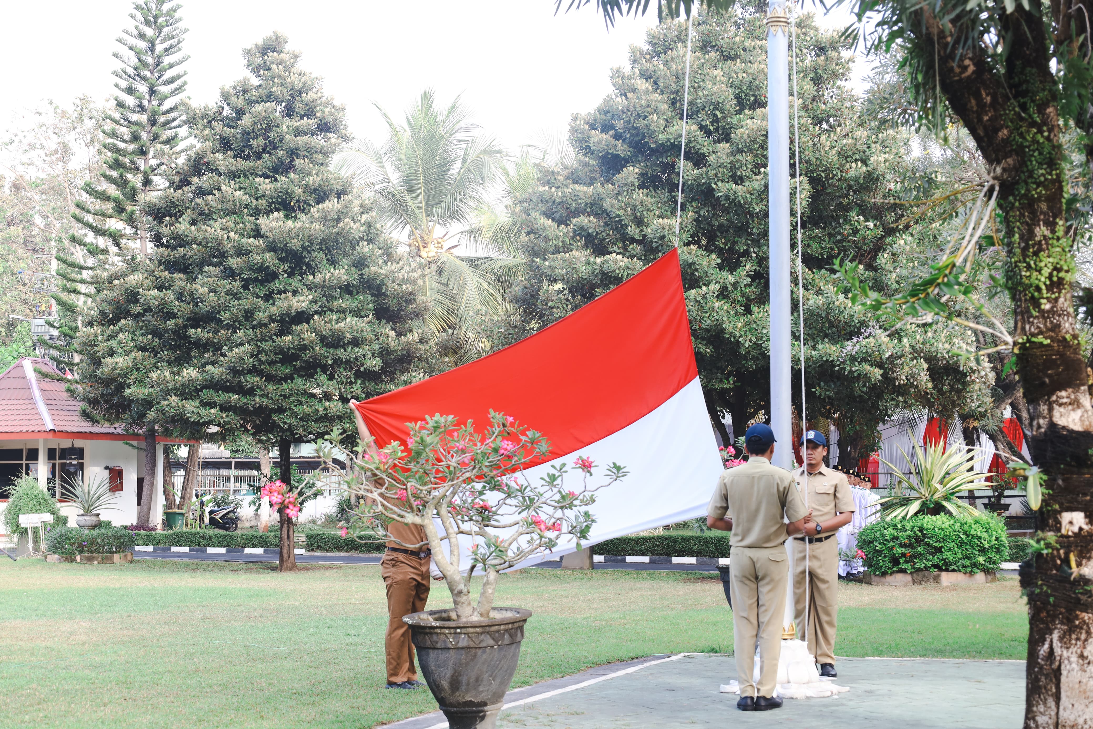 Jelang Hari Kemerdekaan Republik Indonesia ke 79, Pj. Bupati Lumajang, Indah Wahyuni membagikan Bendera Merah Putih secara simbolis kepada Camat dan Kepala Desa.