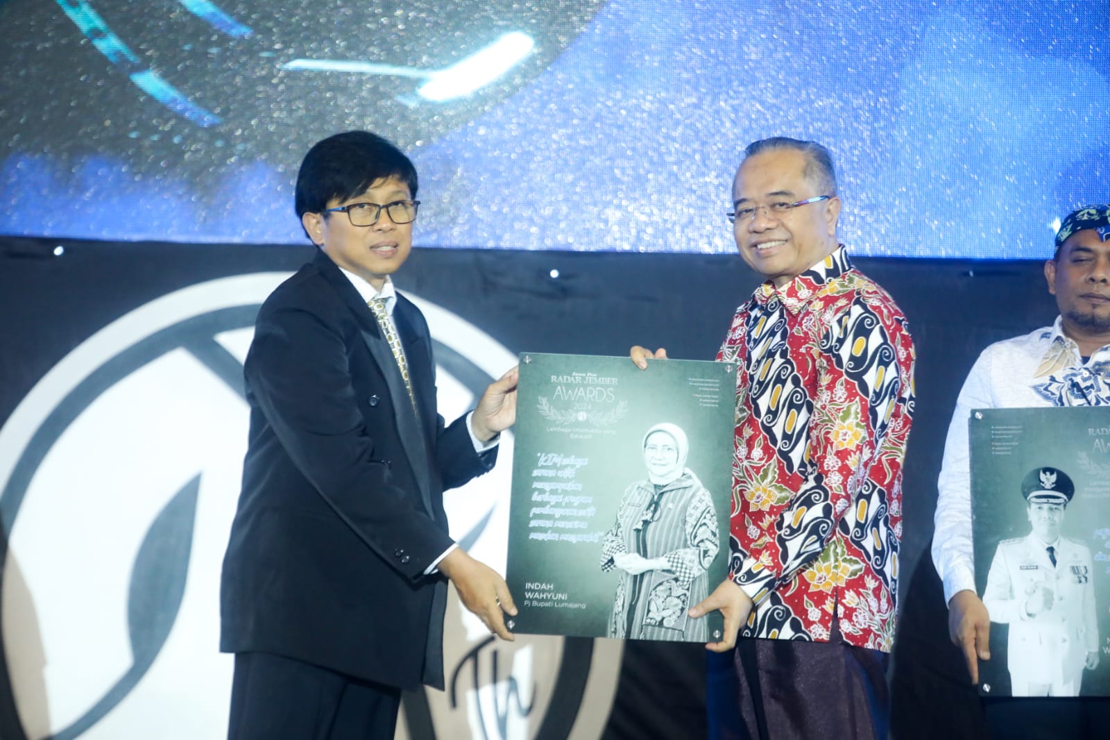 Pj. Bupati Lumajang, Indah Wahyuni (Bunda Yuyun) mendapatkan penghargaan Jawa Pos Radar Jember Award 2024. Penghargaan diserahkan langsung oleh Direktur Jawa Pos Radar Jember Abdul Choliq Baya kepada Pj. Bupati Lumajang yang diwakili oleh Plt. Asisten Asisten Administrasi Setda Lumajang, Akhmad Taufik Hidayat di Convention Hall Letkol dr. RM Soebandi Jember, Sabtu (27/07/2024).