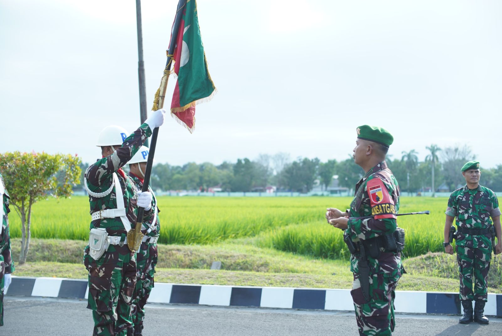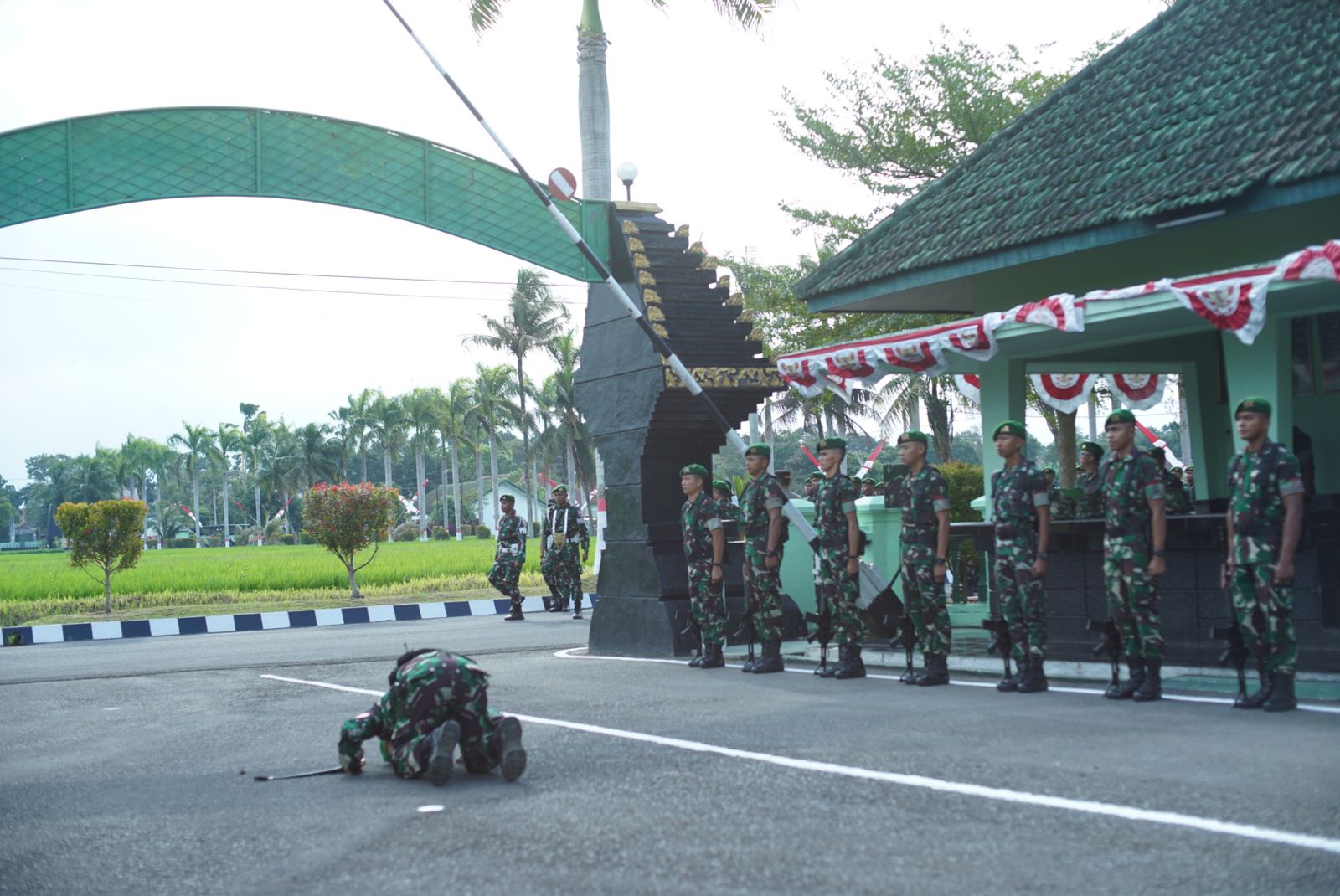 Pj. Bupati Lumajang bertindak sebagai inspektur upacara dalam acara menyambut Satuan Tugas Pamtas RI- Papua New Guine Yonif 527/Baladibya Yudha yang bertempat di Lapangan Pratu Natra Yonif 527/ Lumajang pada hari kamis tanggal 25/07/2024.