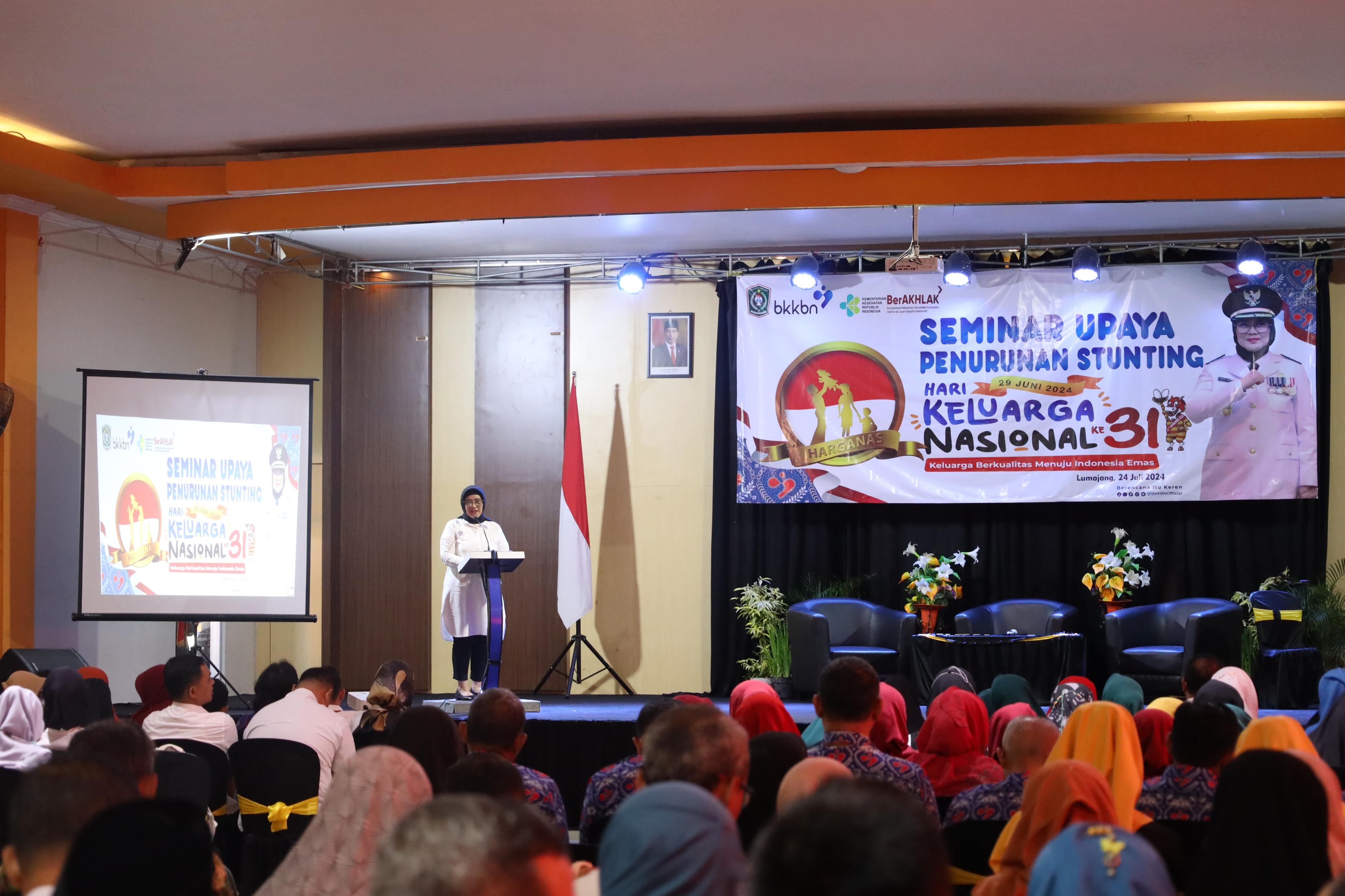 Dengan mengusung tema “Keluarga Berkualitas menuju Indonesia Emas”, diharapkan penyelengaraan HARGANAS tahun ini menjadi momentum untuk meningkatkan kesadaran masyarakat akan pentingnya sosok keluarga bagi pembangunan bangsa. Hal tersebut disampaikan Penjabat Bupati Lumajang, Indah Wahyuni (Yuyun), dalam sambutannya pada acara Seminar Upaya Penurunan Stunting yang dilaksanakan di Aula SMK Muhamadiyah Lumajang, pada Rabu (24/07/2024).