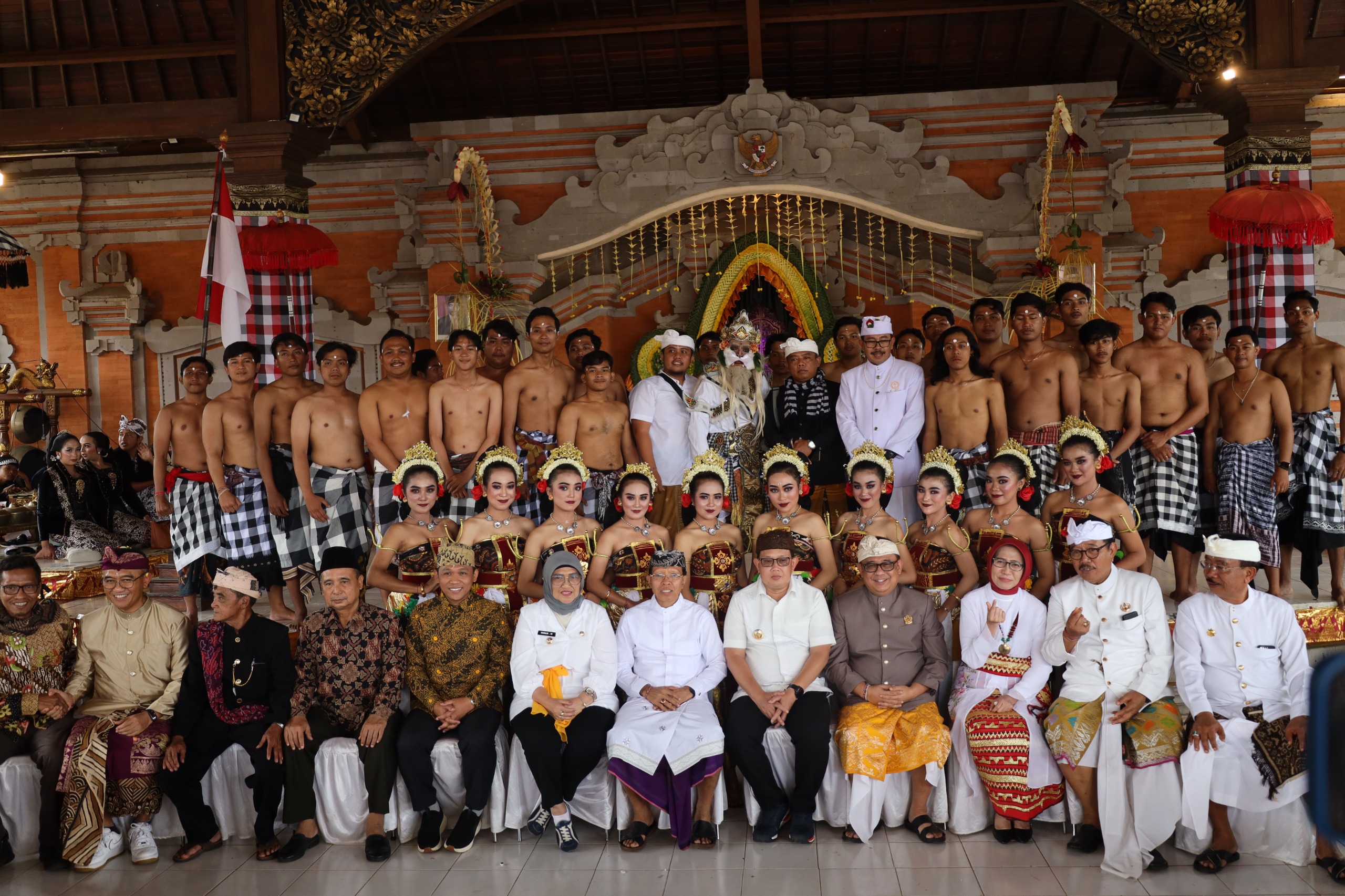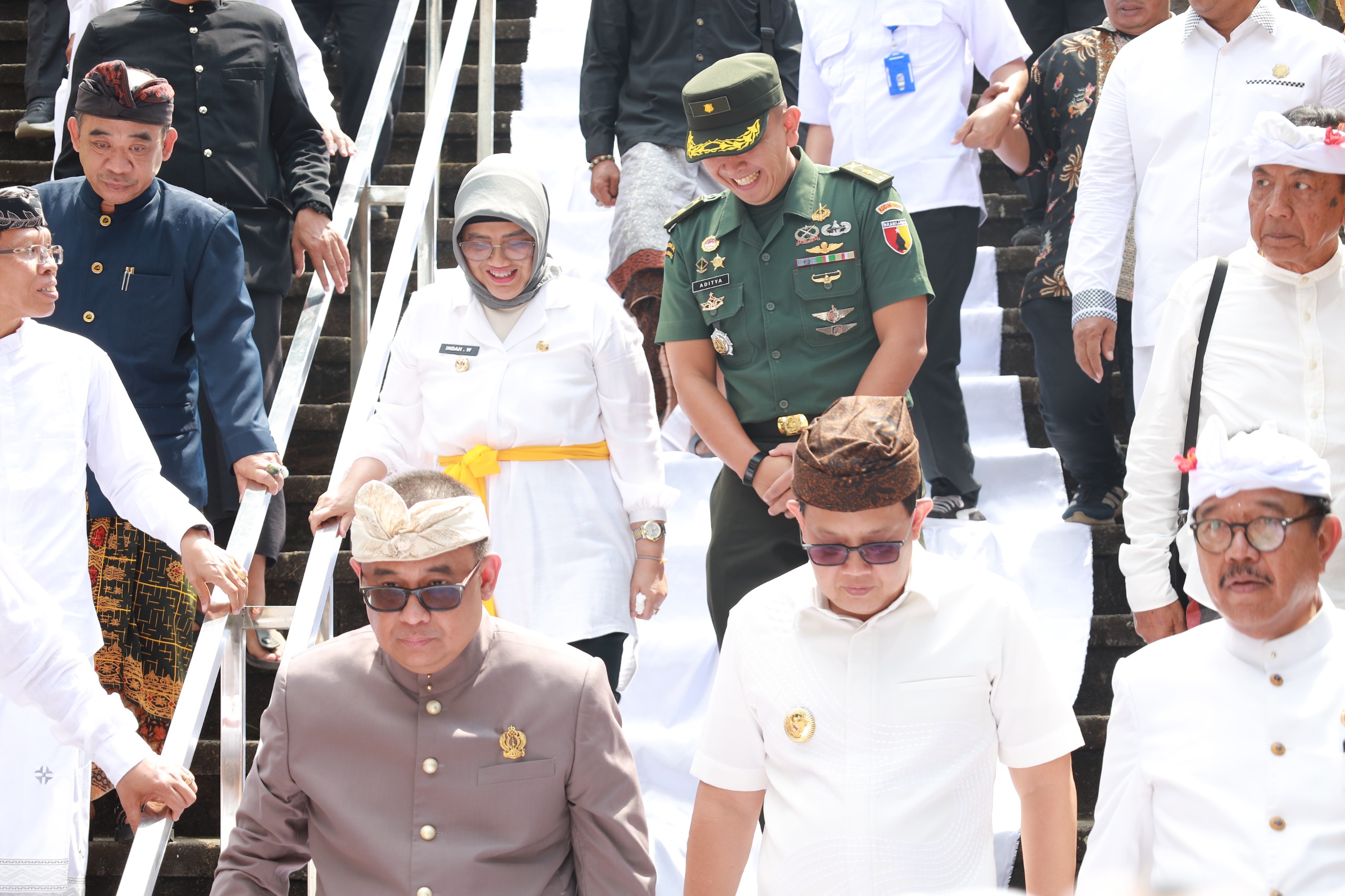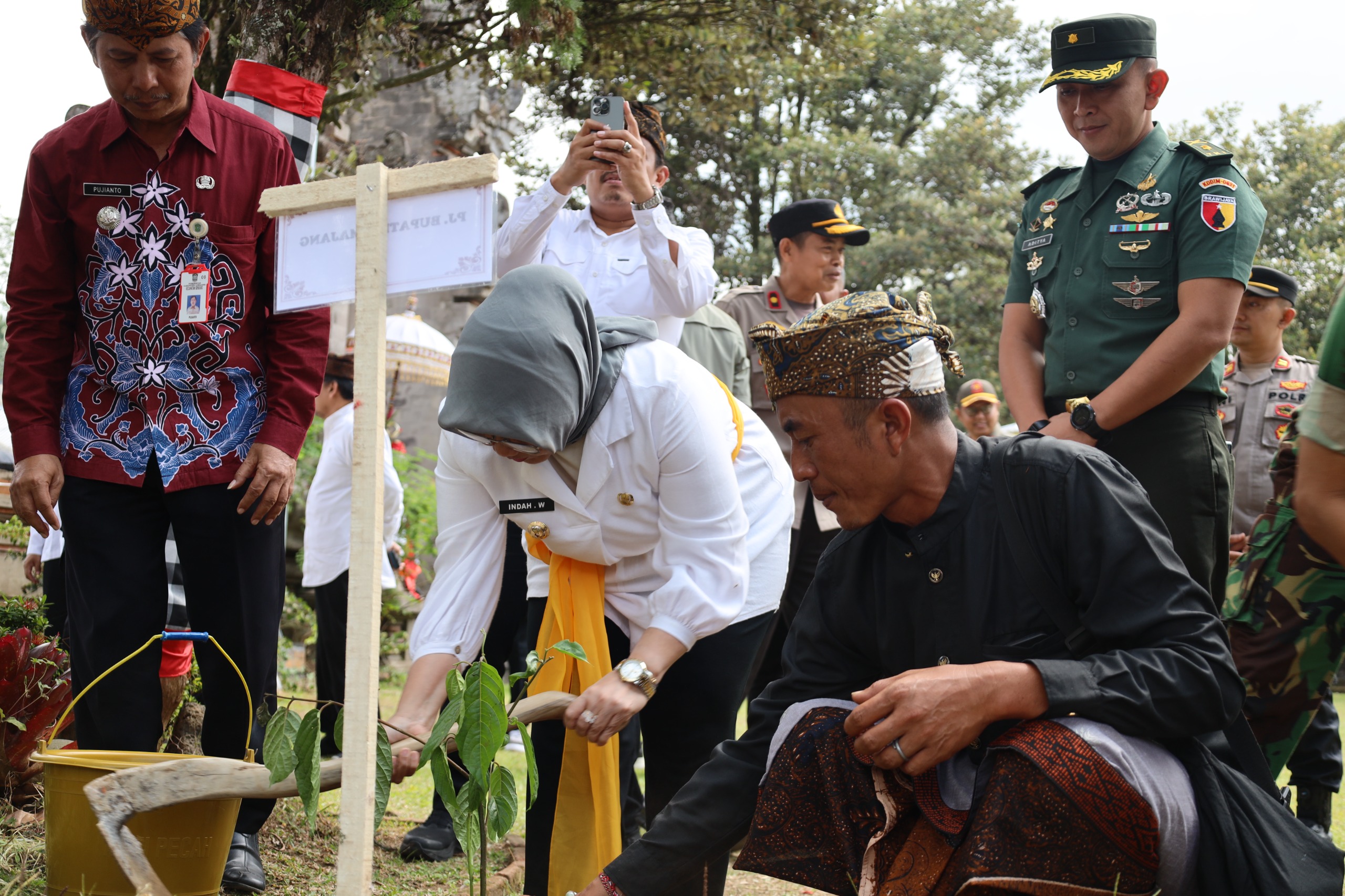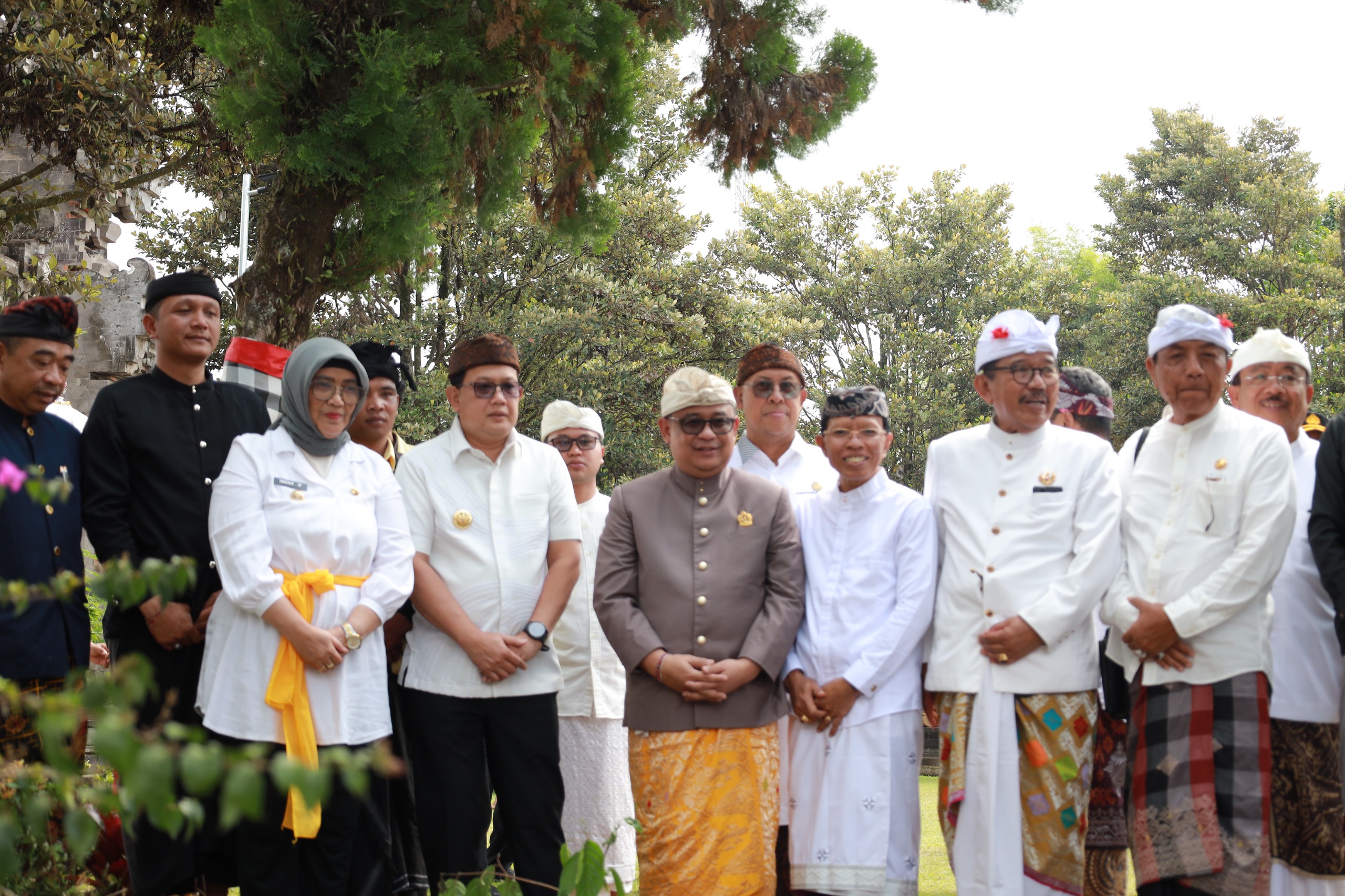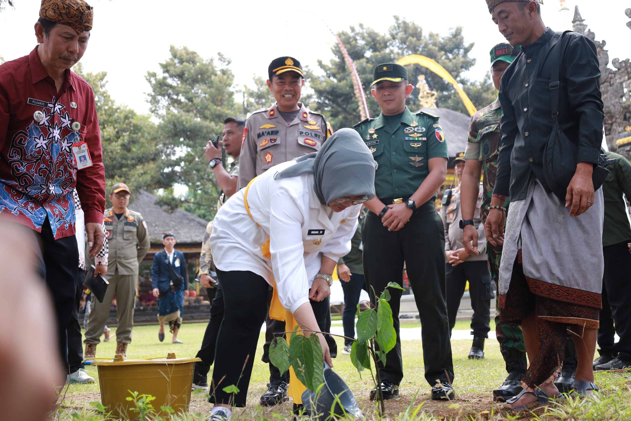 Pj. Bupati Lumajang, Indah Wahyuni menghadiri upacara Piodalan di Pura Mandara Giri Semeru Agung, yang berada di wilayah Kecamatan Senduro Kabupaten Lumajang, Kamis (18/7/2024).