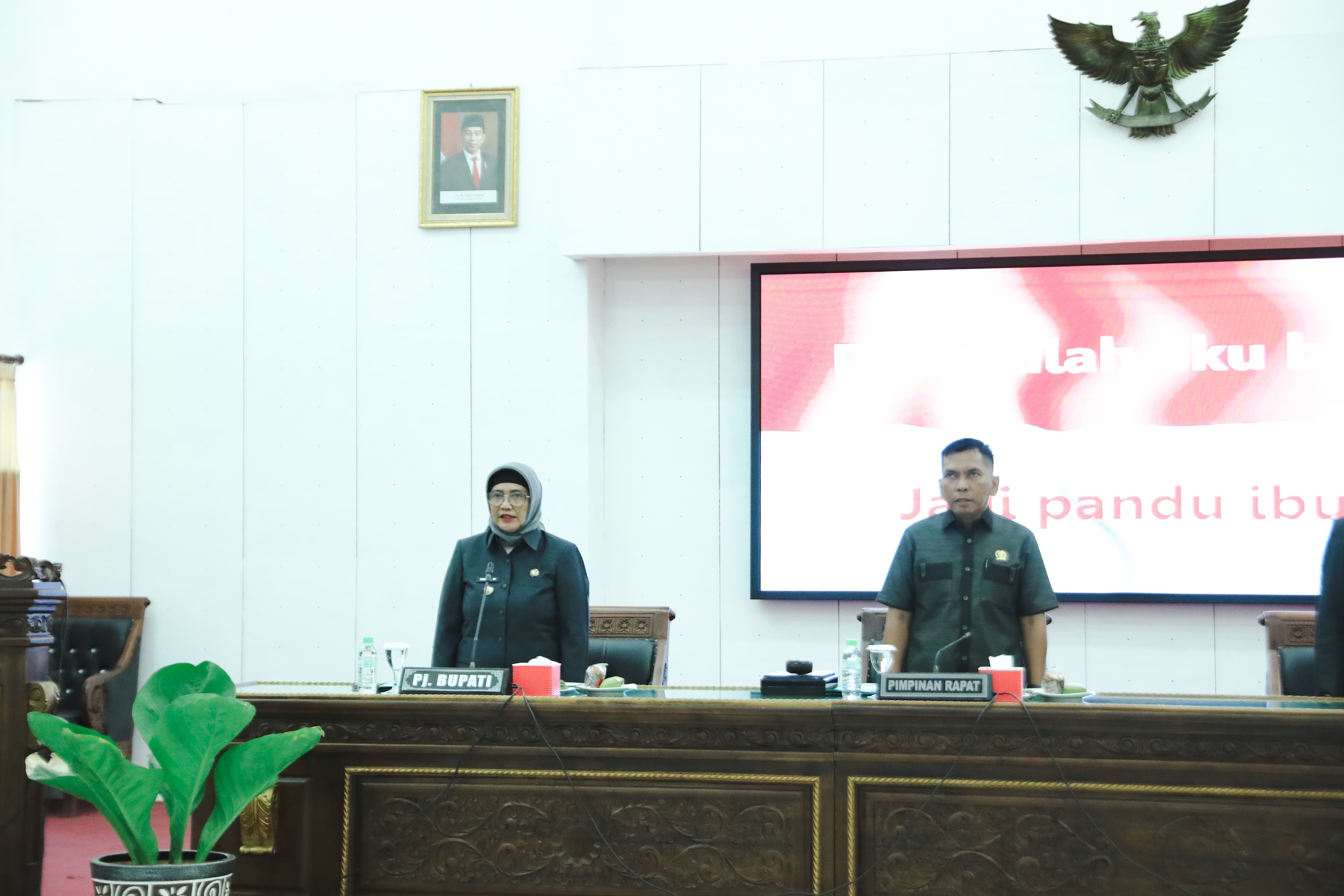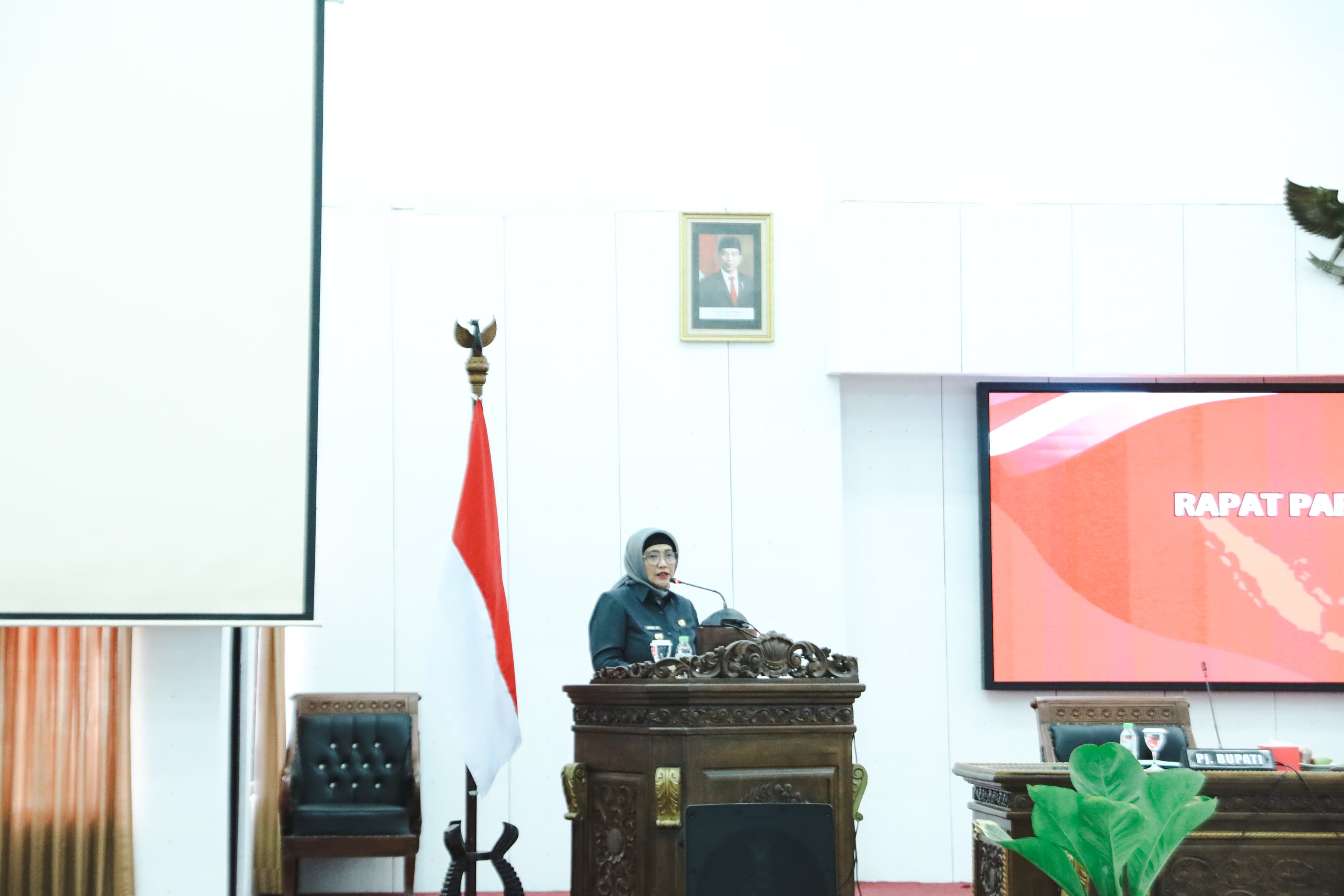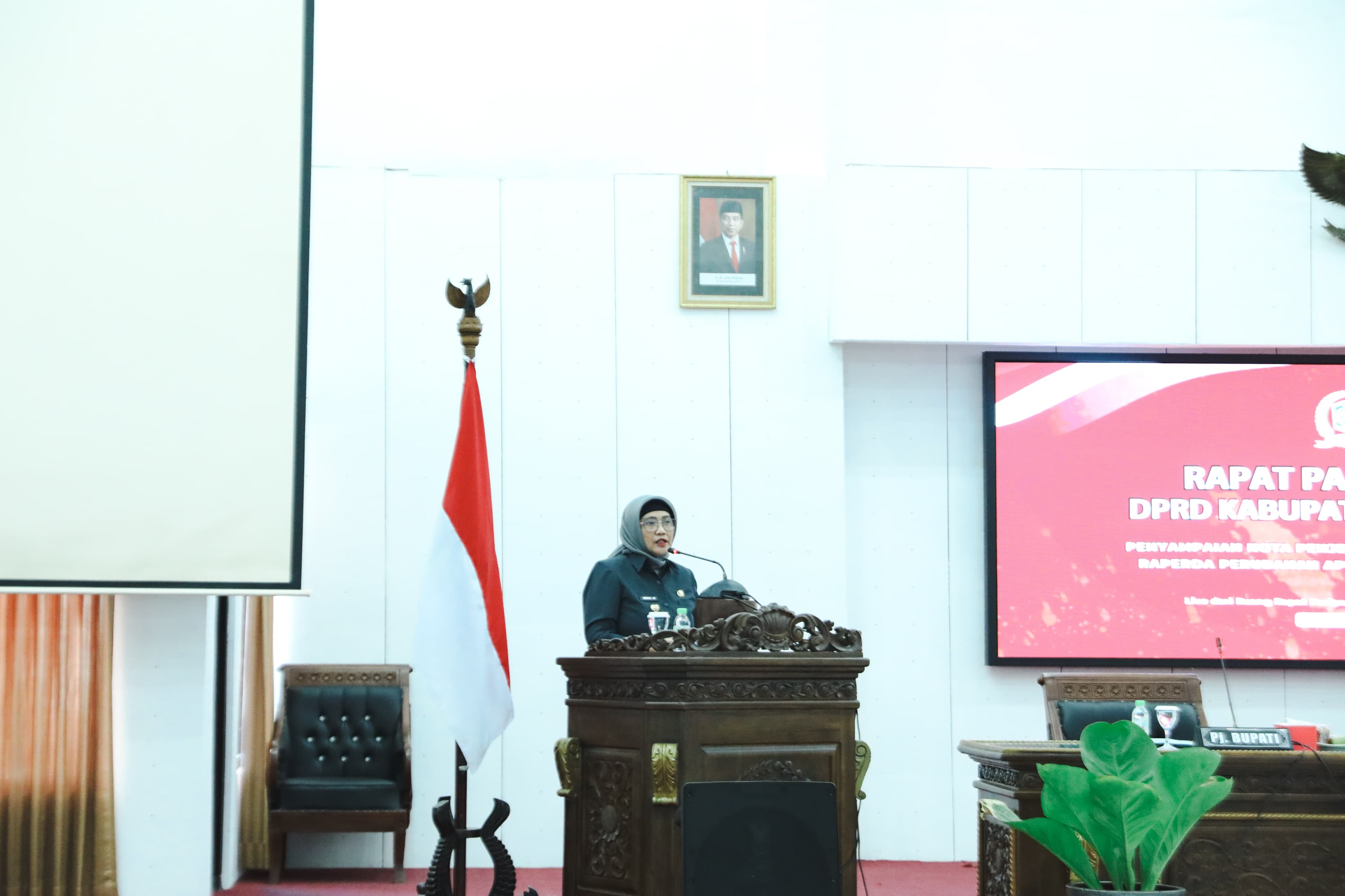 Penjabat (Pj) Bupati Lumajang, Indah Wahyuni (Yuyun) menyampaikan Nota Keuangan atas Rancangan Peraturan Daerah (Raperda) tentang Perubahan Anggaran Pendapatan dan Belanja Daerah (APBD) Kabupaten Lumajang Tahun Anggaran 2024, dalam Rapat Paripurna DPRD yang diselenggarakan di Gedung DPRD, Rabu (17/7/2024).