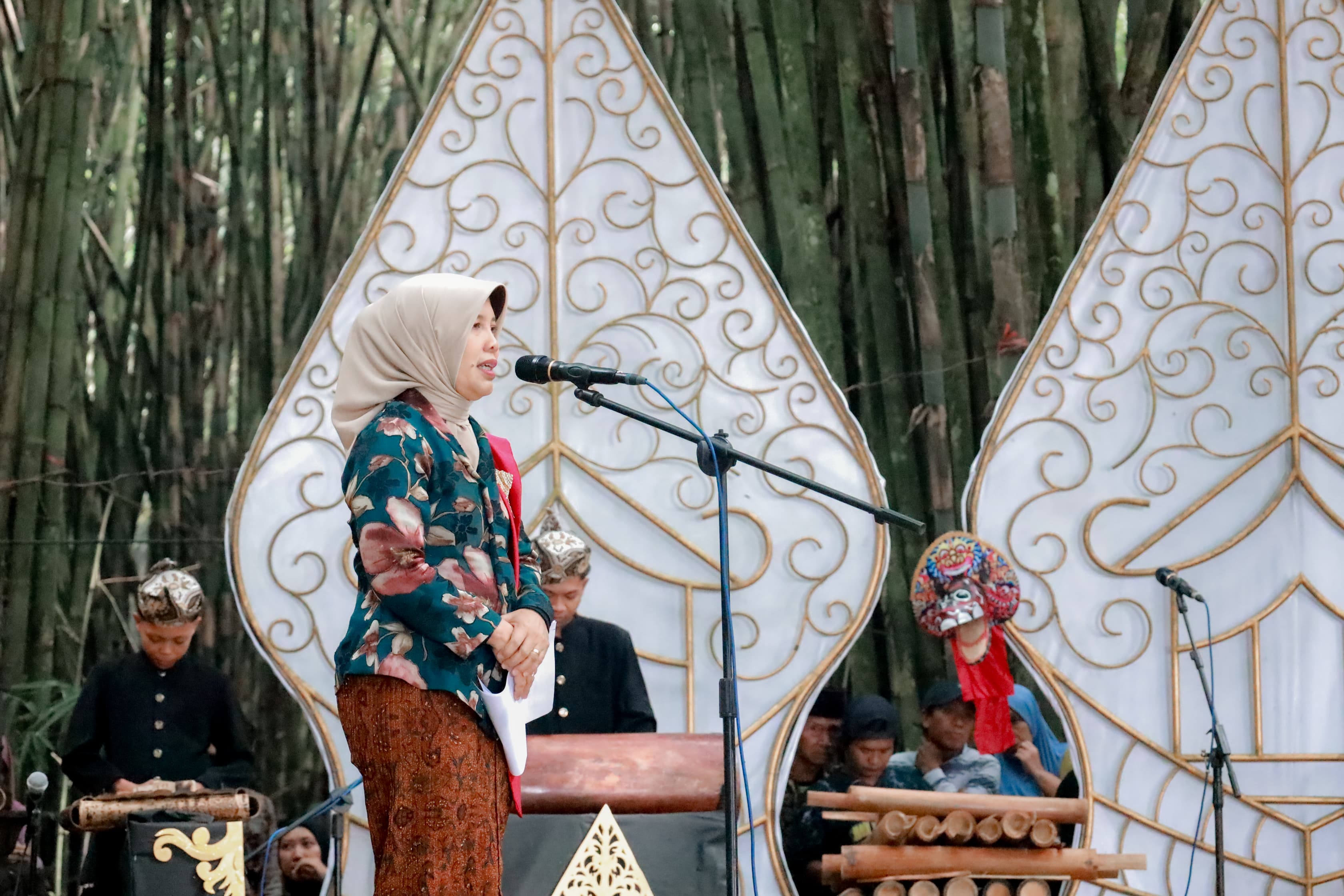Tampak ribuan masyarakat hadir menikmati gelaran event tahunan Loemadjang Mbiyen #4 yang berlangsung di Wisata Hutan Bambu Desa Sumbermujur, Kecamatan Candipuro Kabupaten Lumajang, Minggu (7/7/2024) pagi.