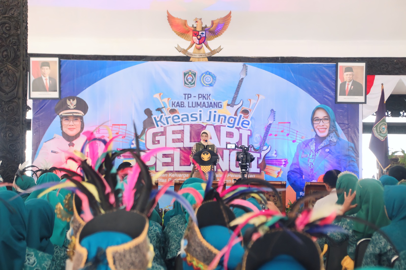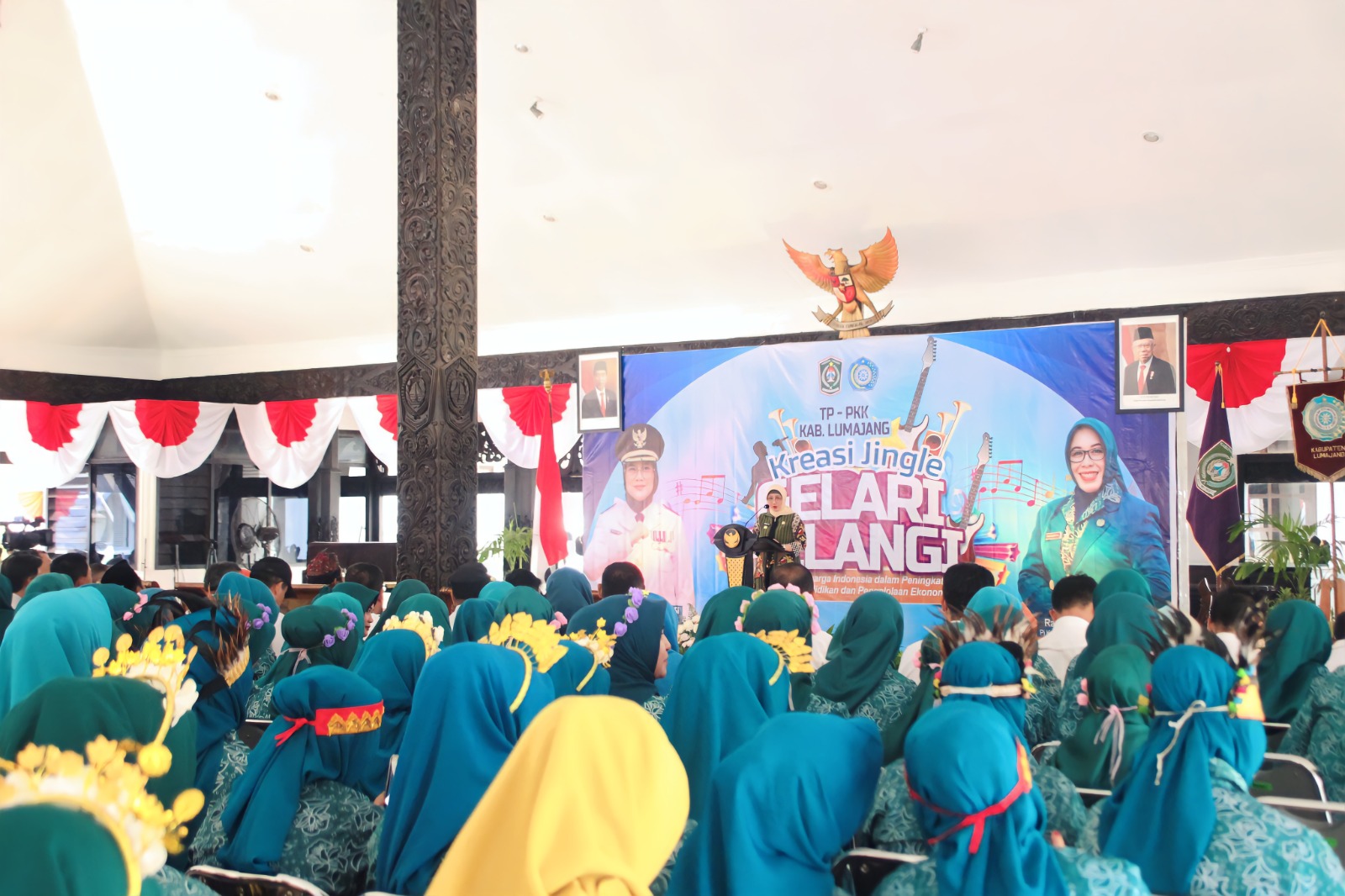 Kader Tim Penggerak PKK mulia tingkat kecamat hingga desa/kelurahan se-Kabupaten Lumajang mengikuti lomba Kreasi Jingle Gerakan Keluarga Indonesia dalam Peningkatan Kualitas Pendidikan dan Pengelolaan Ekonomi (Gelari Pelangi), di Pendopo Arya Wiraraja, Rabu (28/8/2024).