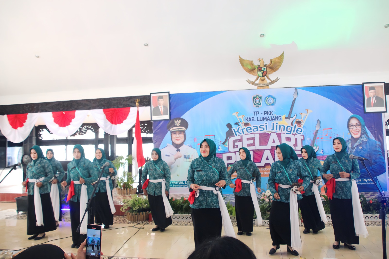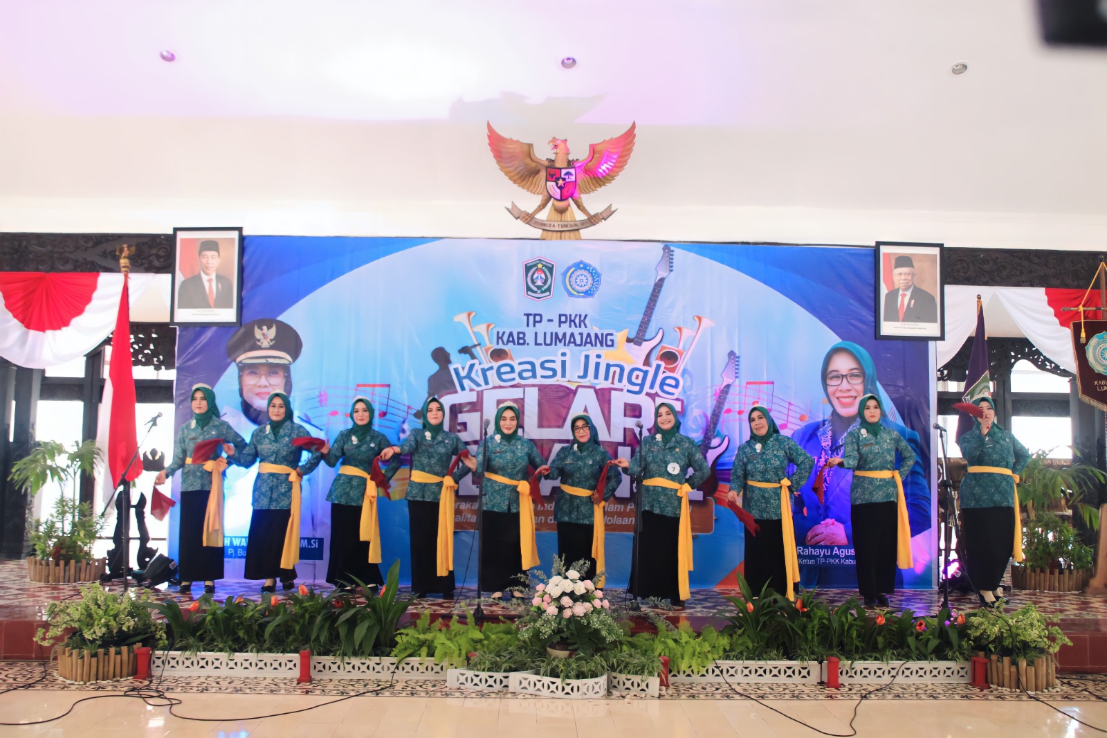 Kader Tim Penggerak PKK mulia tingkat kecamat hingga desa/kelurahan se-Kabupaten Lumajang mengikuti lomba Kreasi Jingle Gerakan Keluarga Indonesia dalam Peningkatan Kualitas Pendidikan dan Pengelolaan Ekonomi (Gelari Pelangi), di Pendopo Arya Wiraraja, Rabu (28/8/2024).