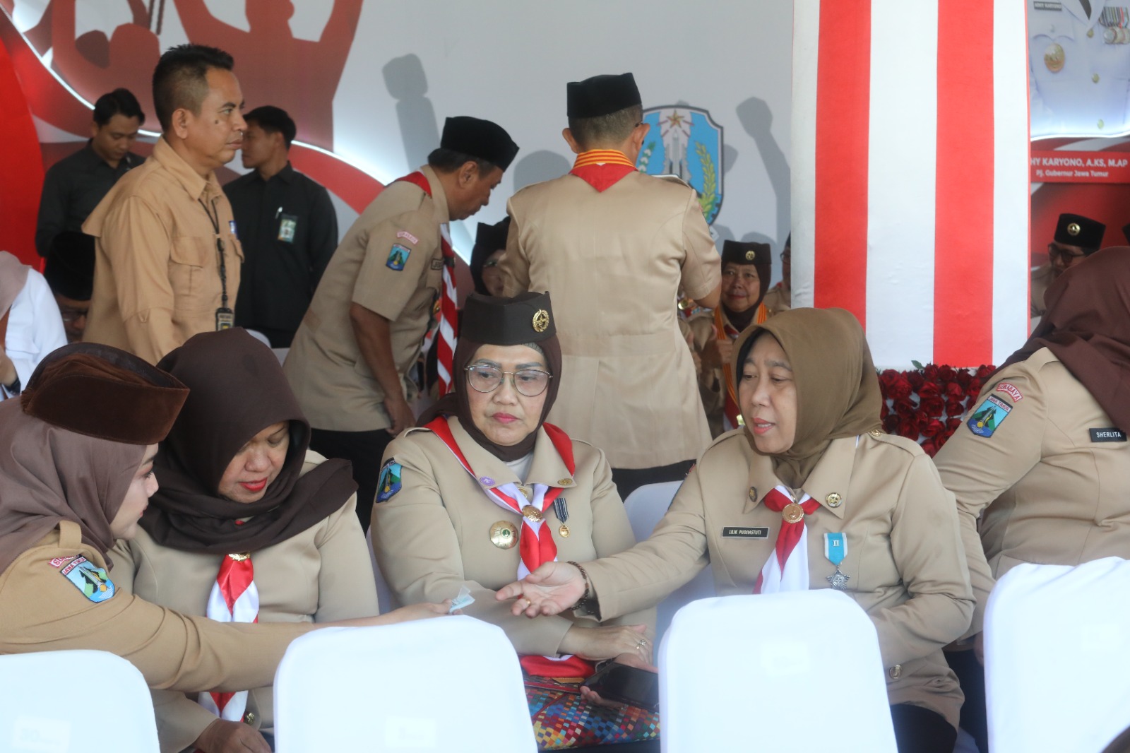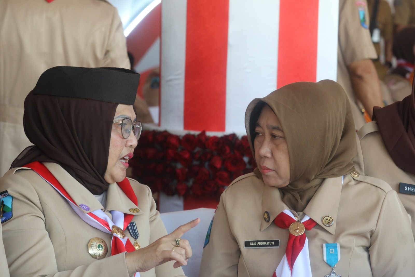 Penjabat (Pj.) Bupati Lumajang, Indah Wahyuni (Yuyun), menghadiri Upacara Peringatan Hari Pramuka Ke-63 Kwartir Daerah Gerakan Pramuka Jawa Timur, di Gedung Negara Grahadi Surabaya, Selasa (27/8/2024).