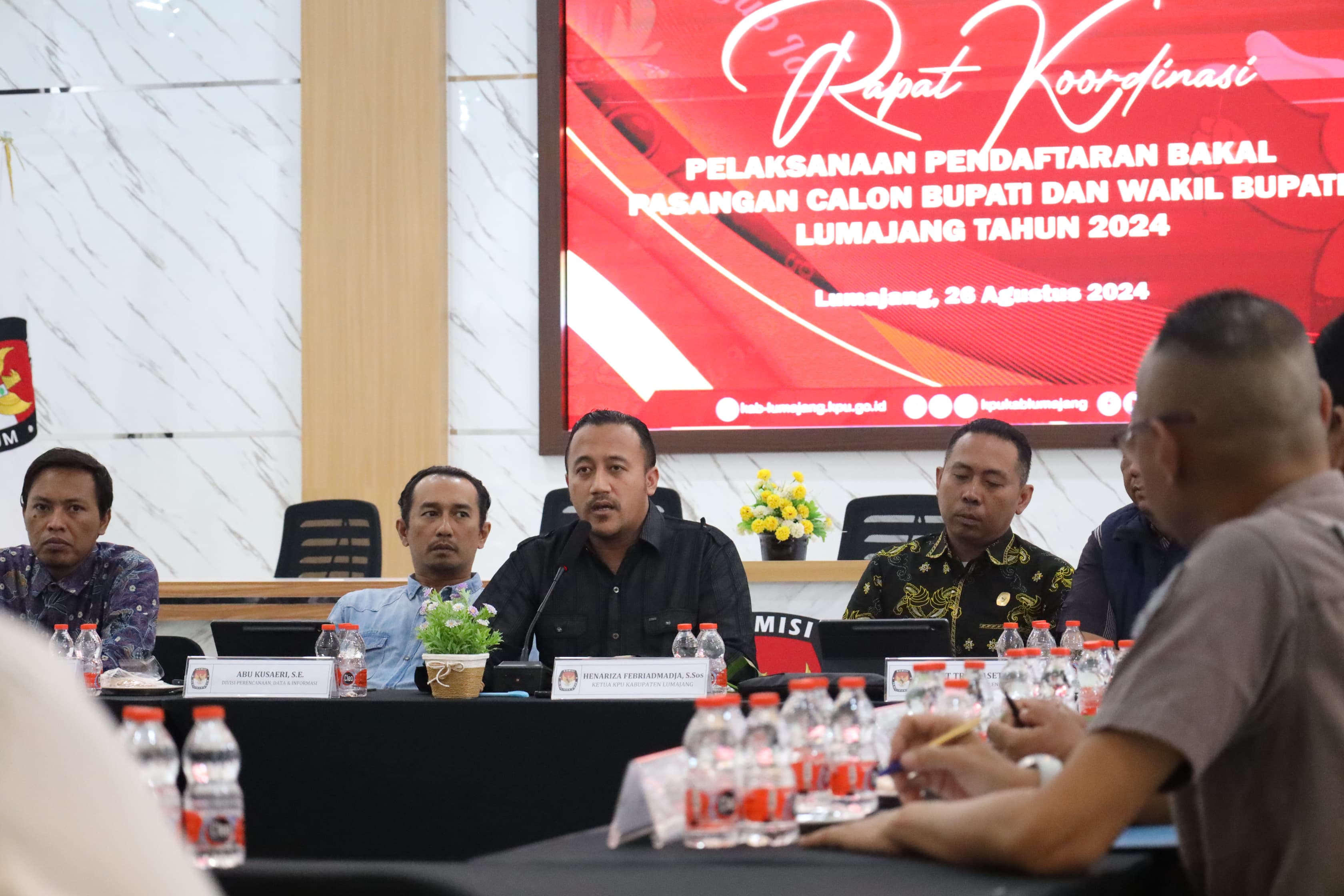 Kegiatan rakor tersebut bertujuan untuk memastikan kelancaran proses pendaftaran dan pemenuhan segala persyaratan bagi para bakal pasangan calon yang akan bertarung dalam Pemilihan Kepala Daerah (Pilkada) Kabupaten Lumajang tahun 2024.