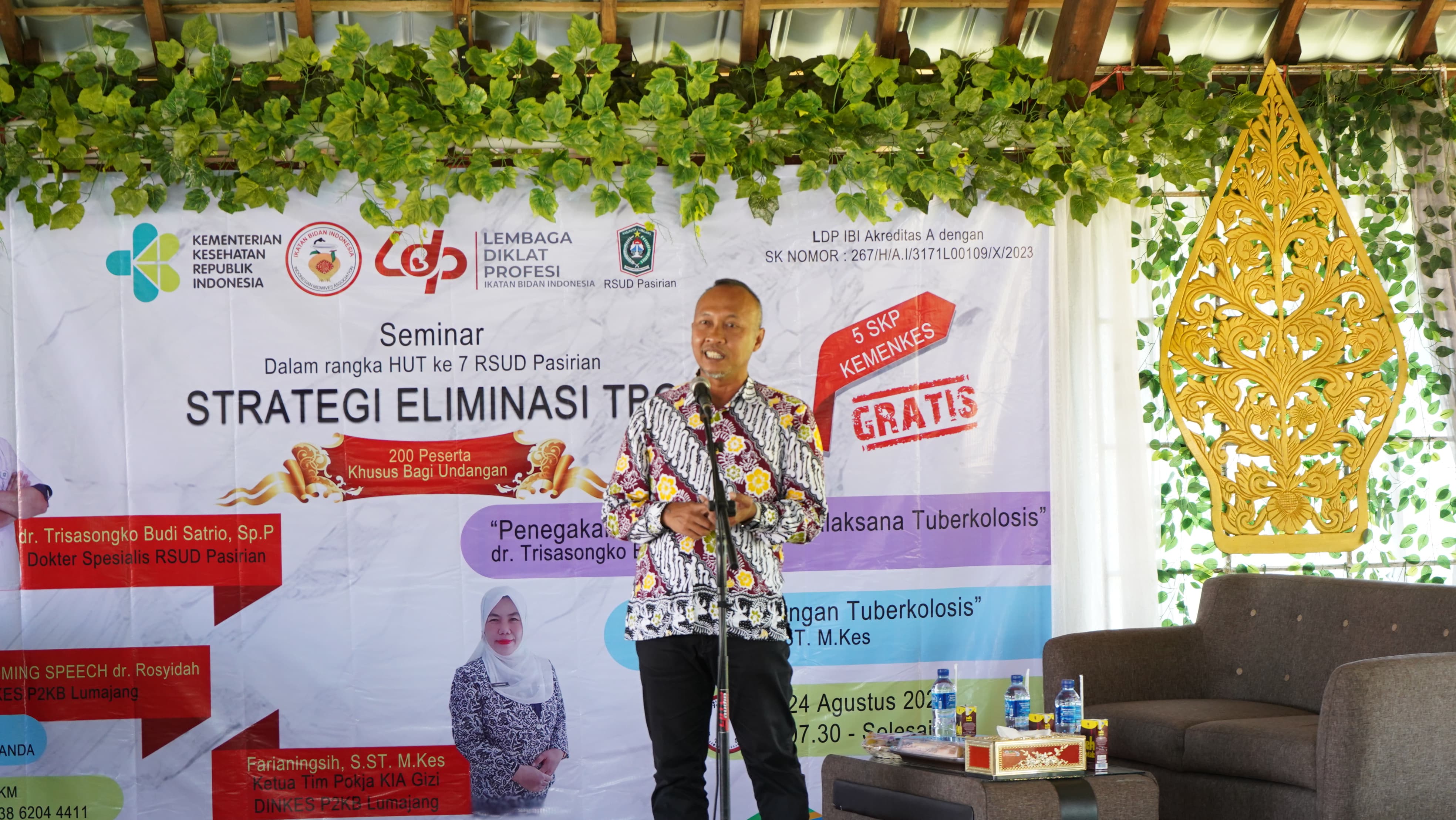 Sekretaris Daerah Kabupaten Lumajang, Agus Triyono berharap tenaga kesehatan di Lumajang proaktif mengedukasi tentang TBC (Tuberkulosis). Hal itu disampaikannya saat membuka Seminar Strategi Eliminasi TBC di Pendopo Glagaharum, Senduro, Sabtu (24/08/2024).