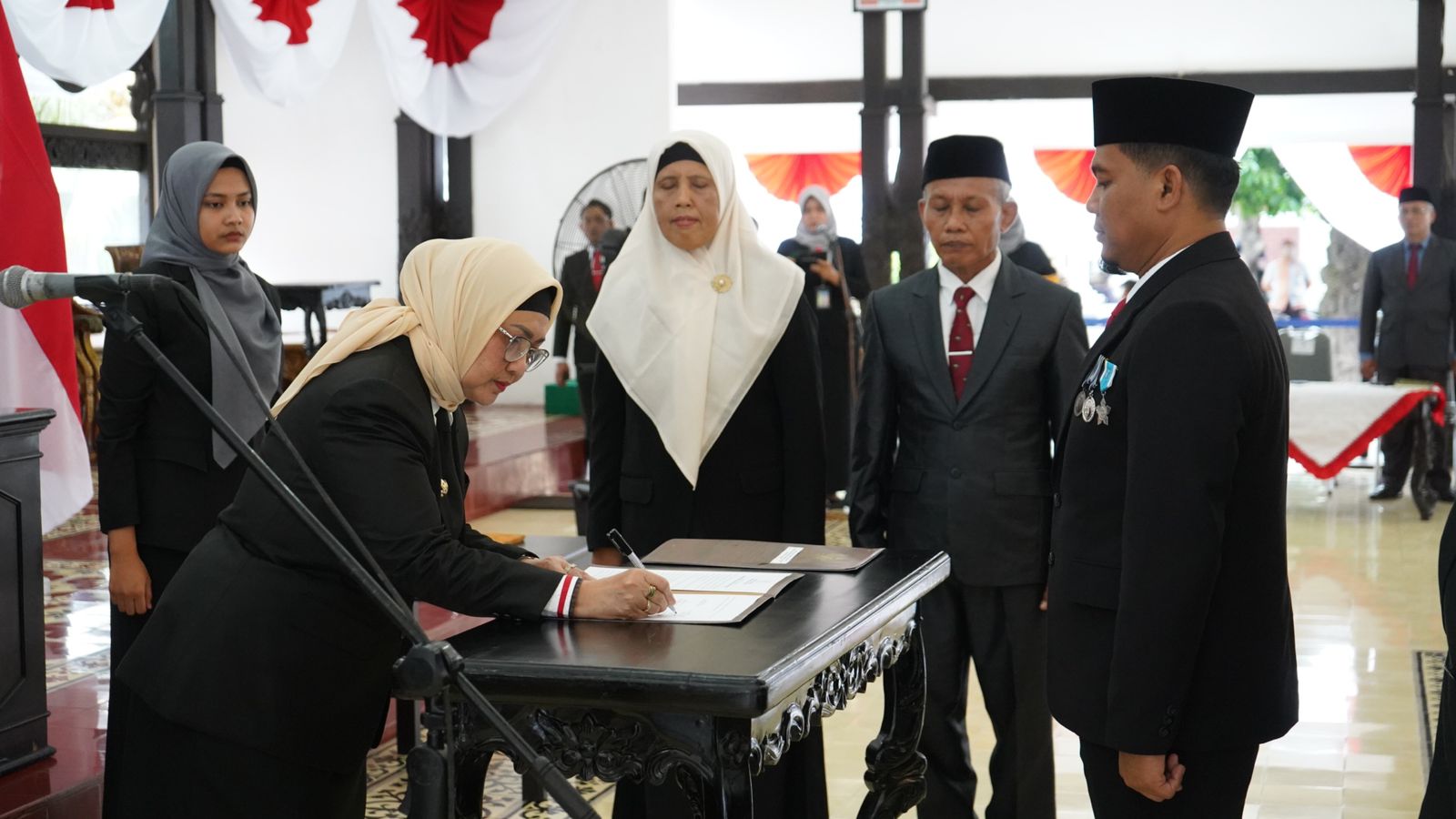 Pelantikan dan pengambilan sumpah jabatan yang dilaksanakan di Pendopo Arya Wiraraja Kabupaten Lumajang, Jum'at (23/8/2024), berdasarkan Keputusan Bupati Lumajang Nomor 800.1.3.3/153/427.72/2024 tahun 2024.