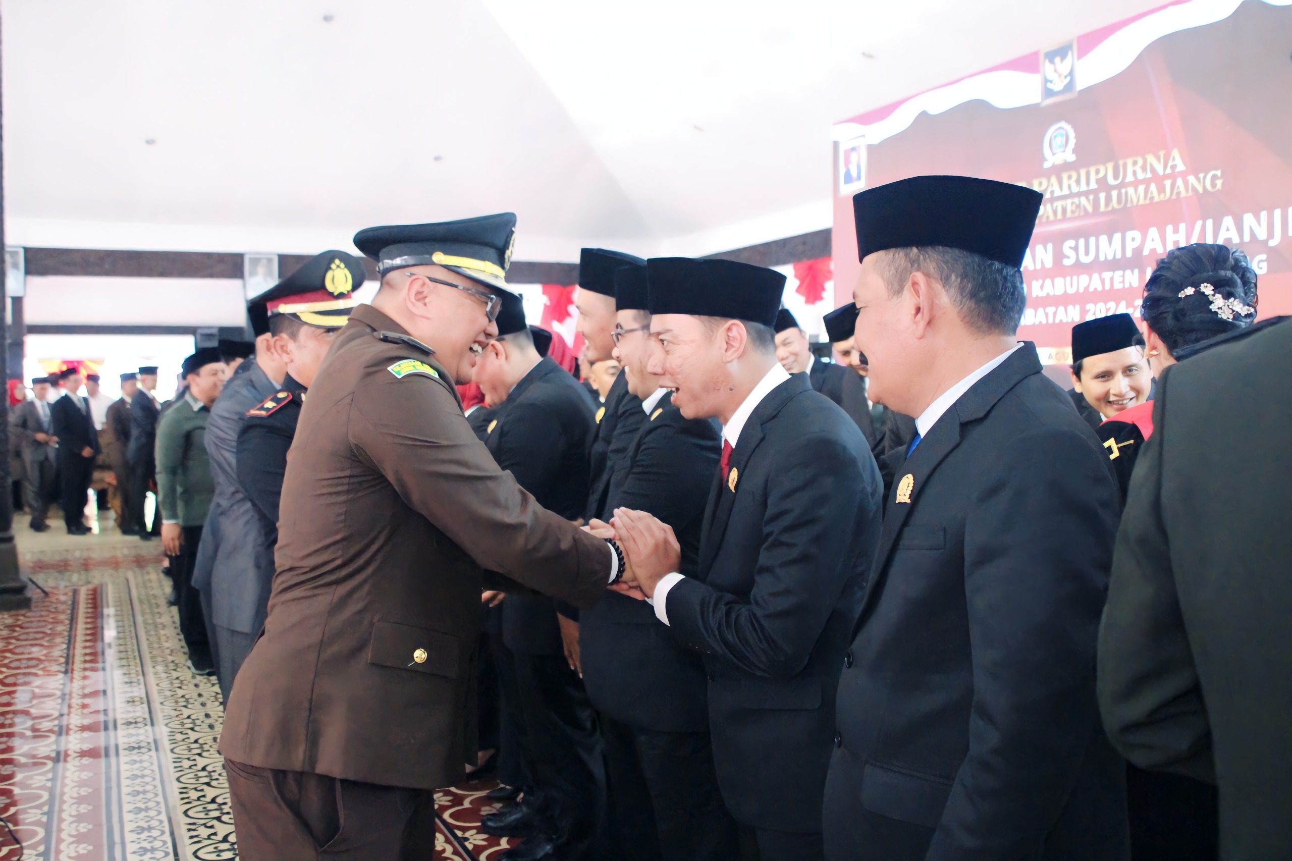 Sebanyak 50 anggota Dewan Perwakilan Rakyat Daerah (DPRD) Kabupaten Lumajang terpilih masa jabatan tahun 2024-2029 hasil Pemilu Legislatif (Pileg) 2024 dilantik, di Pendopo Arya Wiraraja Kabupaten Lumajang pada Rabu (21/8/2024) pagi,
