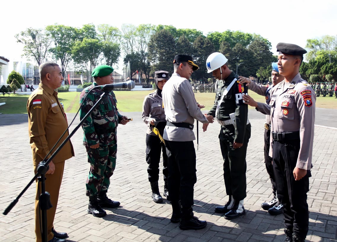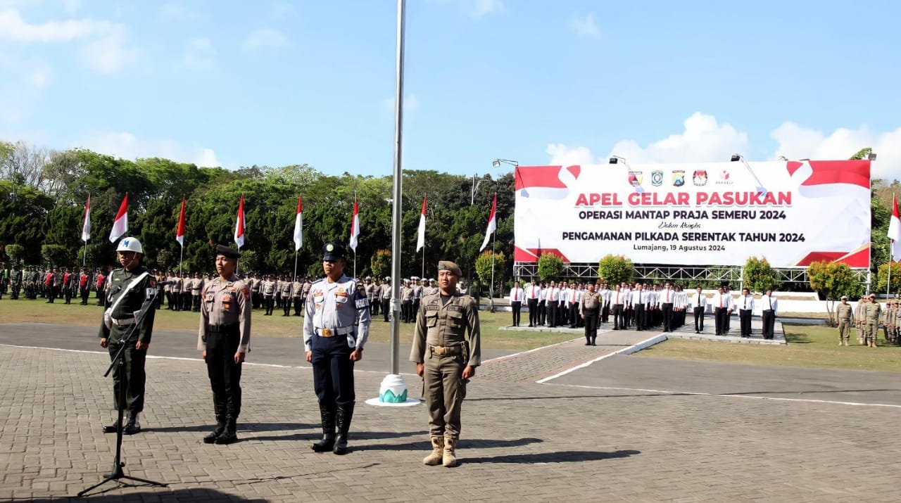 Dalam rangka menjaga keamanan dan ketertiban masyarakat (Kamtibmas) dalam pelaksanaan Pilkada Serentak Tahun 2024, Forum Komunikasi Pimpinan Daerah (Forkopimda) Kabupaten Lumajang menggelar Apel Pasukan Operasi Mantap Praja Semeru 2024, di Alun-Alun Kabupaten Lumajang, Senin (19/8/2024) pagi.