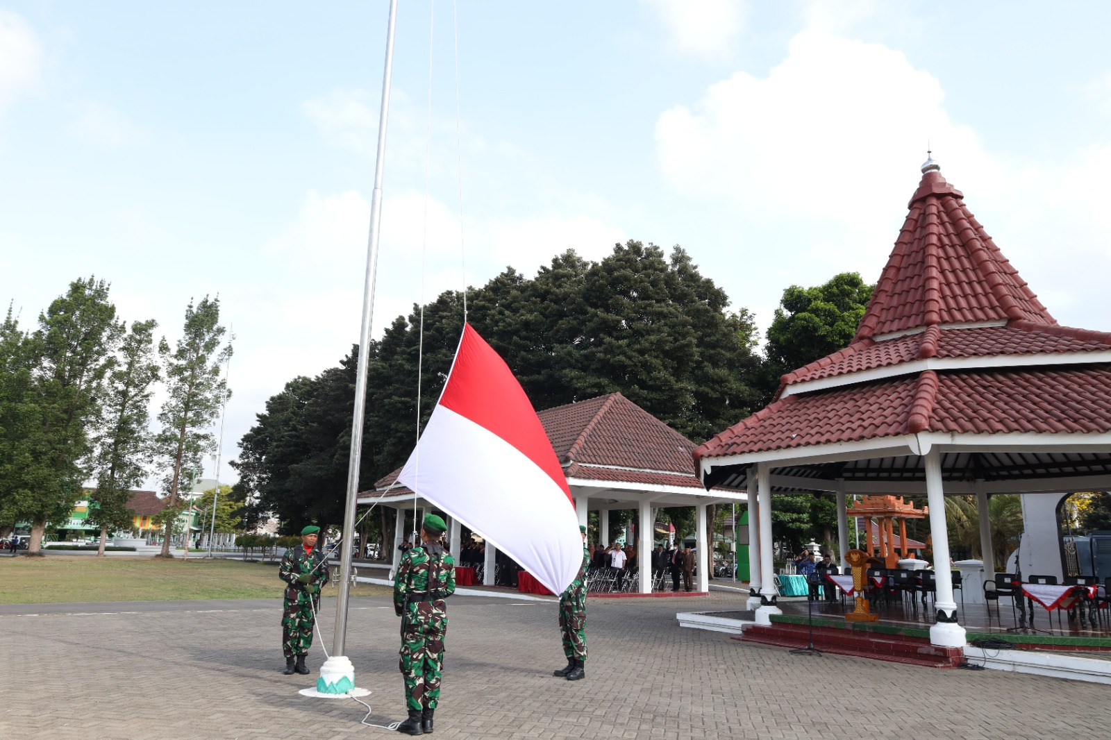 Sekretaris Daerah (Sekda) Kabupaten Lumajang, Agus Triyono menegaskan pentingnya Hari Kesaktian Pancasila sebagai momen refleksi untuk memperkuat jati diri bangsa. Hal itu disampaikan usai mengikuti Upacara Peringatan Hari Kesaktian Pancasila 2024 yang digelar di Alun-alun Lumajang, Jawa Timur, Selasa (1/10/2024).