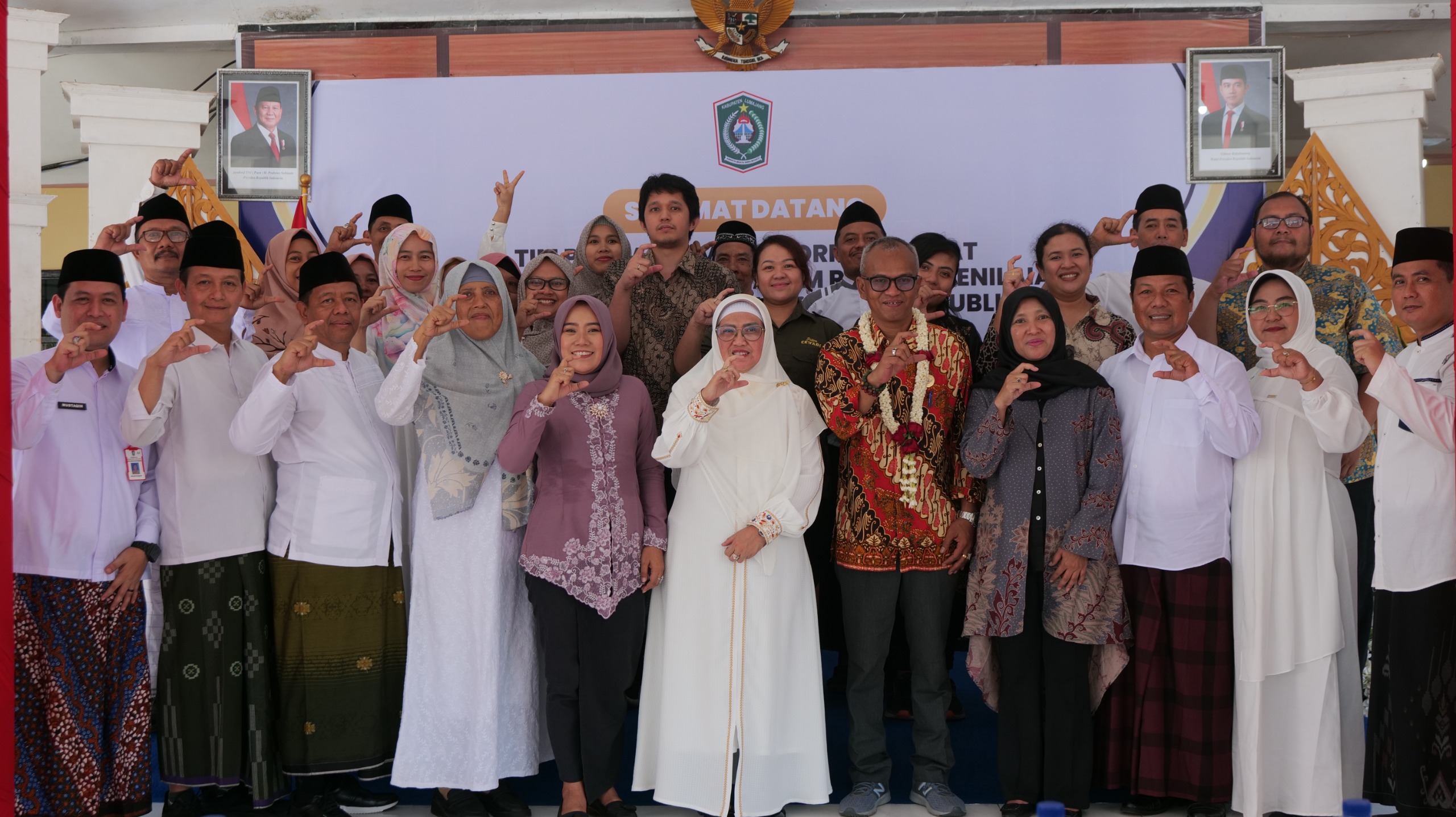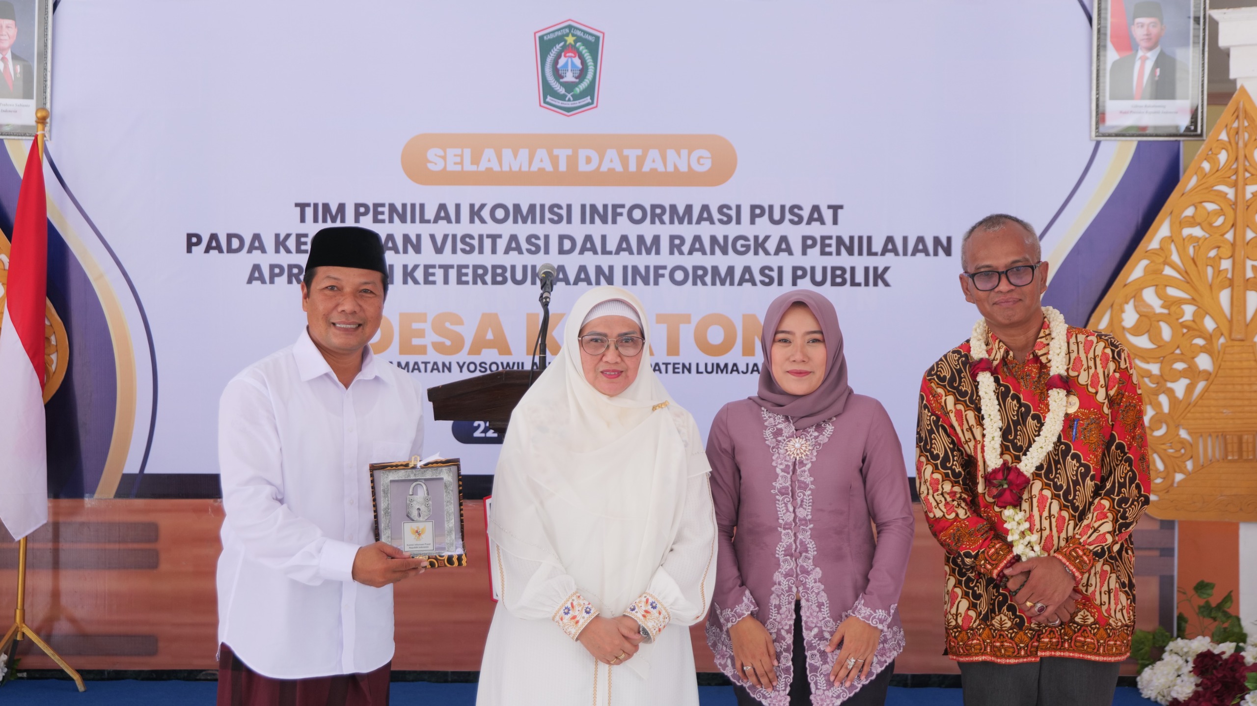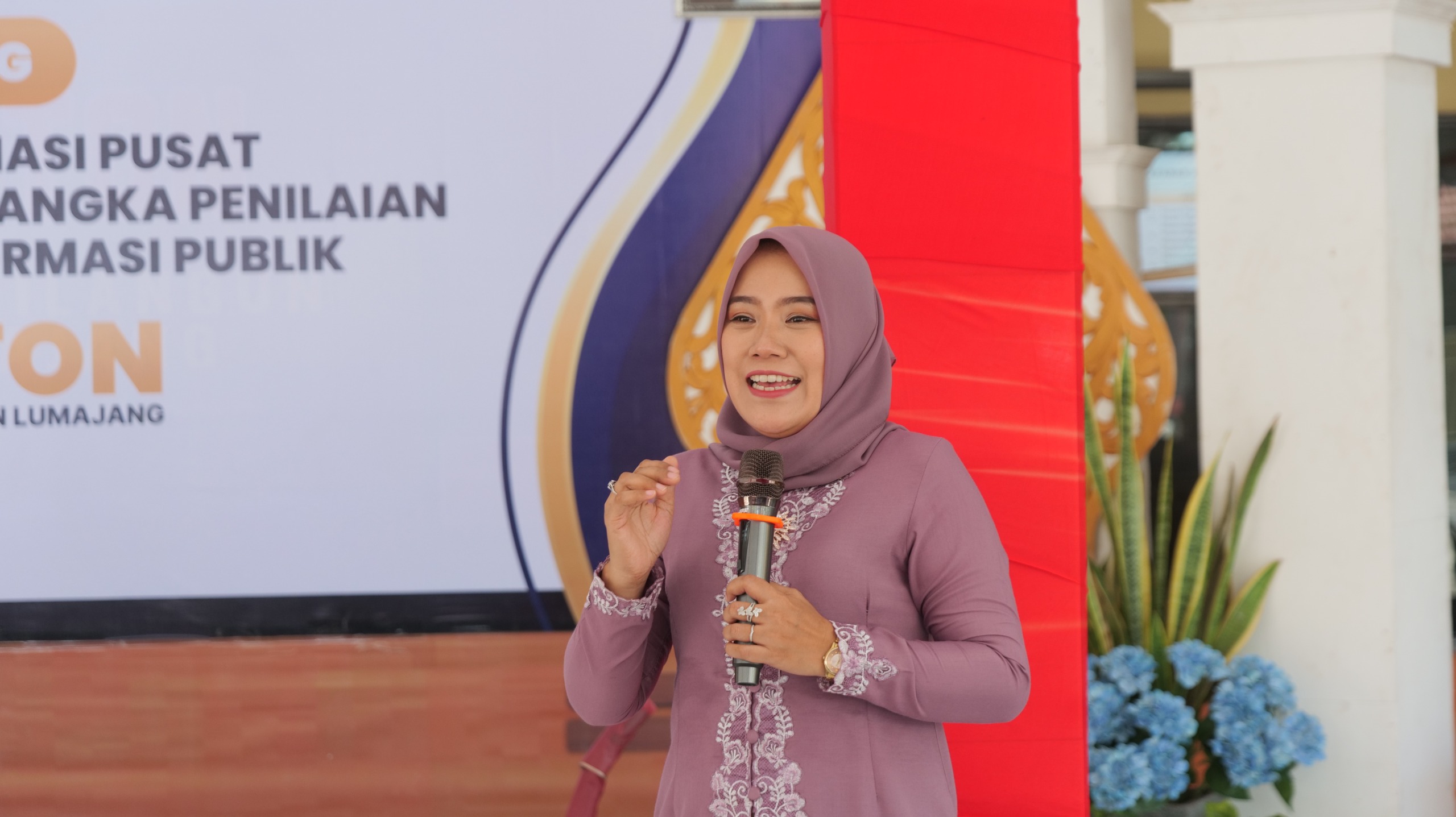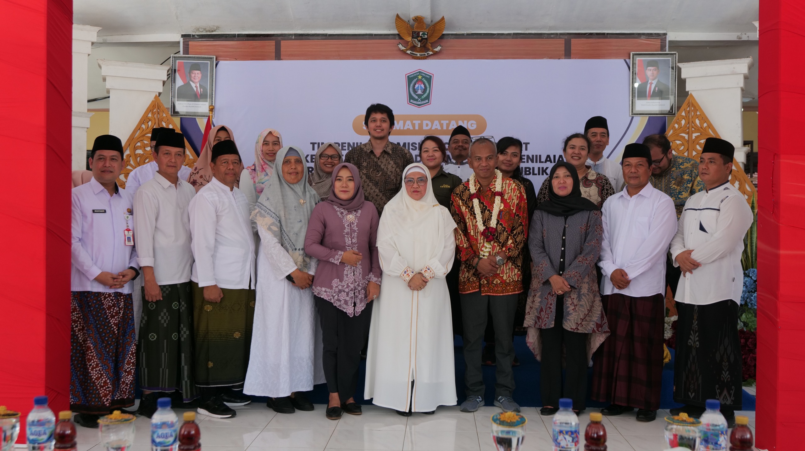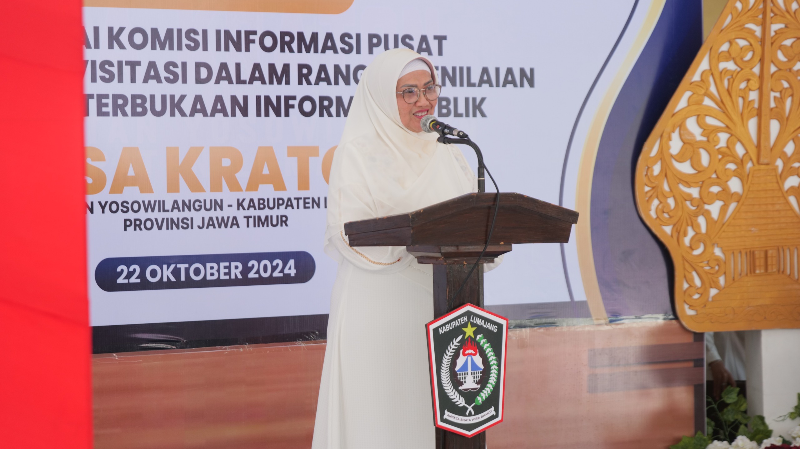 Pj. Bupati Lumajang, Indah Wahyuni sambut kedatangan Tim Penilai Komisi Informasi Pusat pada kegiatan visitasi dalam rangka penilaian apresiasi keterbukaan informasi publik Desa Kraton Kecamatan Yosowilangun, Kabupaten Lumajang, Selasa (22/10/2024).
