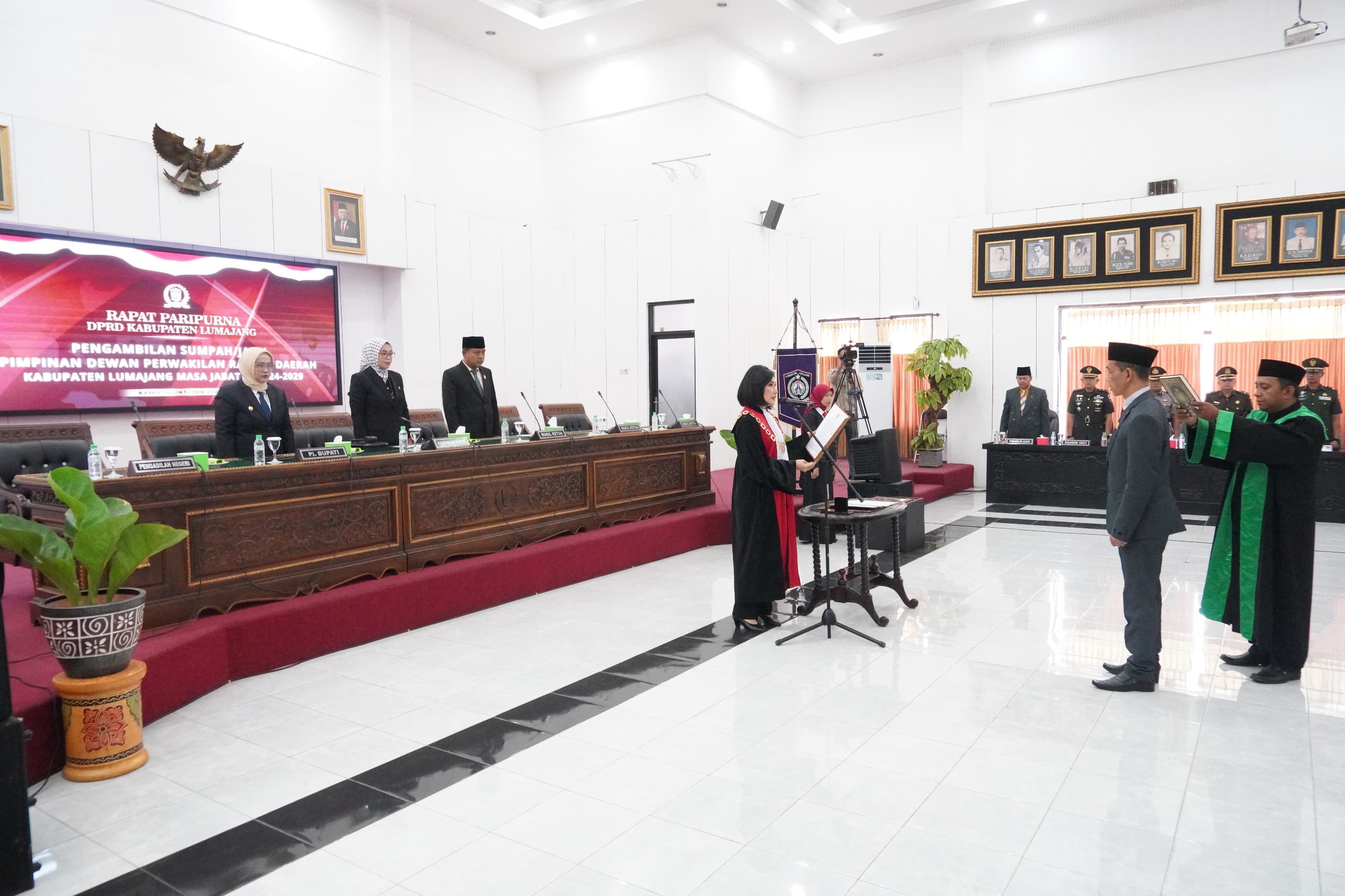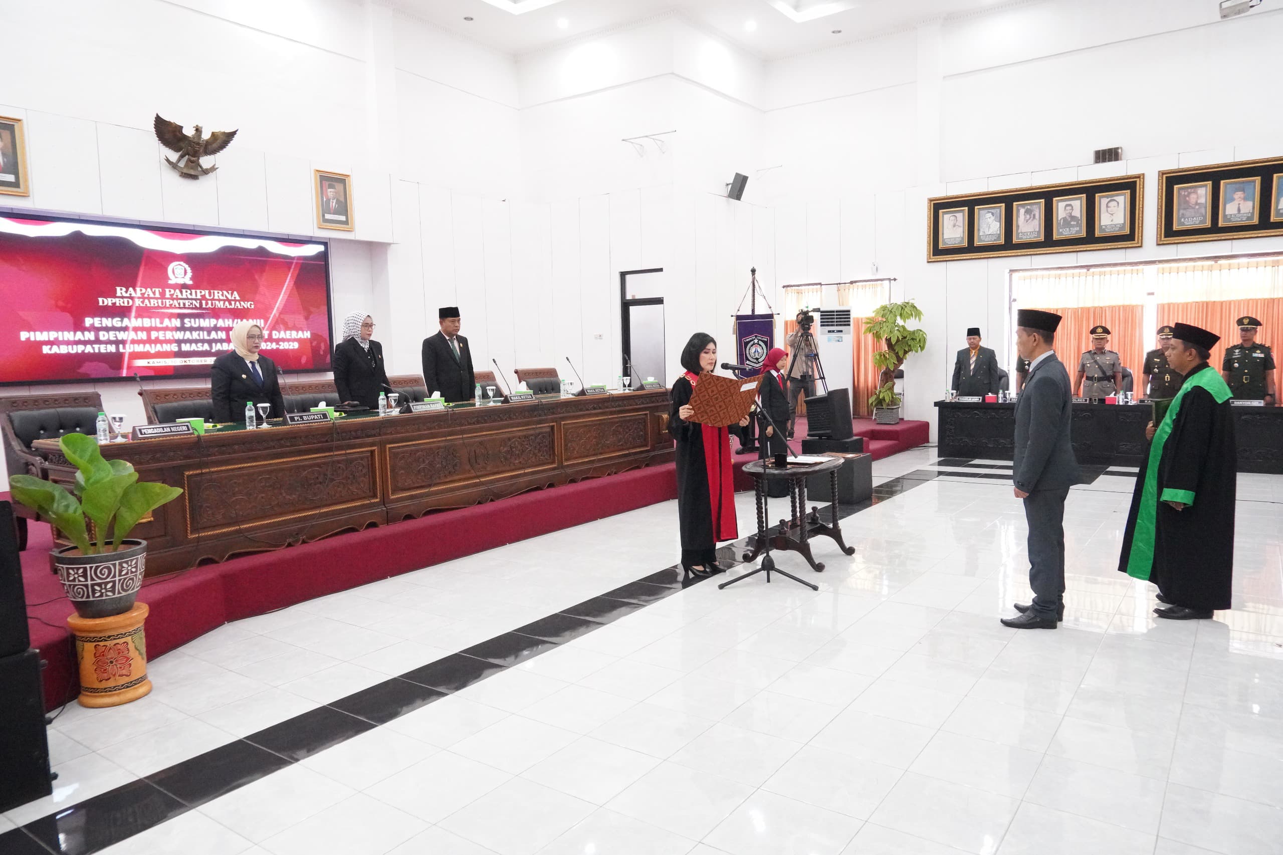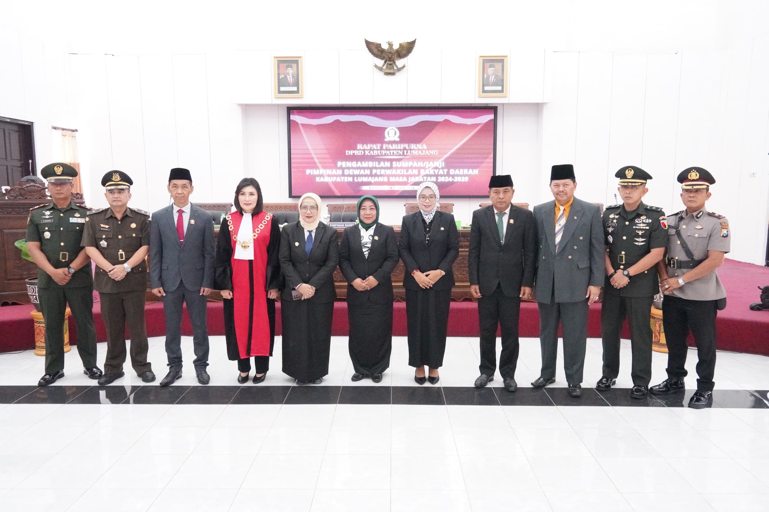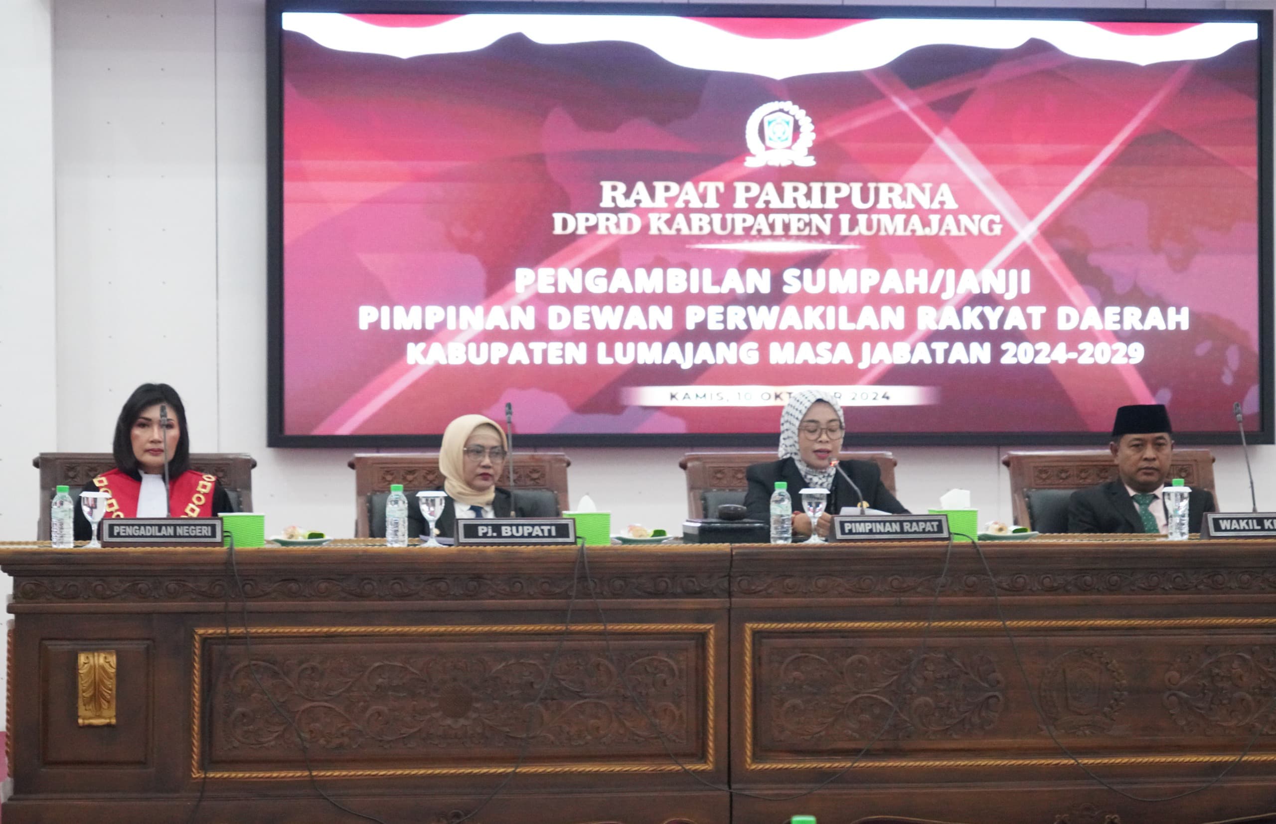 Harapan tersebut disampaikan Yuyun pada Rapat Paripurna dalam rangka Pengambilan Sumpah/Janji Pimpinan DPRD Lumajang, Kamis (10/10/2024). Pelantikan tersebut diharapkan menjadi momentum strategis bagi peningkatan kinerja legislatif dalam fungsi pengawasan, legislasi, dan anggaran secara efektif, efisien, dan optimal.