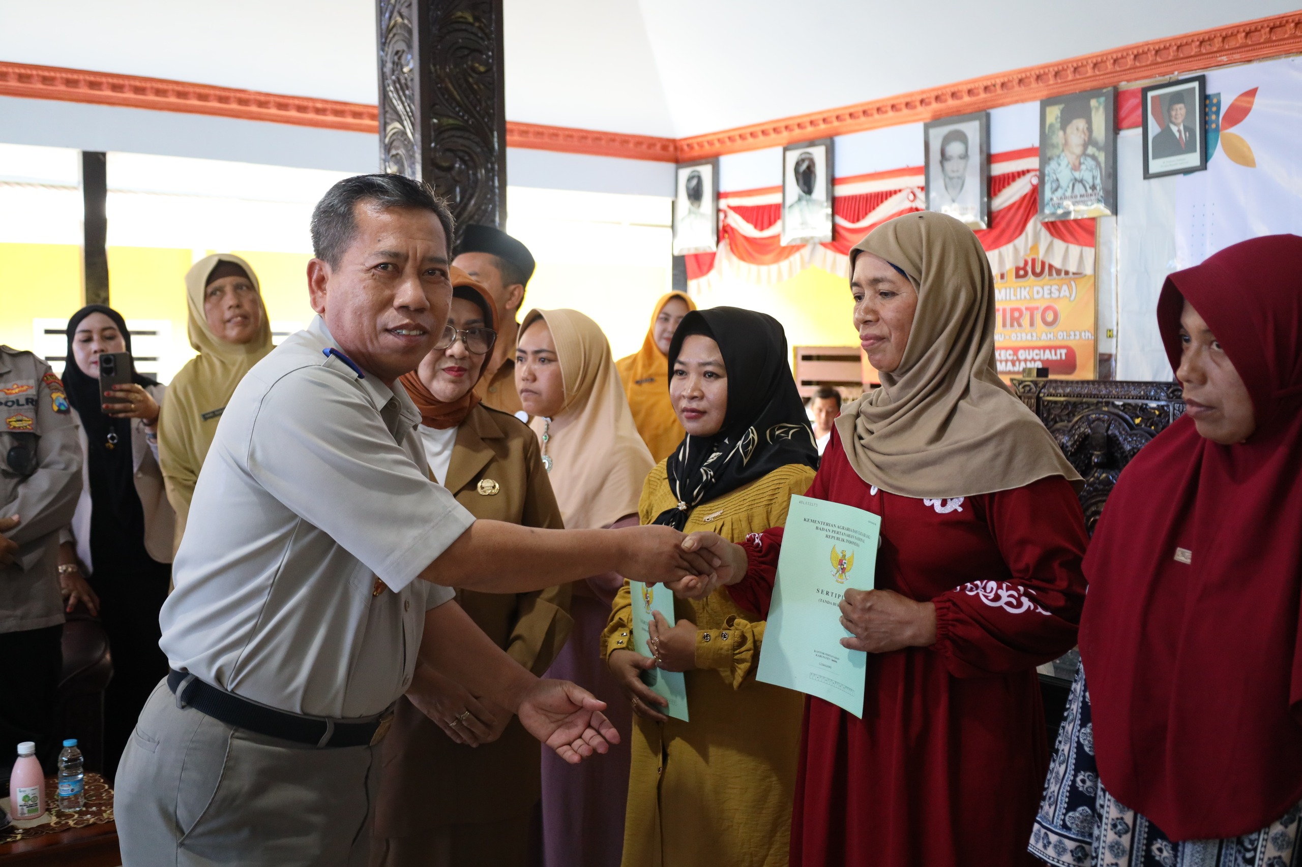 Hal tersebut disampaikan oleh Pj. Bupati Lumajang Indah Wahyuni (Bunda Yuyun) dalam kegiatan Penyerahan Sertifikat PTSL 2024 dan Penyuluhan Hukum Pertanahan serta Bakti Sosial, yang bertempat di Balai Desa Wonokerto, Kecamatan Gucialit, Kabupaten Lumajang, Senin (4/11/2024).