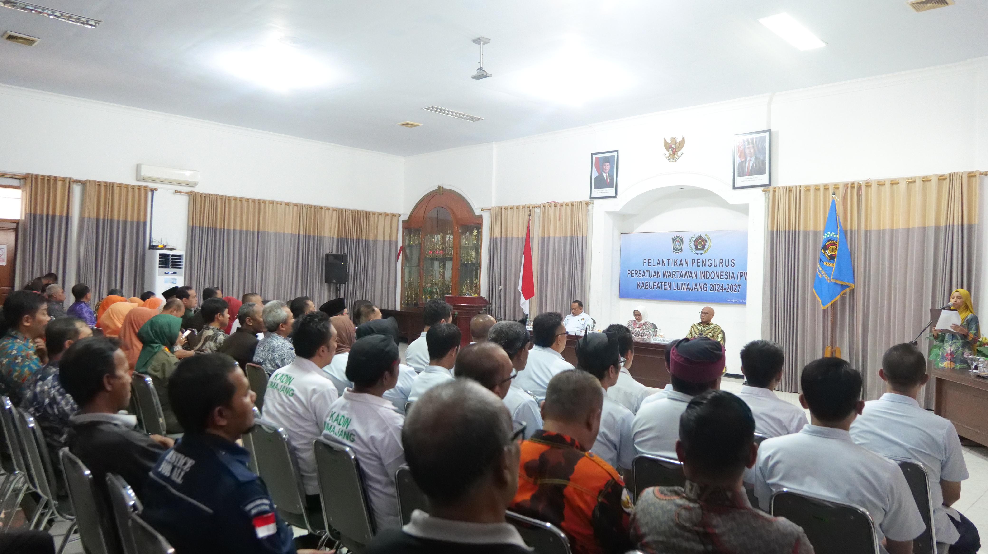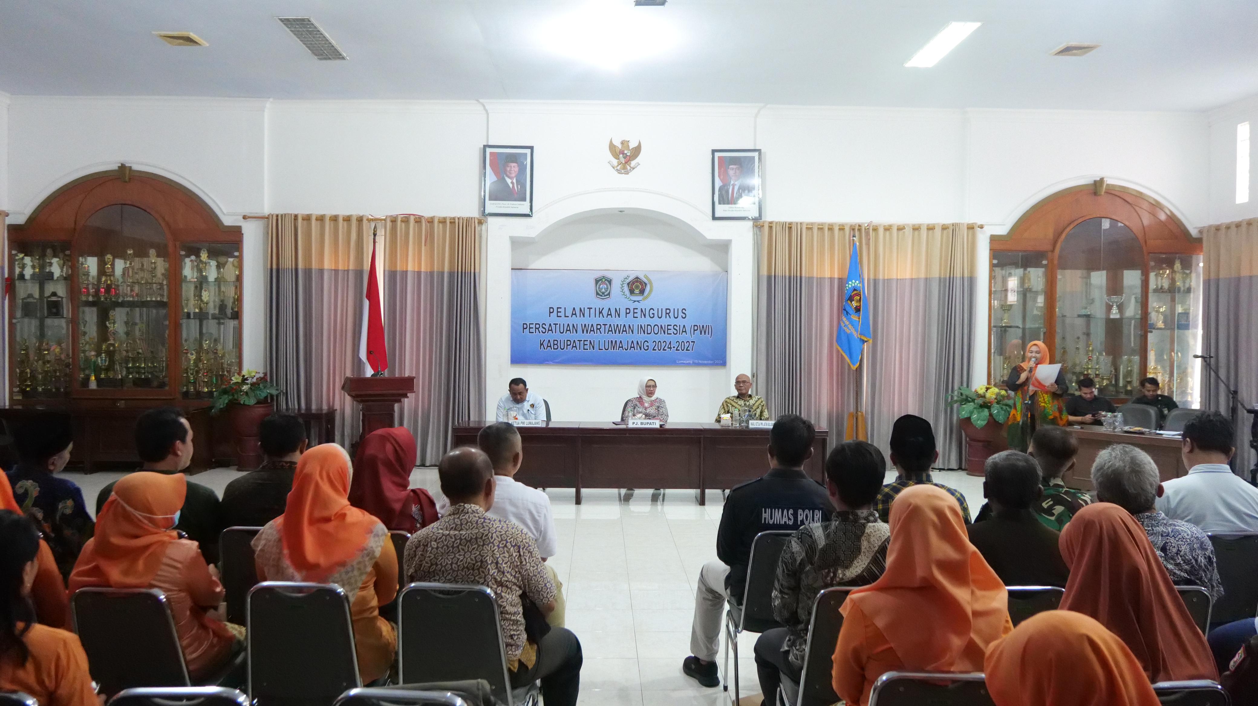 Pengurus Persatuan Wartawan Indonesia (PWI) Kabupaten Lumajang resmi dilantik oleh Wakil Ketua Bidang Organisasi PWI Provinsi Jawa Timur Machmud Suhermono yang disaksikan oleh Pj. Bupati Lumajang Indah Wahyuni (Bunda Yuyun), bertempat di Gedung Panti PKK Kabupaten Lumajang, Jumat (15/11/2024).