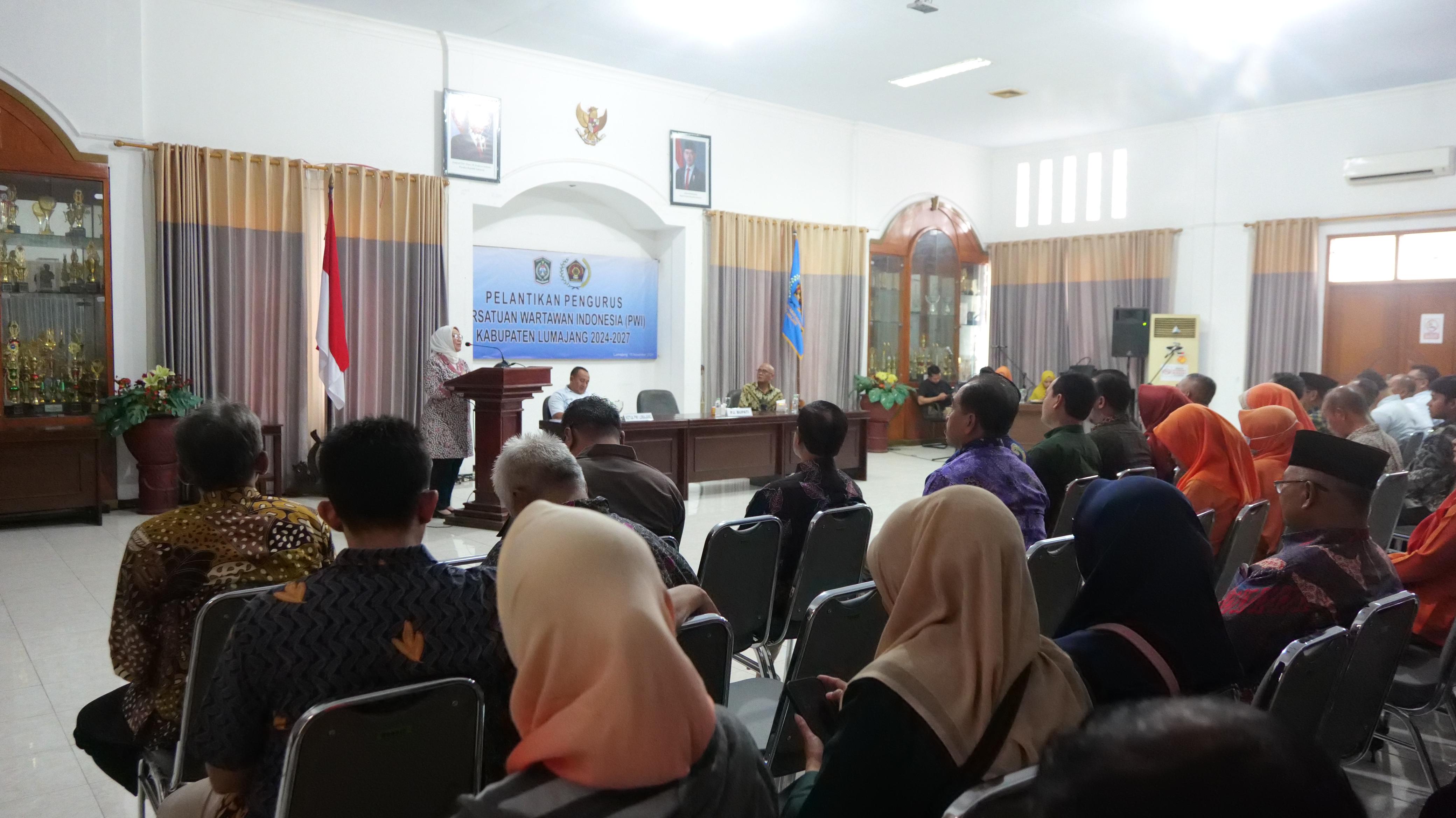 Pengurus Persatuan Wartawan Indonesia (PWI) Kabupaten Lumajang resmi dilantik oleh Wakil Ketua Bidang Organisasi PWI Provinsi Jawa Timur Machmud Suhermono yang disaksikan oleh Pj. Bupati Lumajang Indah Wahyuni (Bunda Yuyun), bertempat di Gedung Panti PKK Kabupaten Lumajang, Jumat (15/11/2024).