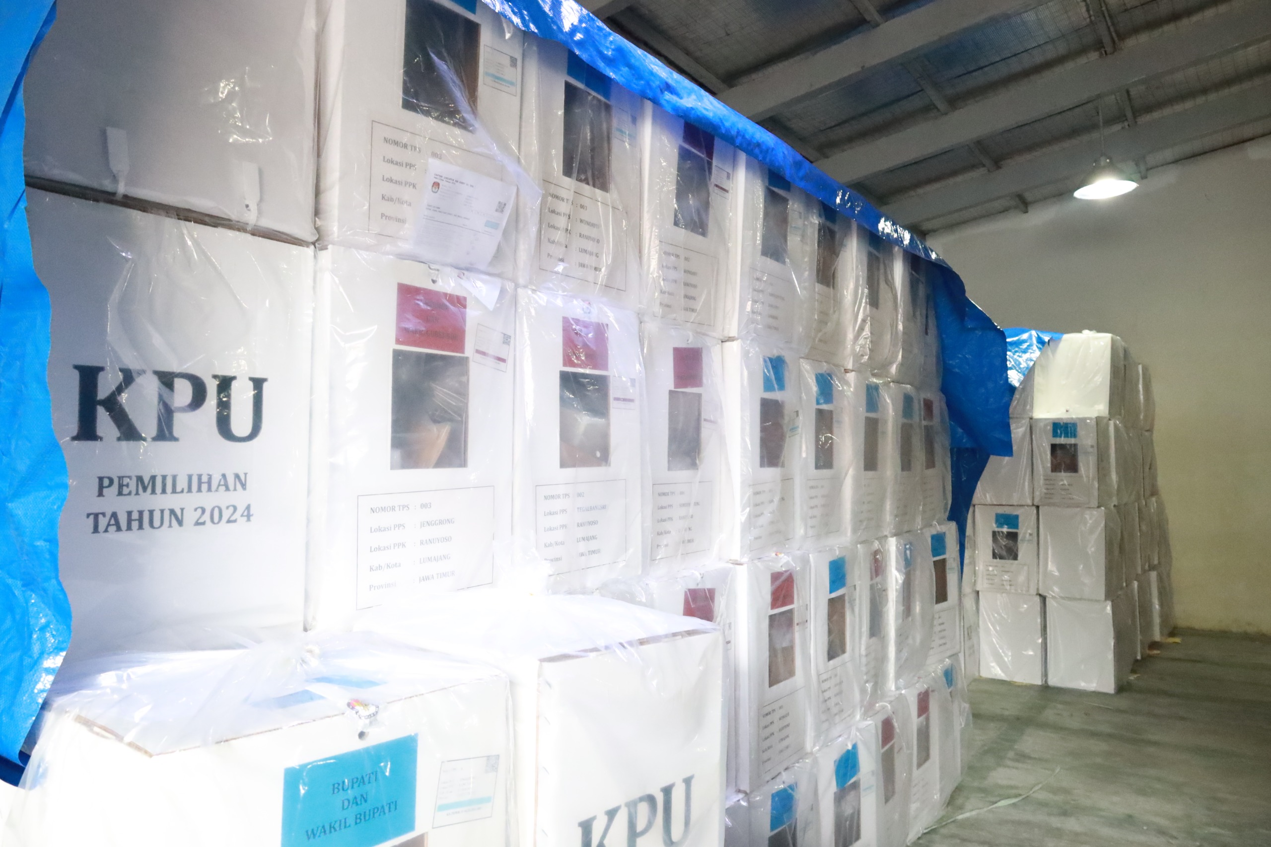 Guna memastikan kesiapan penyelenggara memasuki H-7 Pilkada Serentak 2024, Pj. Bupati Lumajang, Indah Wahyuni mengunjungi gudang logistik KPU Lumajang yang terletak di Jalan Sunandar Priyo Sudarmo No 70, Desa Kutorenon Kecamatan Sukodono, Kamis (21/11/2024).