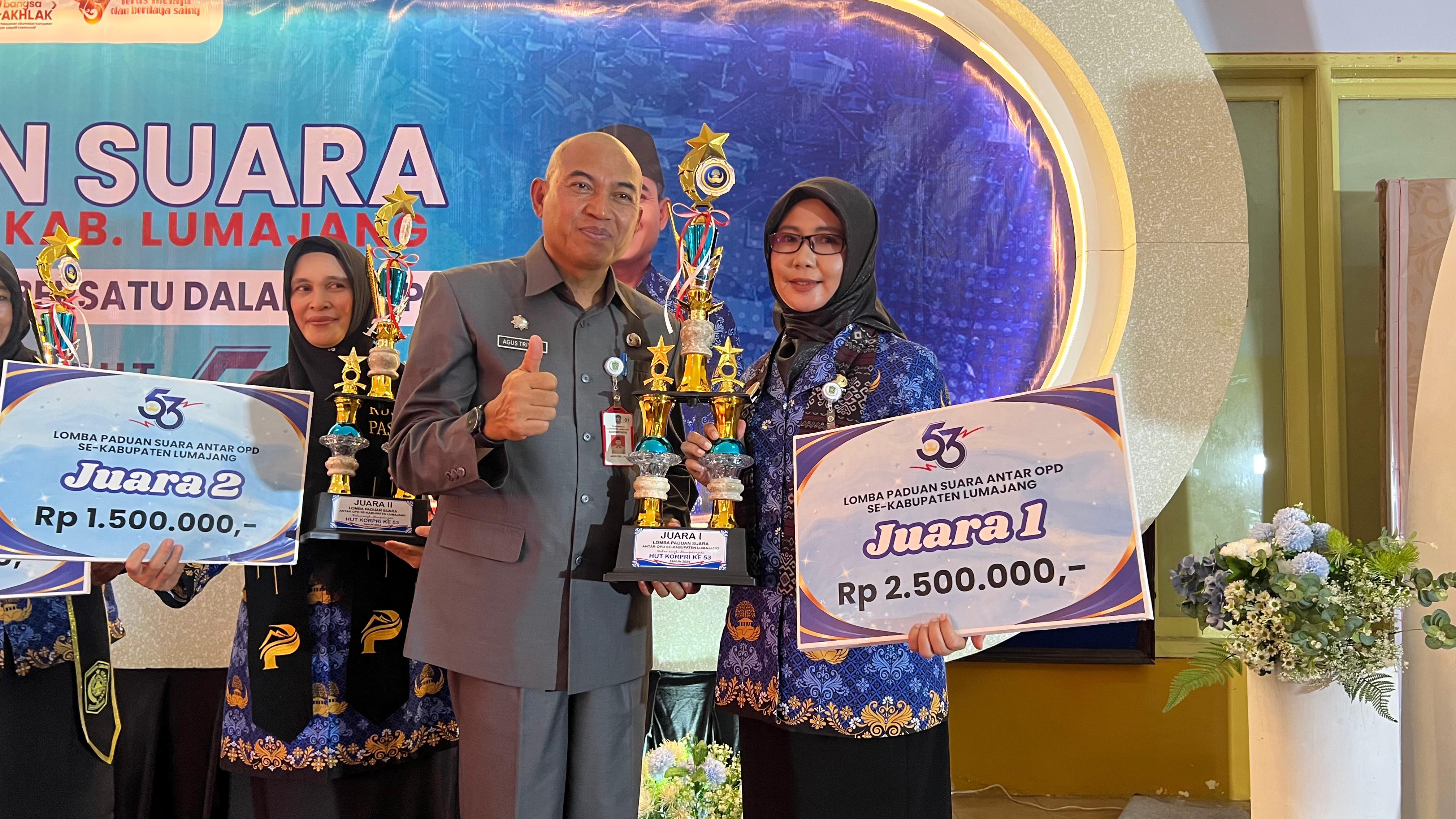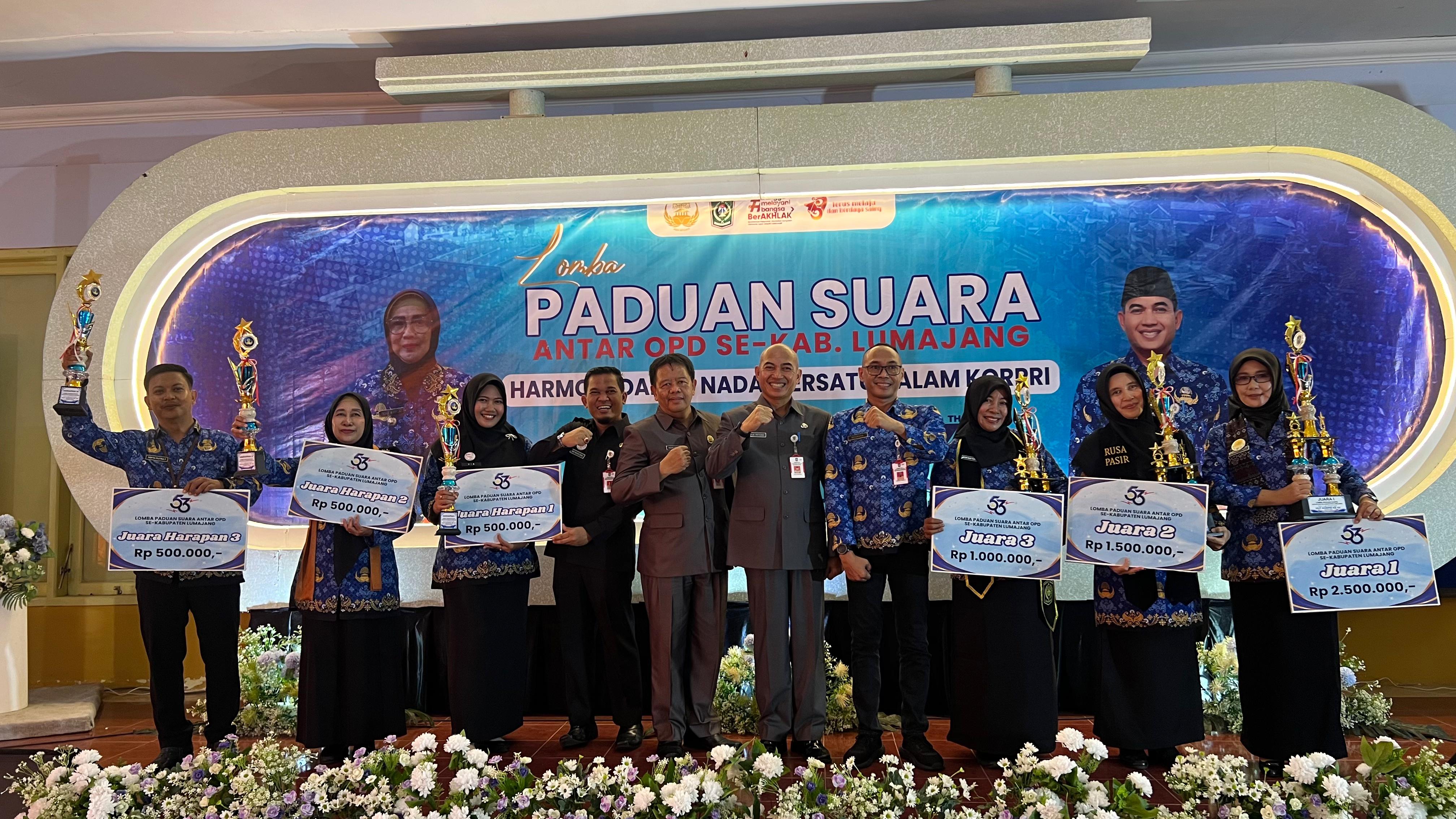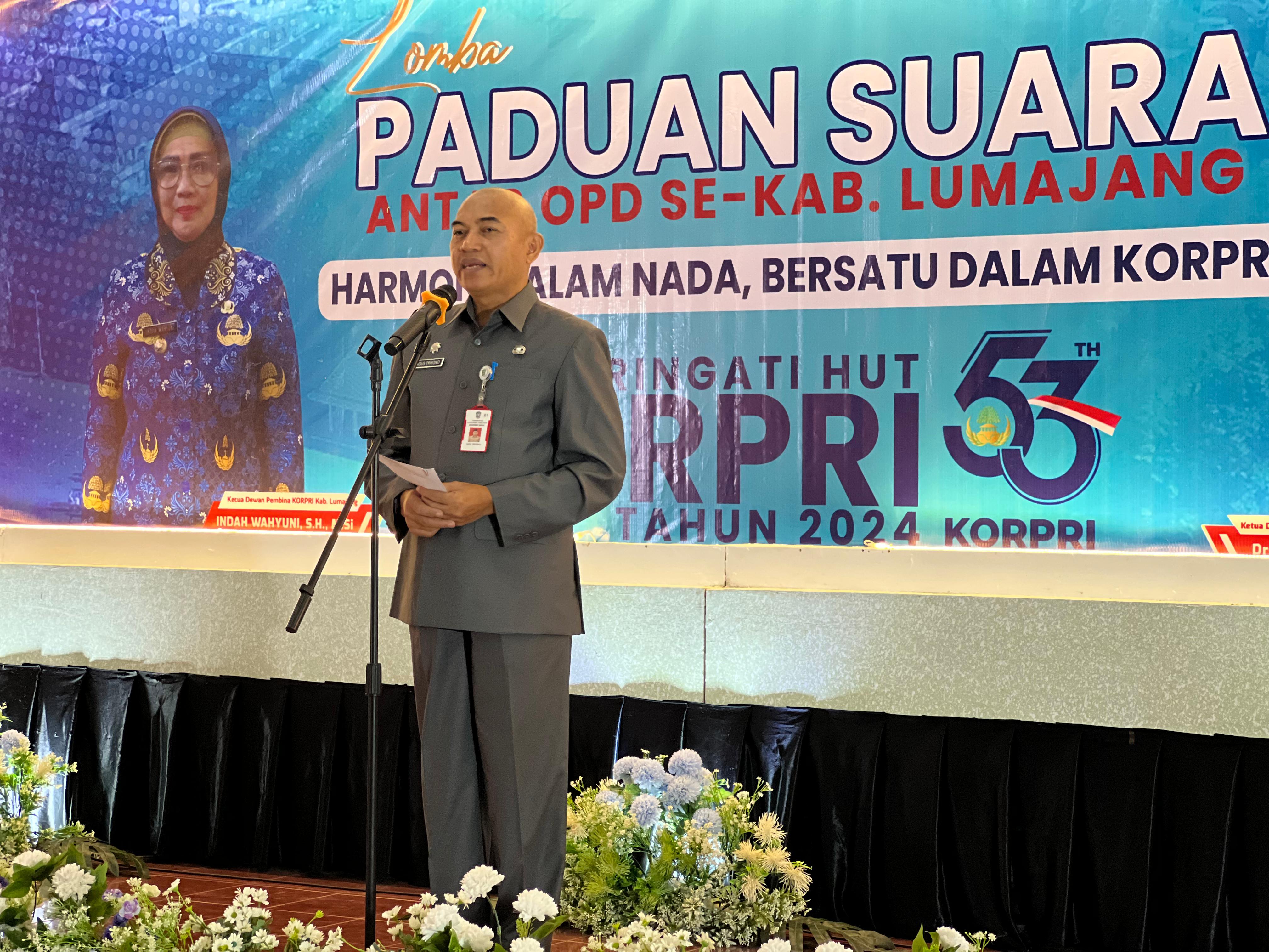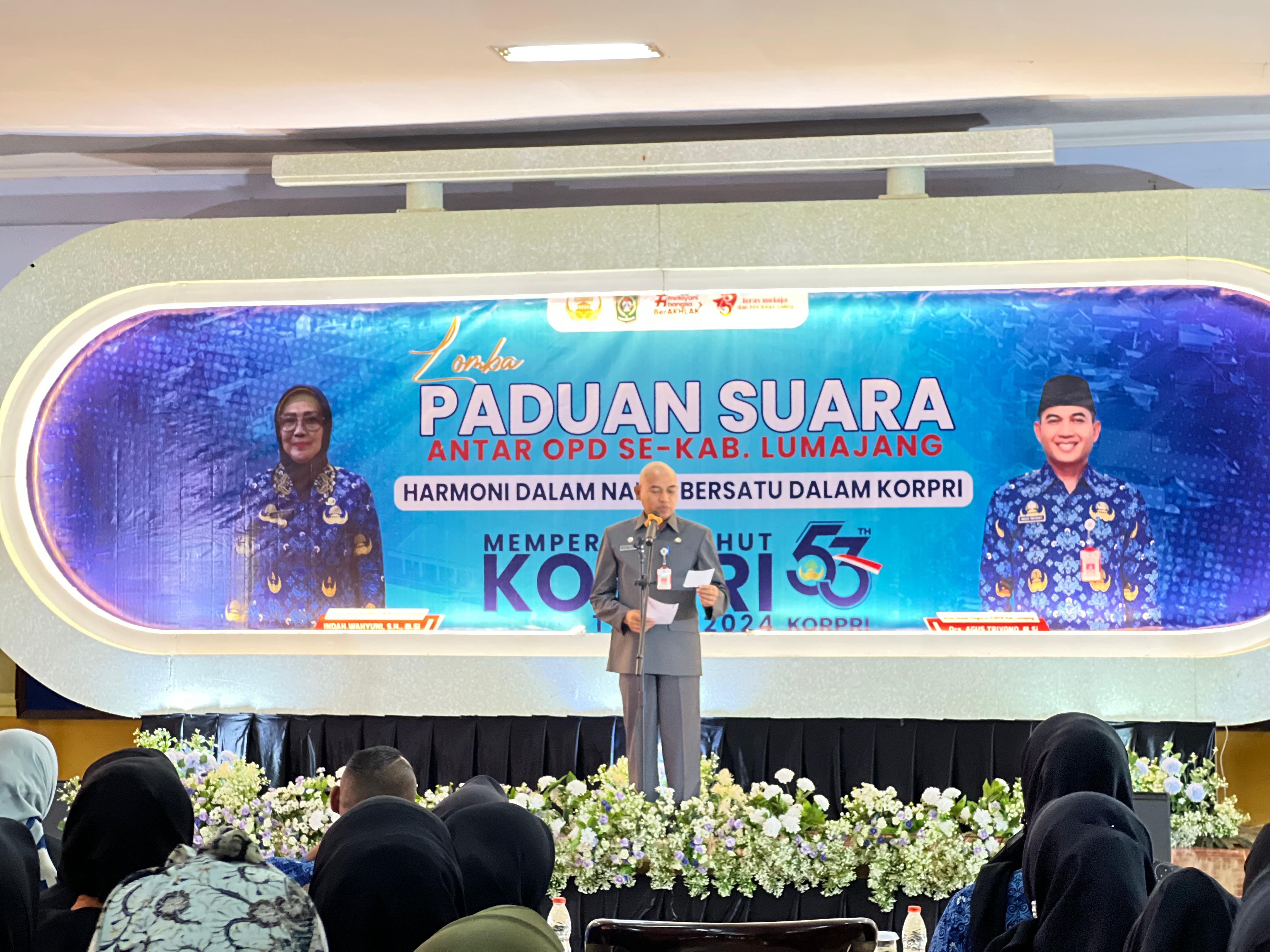 Dalam rangka memeriahkan Hari Ulang Tahun (HUT) ke-53 Korps Pegawai Republik Indonesia (KORPRI), Pengurus KORPRI Kabupaten Lumajang menggelar Lomba Paduan Suara antar Organisasi Perangkat Daerah (OPD), di Aula Dinas Pendidikan dan Kebudayaan (Dindikbud) Kabupaten Lumajang, Selasa (3/12/2024)