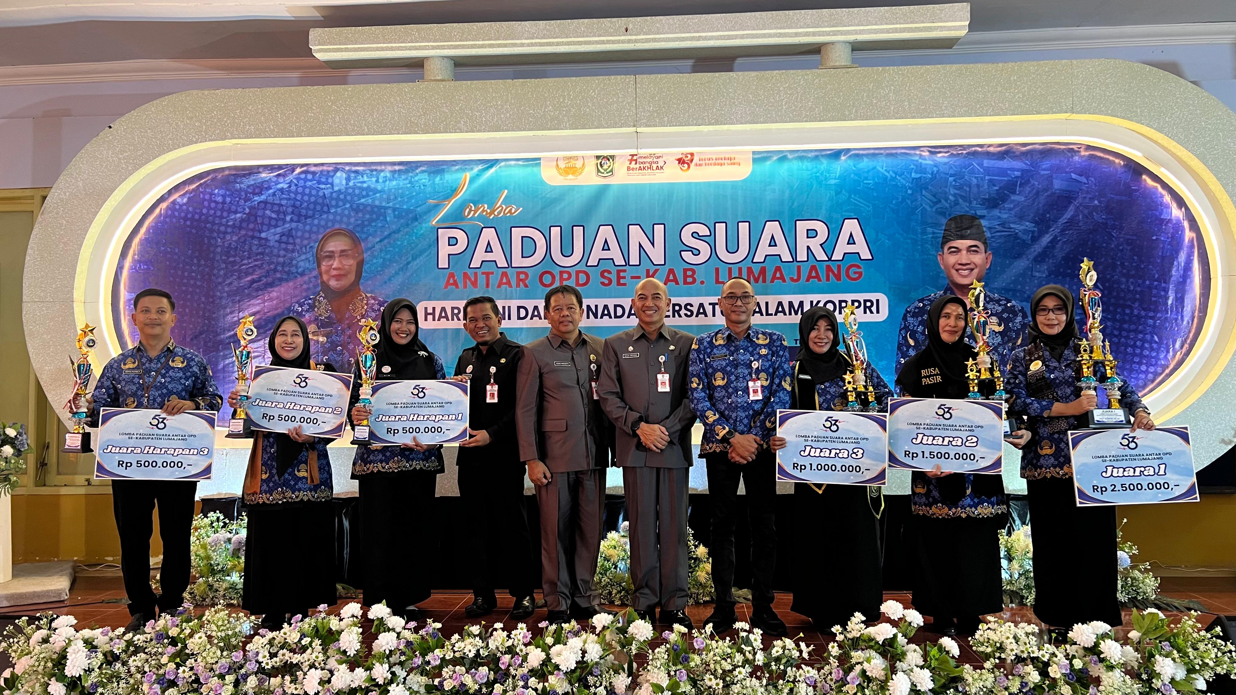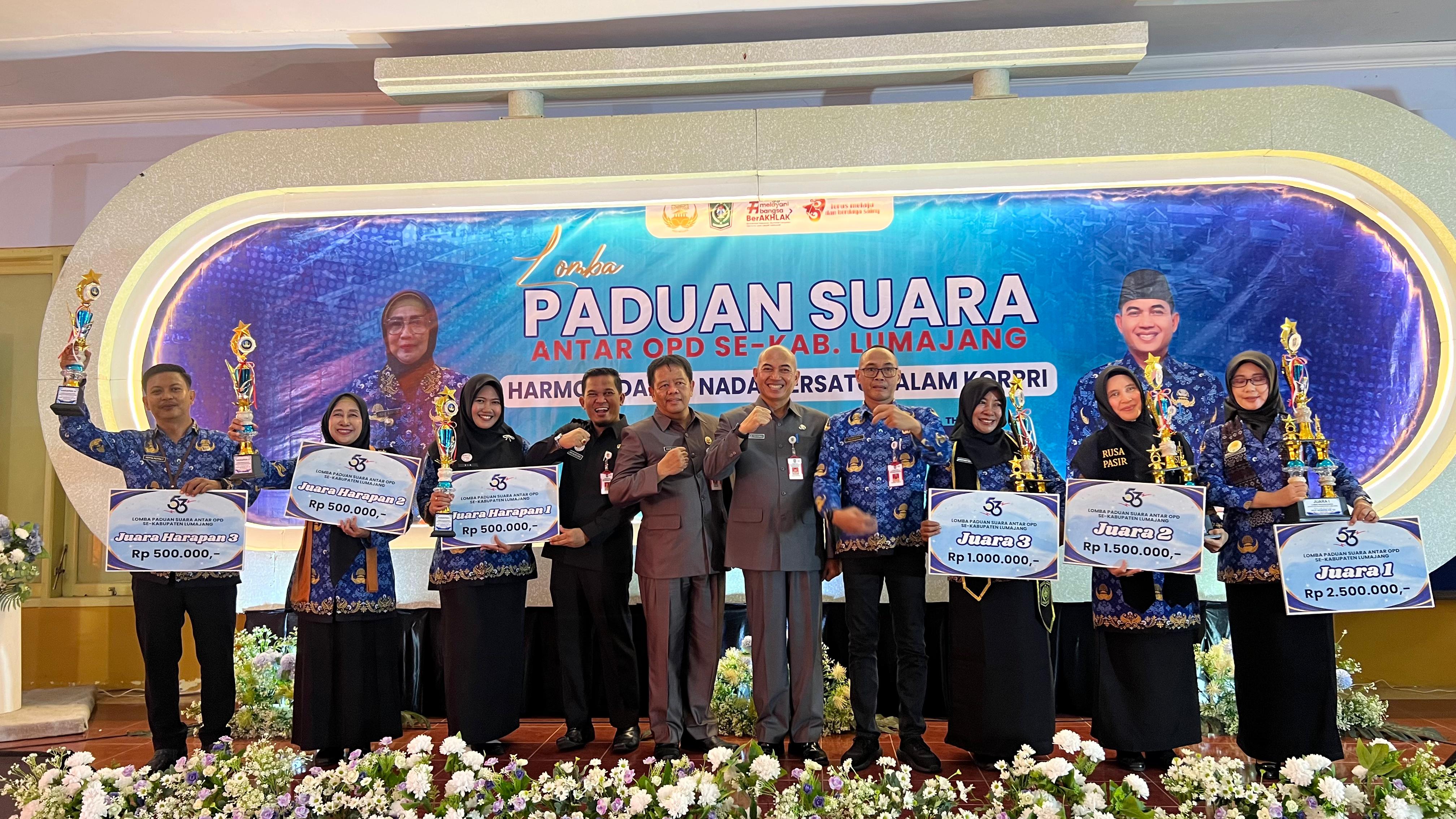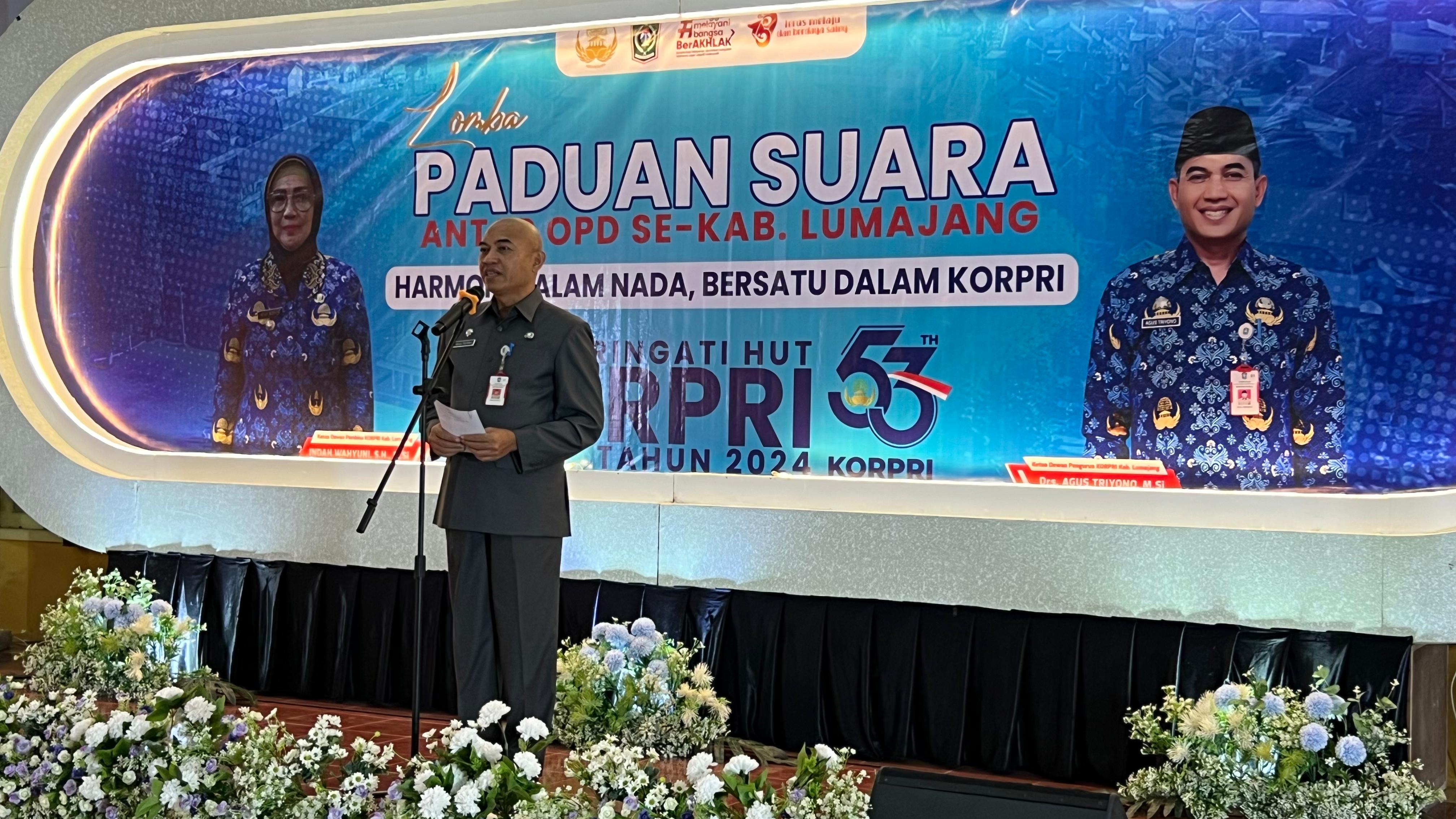 Dalam rangka memeriahkan Hari Ulang Tahun (HUT) ke-53 Korps Pegawai Republik Indonesia (KORPRI), Pengurus KORPRI Kabupaten Lumajang menggelar Lomba Paduan Suara antar Organisasi Perangkat Daerah (OPD), di Aula Dinas Pendidikan dan Kebudayaan (Dindikbud) Kabupaten Lumajang, Selasa (3/12/2024)