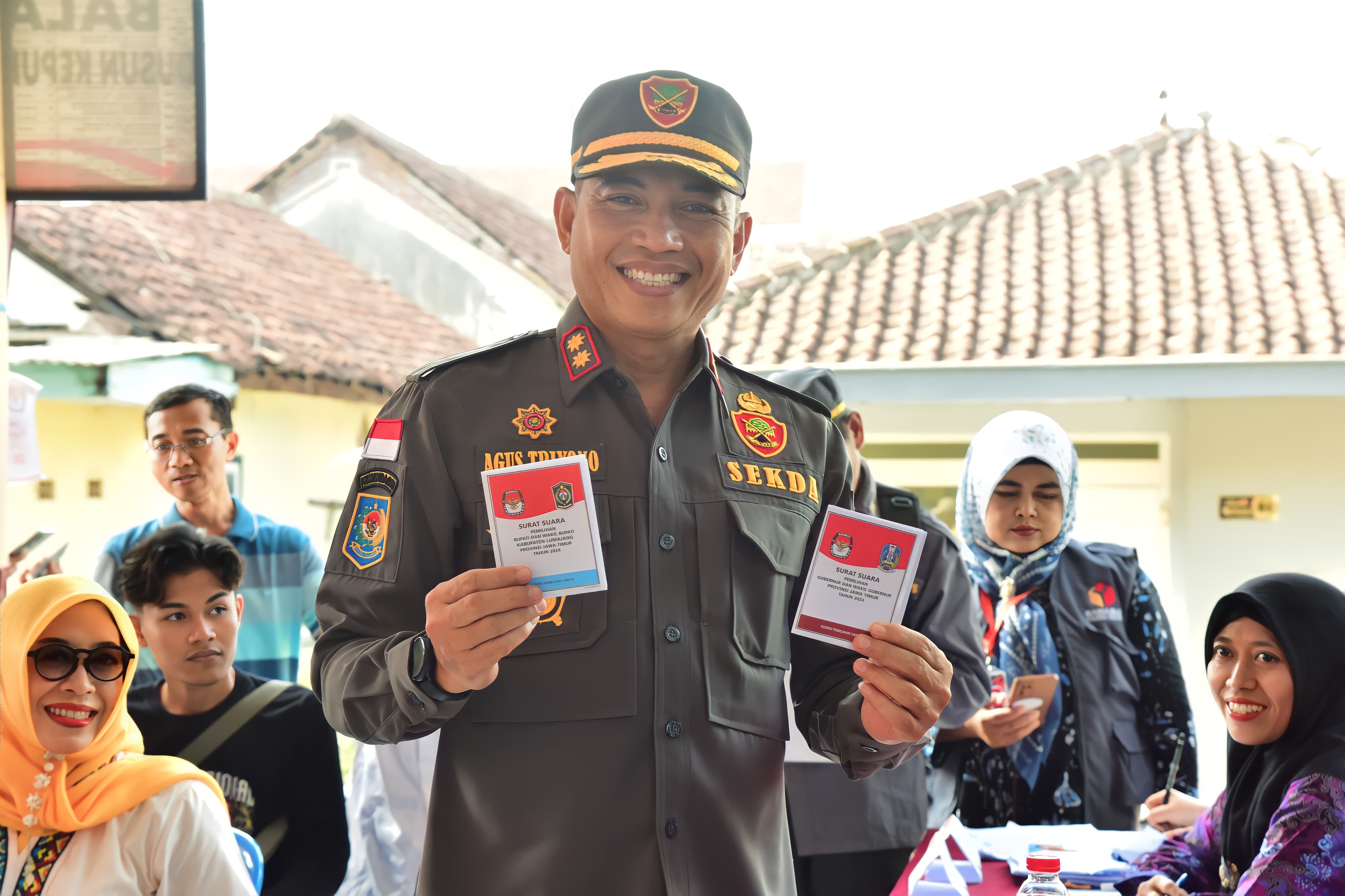 Lumajang, InfoPublik – Sekretaris Daerah (Sekda) Kabupaten Lumajang, Agus Triyono menggunakan hak pilihnya dalam Pemilihan Kepala Daerah (Pilkada) Serentak 2024. Bertempat di Tempat Pemungutan Suara (TPS) 02 Desa Kutorenon Kecamatan Sukodono, Rabu (27/11/2024), Agus Triyono hadir bersama keluarga untuk menyalurkan suaranya sebagai bagian dari tanggung jawabnya dalam proses demokrasi.