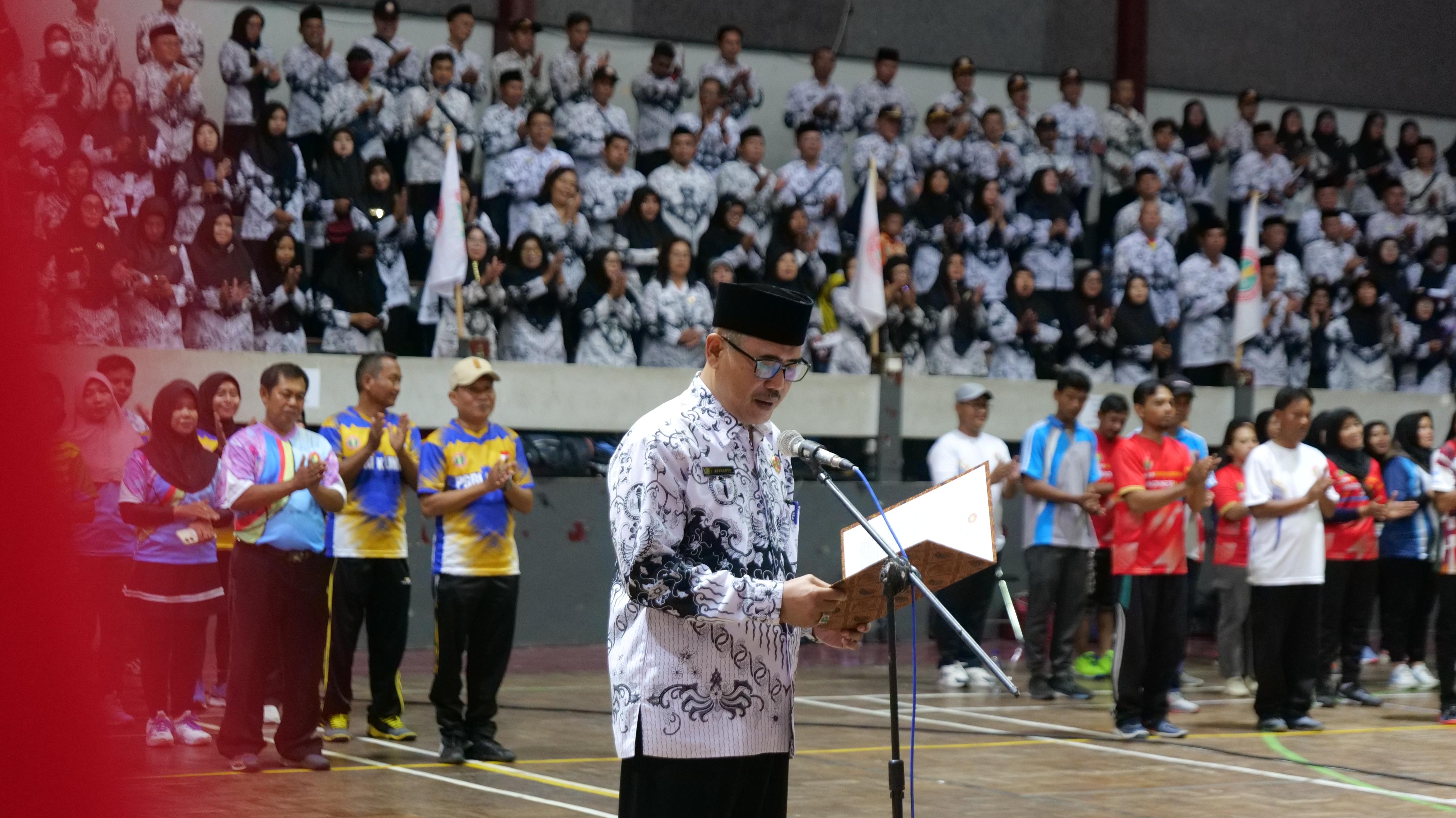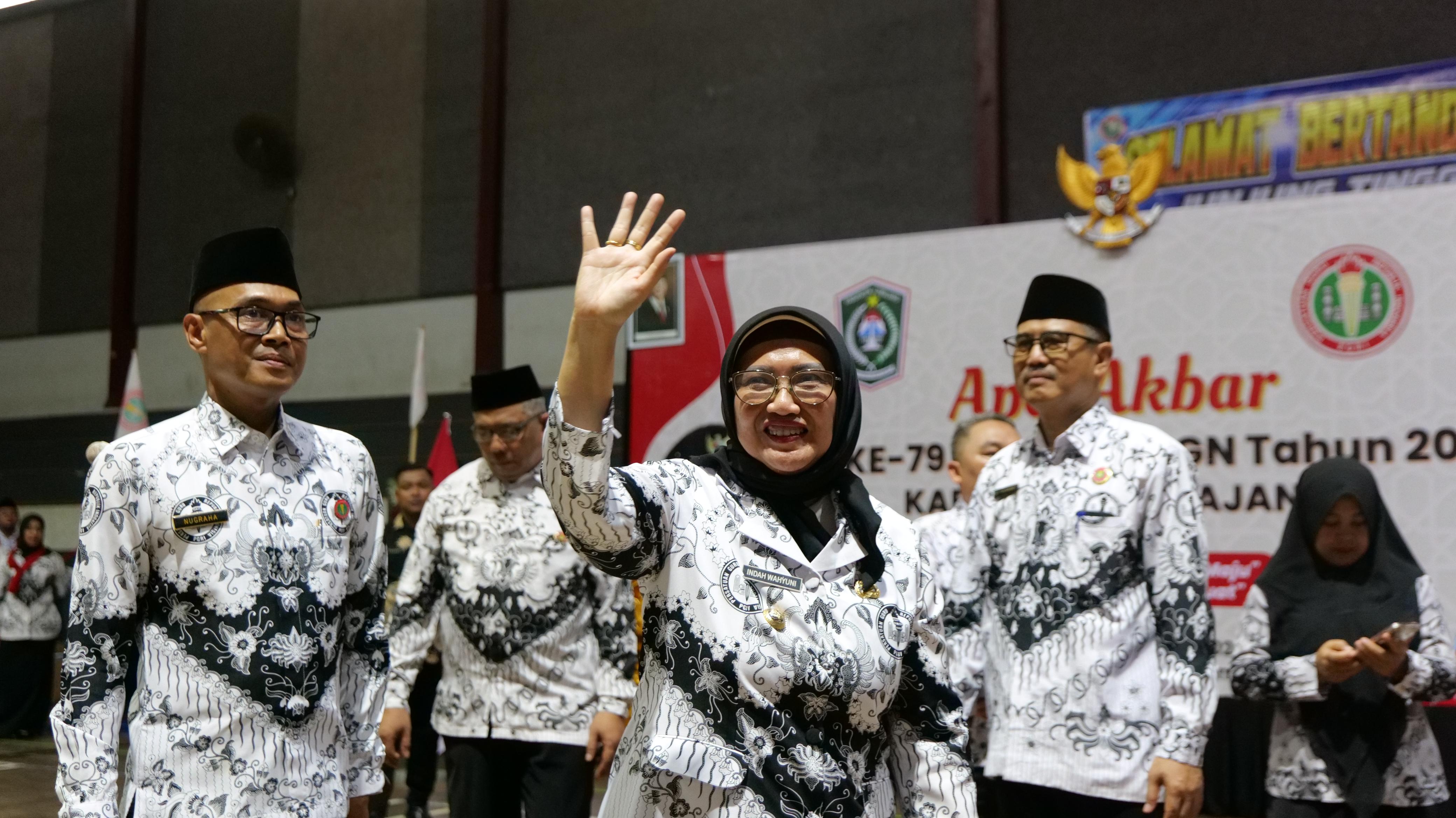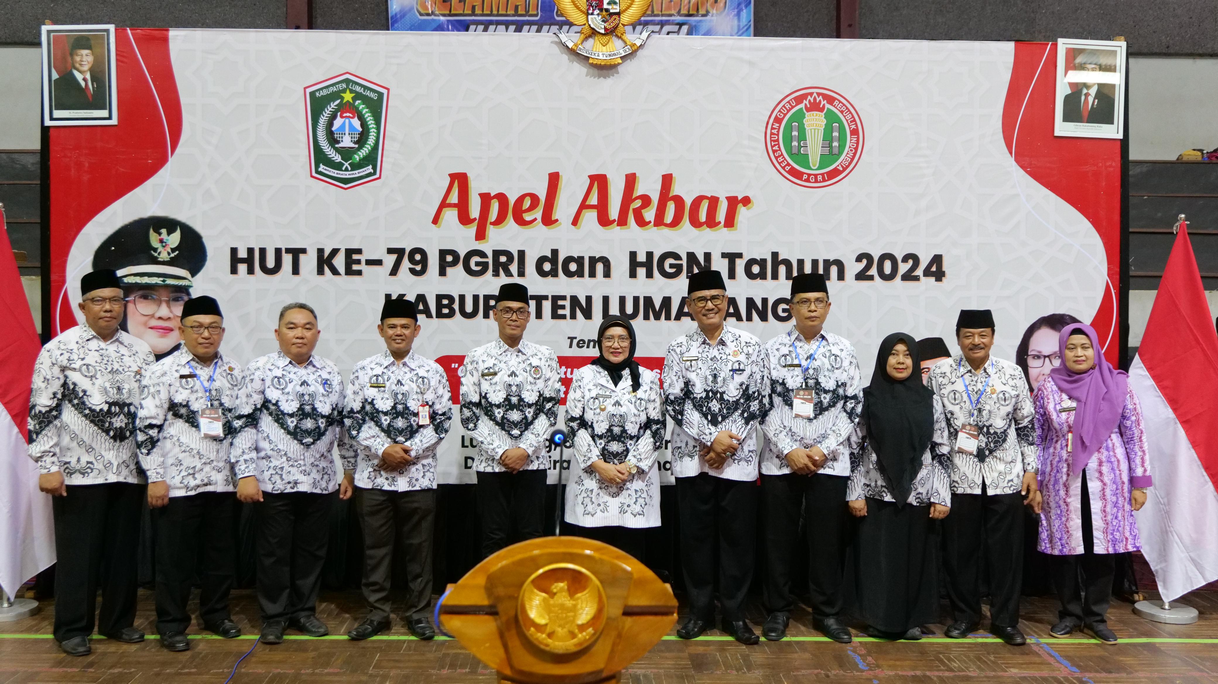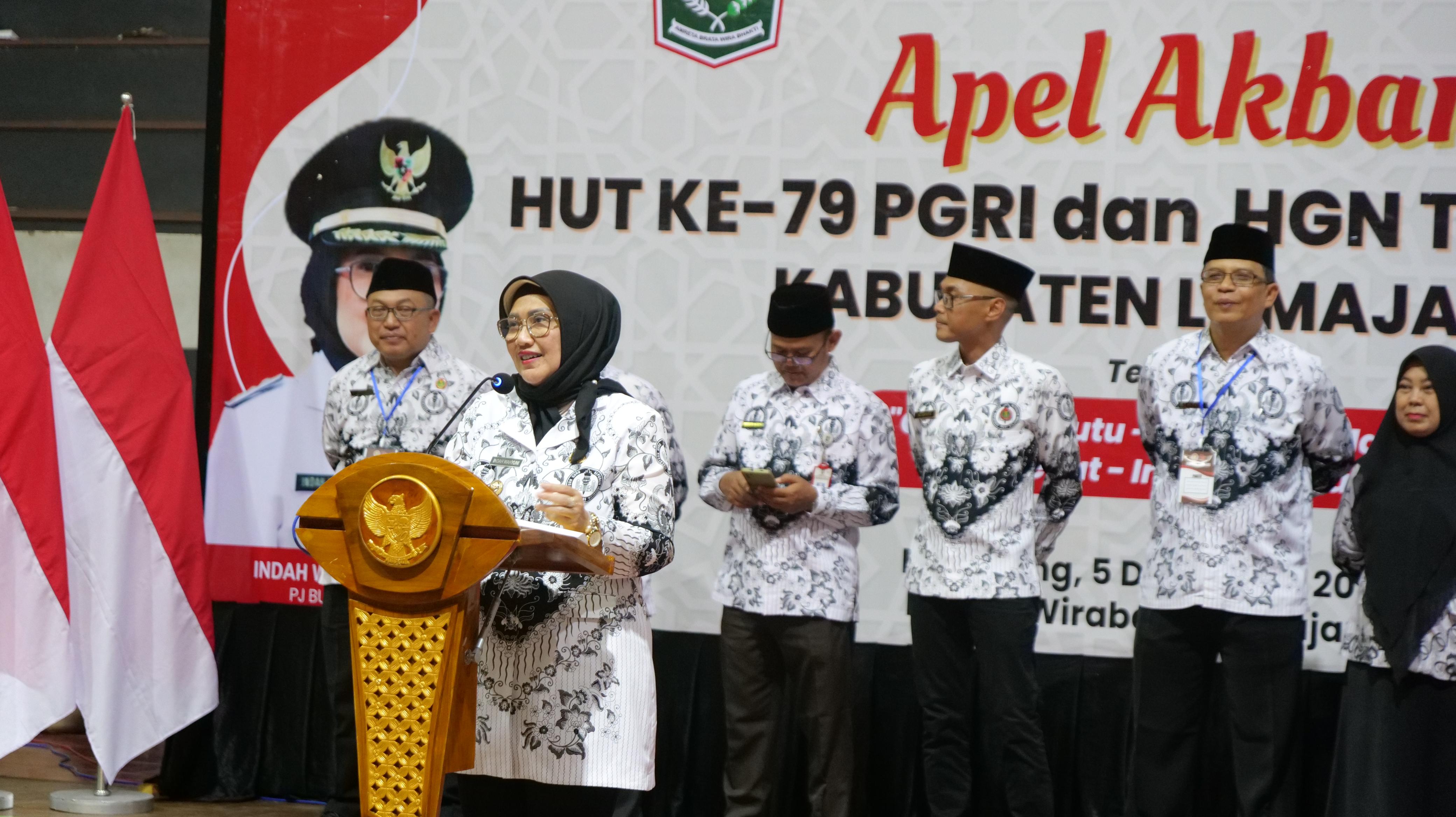 Penjabat (Pj) Bupati Lumajang Indah Wahyuni (Bunda Yuyun), membuka secara resmi apel peringatan Hari Guru Nasional (HGN) 2024 sekaligus Hari Ulang Tahun ke-79 Persatuan Guru Republik Indonesia (PGRI) yang berlangsung GOR Wira Bhakti Lumajang, Kamis (5/12/2024).
