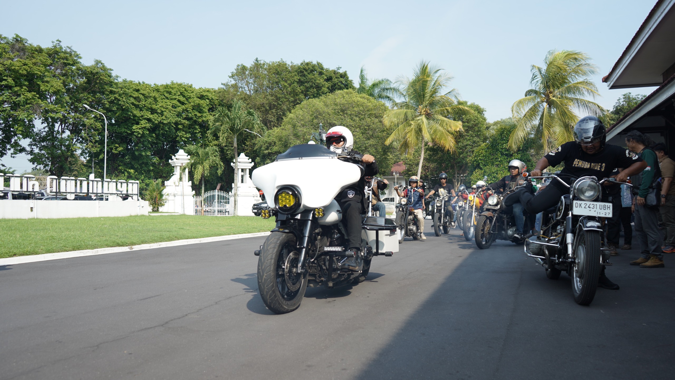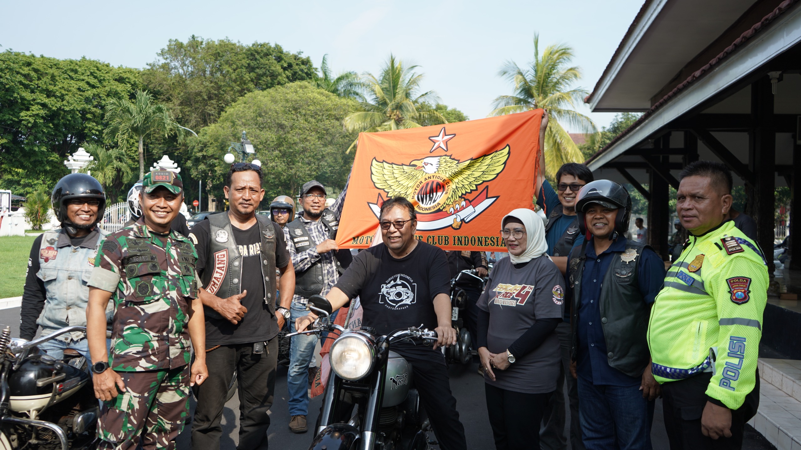 Pj. Bupati Lumajang, Indah Wahyuni melepas kirab Motor Antique Club Indonesia (MACI) di Halaman Pendopo Arya Wiraraja Kabupaten Lumajang, Jum'at (13/12/2024).