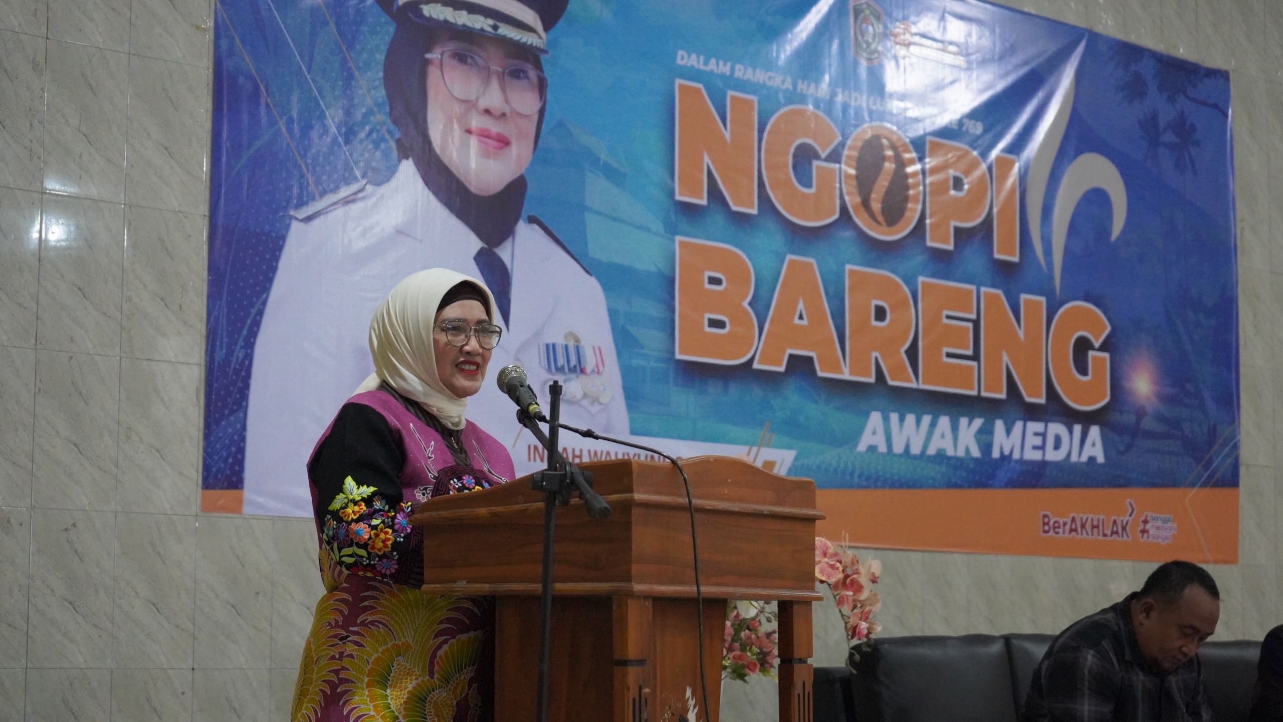 Pj. Bupati Lumajang, Indah Wahyuni 'Ngopi Bareng' dengan sejumlah awak media di RM. Istana Kuliner Lumajang, Jum'at (13/12/2024).