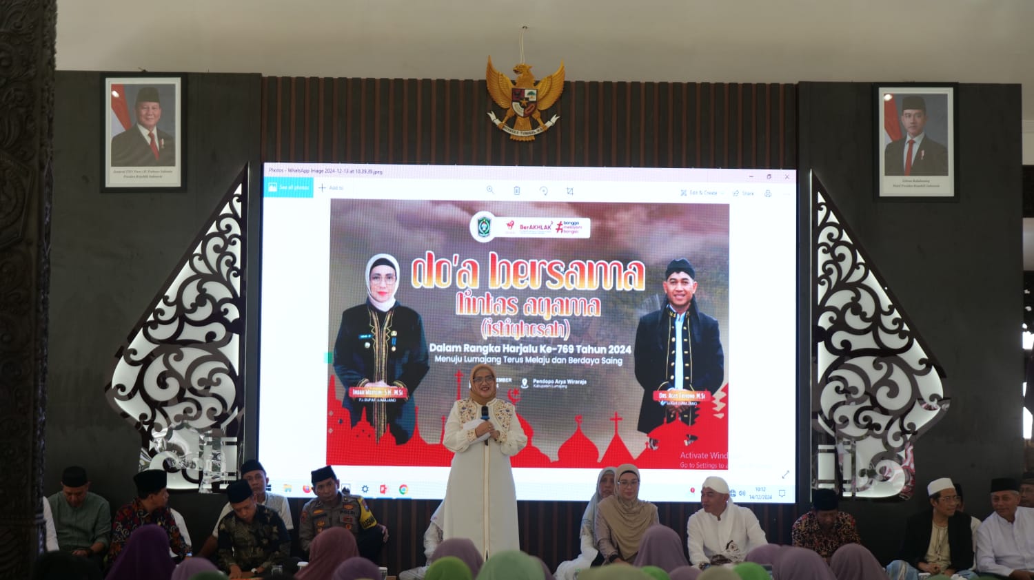 Dalam rangka memperingati Hari Jadi Kabupaten Lumajang ke - 769 Tahun 2024, Pemerintah Kabupaten (Pemkab) Lumajang menggelar Do'a Bersama Lintas Agama di Pendopo Arya Wiraraja Kabupaten Lumajang, Sabtu (14/12/2024).