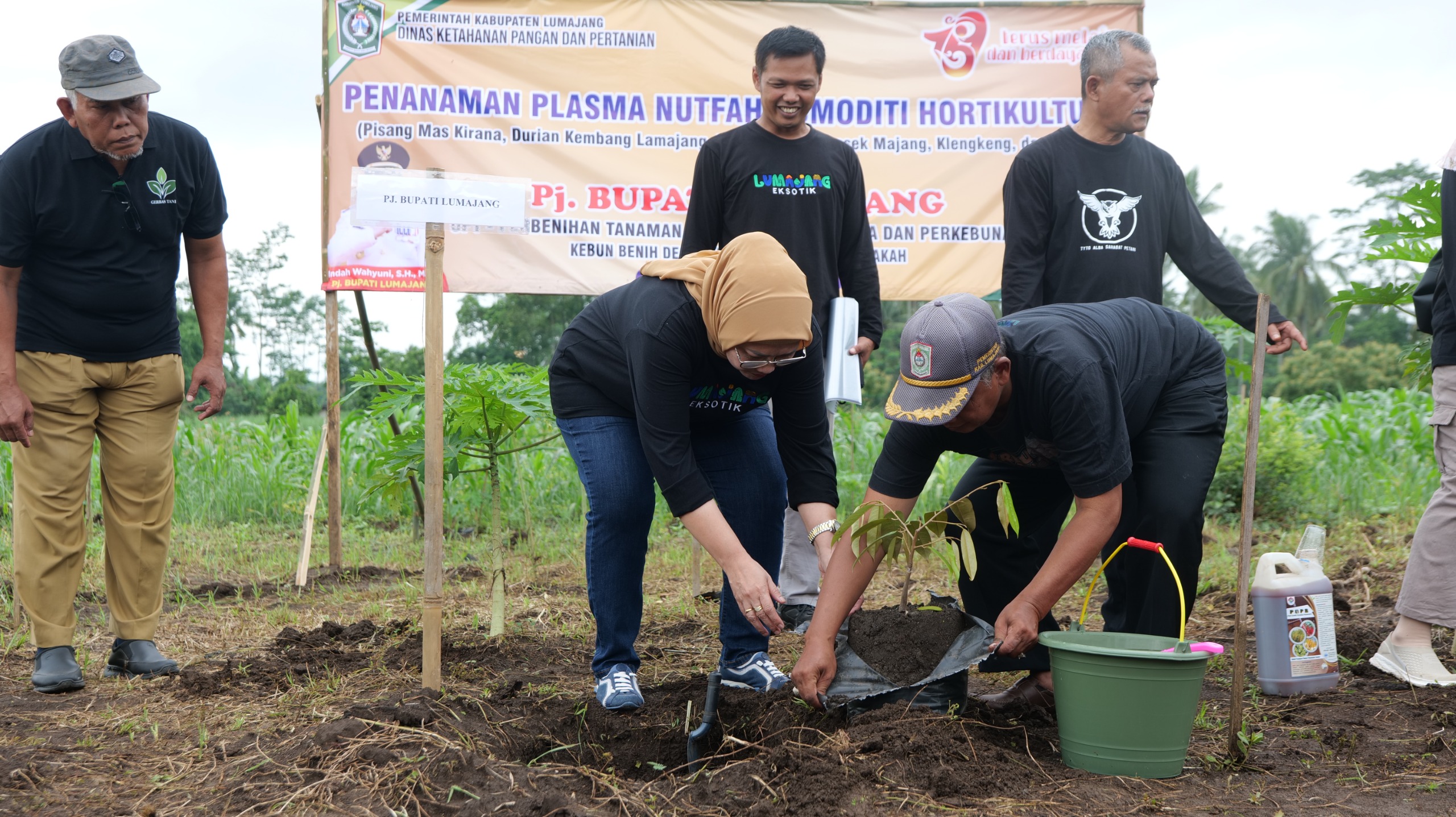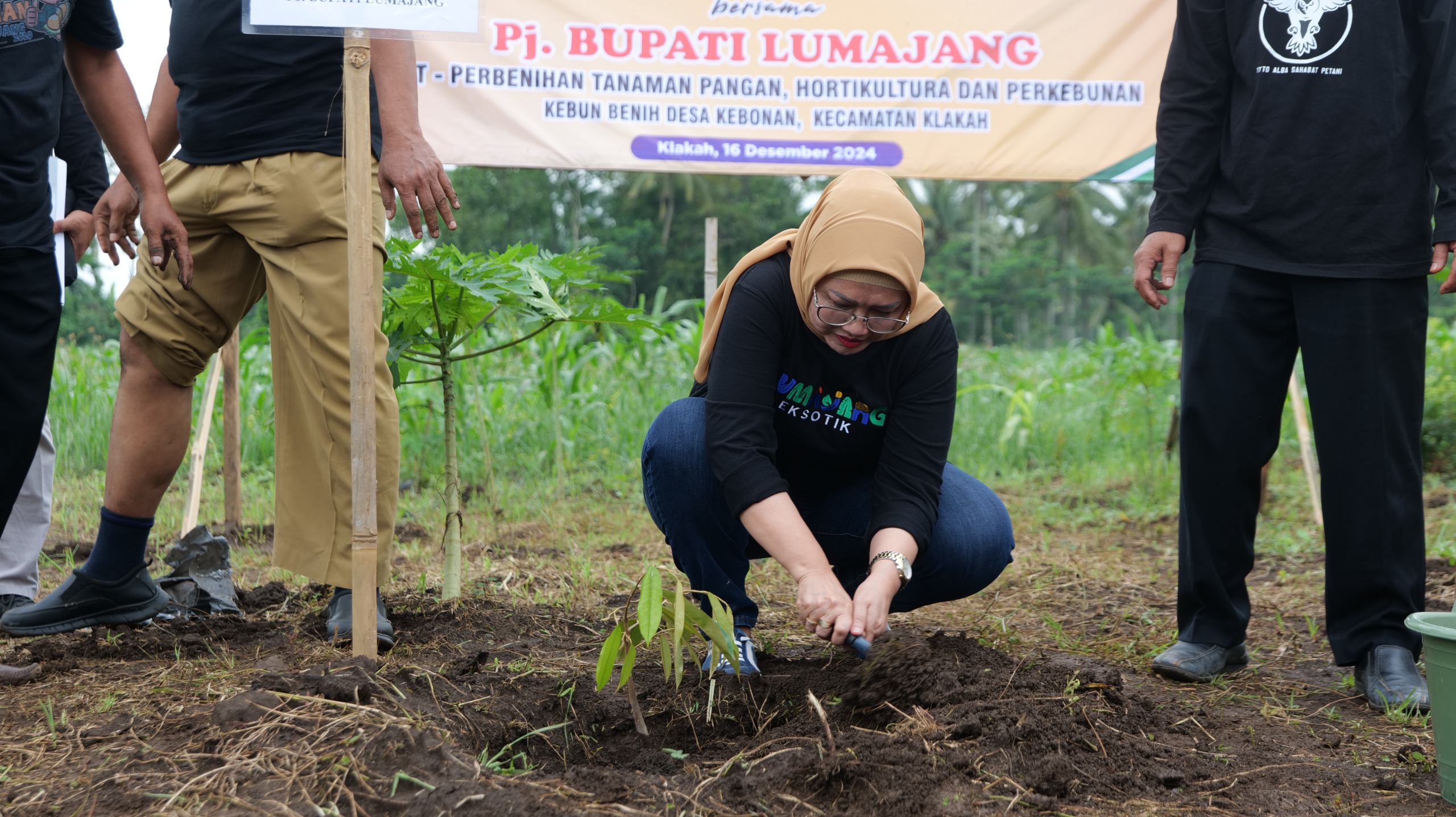Sebagai upaya pelestarian plasma nutfah komoditi unggulan lokal Lumajang, Pj. Bupati Lumajang, Indah Wahyuni bersama Dinas Ketahanan Pangan dan Pertanian (DKPP) Lumajang melakukan Penanaman Plasma Nutfah Komoditi Hortikultura di Balai Penyuluhan Pertanian (BPP) Klakah, Senin (16/12/2024).