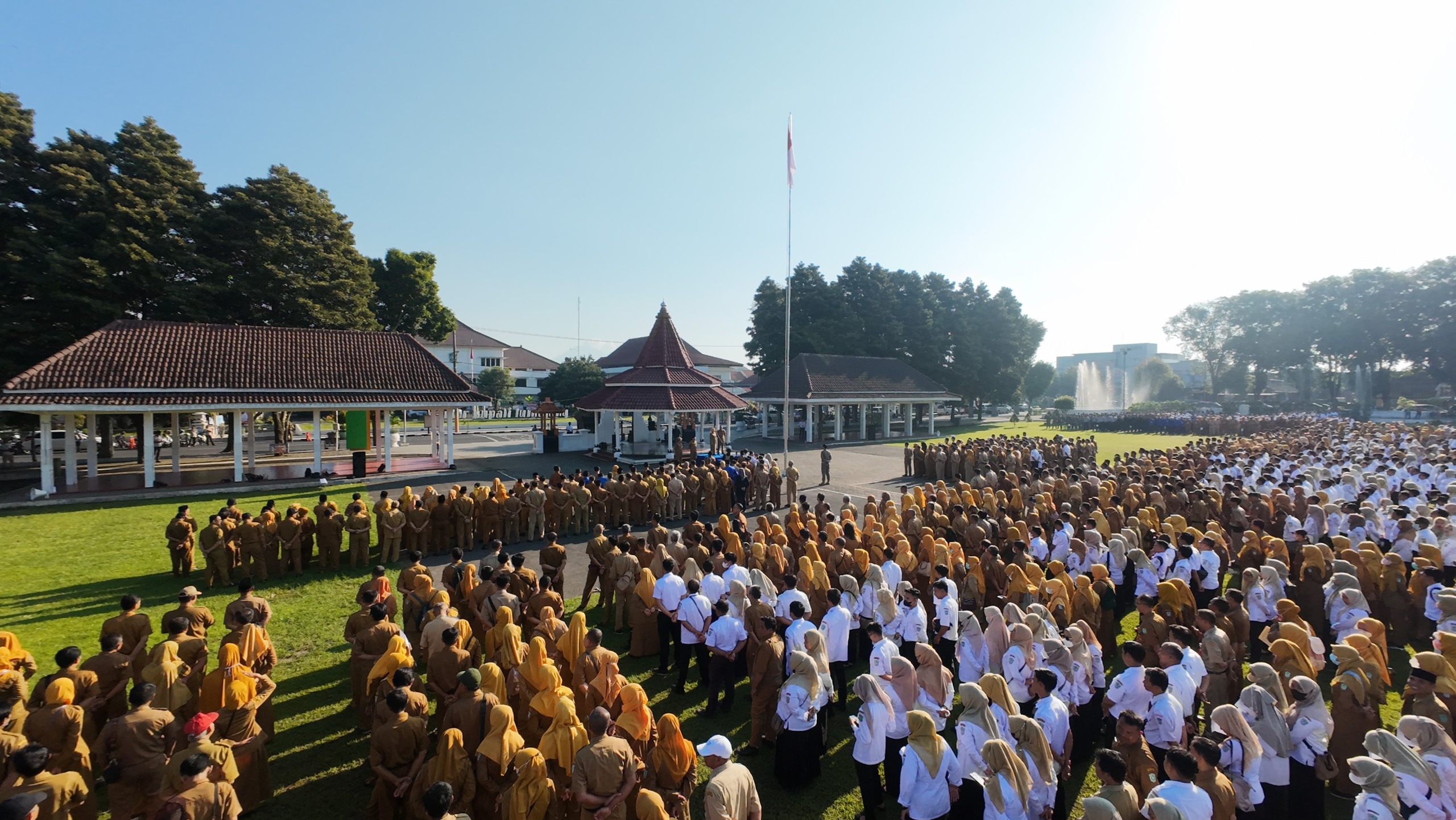 Apel yang dilaksanakan di Alun-Alun Kabupaten Lumajang berlangsung khidmat. Pasalnya, apel gabungan itu merupakan kali pertama bagi Indah Amperawati dan Wakil Bupati, Yudha Adji Kusuma (Mas Yudha) untuk bersilaturahmi dan bertatap muka secara langsung dengan para ASN yang ada di Kabupaten Lumajang.